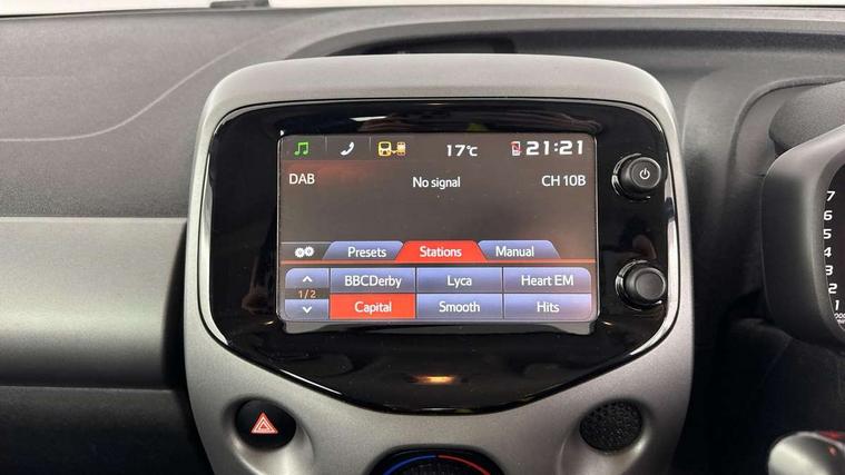 7" touch screen, Bluetooth system, Digital clock, Electric power steering, Fuel indicator with low level warning, Lights on warning, Rear view camera, Speed limiter, Tachometer, Vehicle Stability Control (VSC), Auxiliary input socket, DAB Digital radio, iPod connection, MP3 connection, Multimedia System, Stereo radio, USB connection, 2 speed wipers/variable intermittent/mist function, Body colour bumpers, Body colour door handles, Body colour door mirrors, Carbon rear diffuser, Electric adjustable door mirrors, Electric front windows, Green tinted glass, Headlamp levelling, Heated door mirrors, Heated rear windscreen, LED daytime running lights, LED rear lights, Projector headlamps, Rear spoiler, Rear window demister, Rear wiper, Roof mounted aerial, 12V Accessory socket, 3 spoke leather steering wheel, 50/50 split folding rear seat, Air conditioning, Air recirculation system, Centre console storage, Chrome insert to gearknob, Chrome interior door handles, Cloth upholstery, Driver and passenger sunvisors, Driver's seat height adjuster, Driver/passenger seat recline/slide adjust, Driver/passenger vanity mirrors with covers, Front and rear door pockets, Front cupholder, Front map reading lights, Glovebox, Graphite cloth upholstery, Height adjustable front head restraints, Isofix system on outer rear seats, Leather gear knob, Pollen filter, Rear cupholders, Rear headrests, Steering wheel mounted radio/phone controls, Stepless tilt adjustable steering column, Storage bins on all doors, Storage pockets in centre console, Tonneau cover, ABS, Driver and passenger airbags, Emergency brake assist, ESP, Fasten seatbelt reminder, Front side airbags, Height adjustable front seatbelts with pre-tensioners and load limiters, Hill start assist, Passenger airbag deactivate switch, Rear child proof door locks, Side curtain airbags, Tyre pressure warning, Engine immobiliser, Lockable fuel cap, Remote central locking, Tyre repair kit,