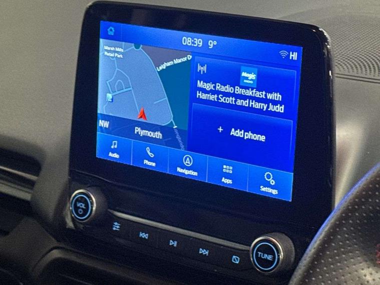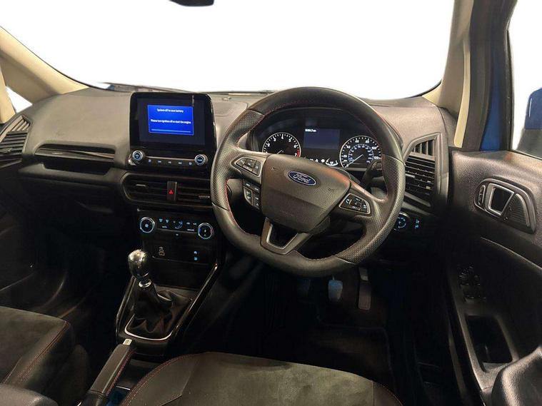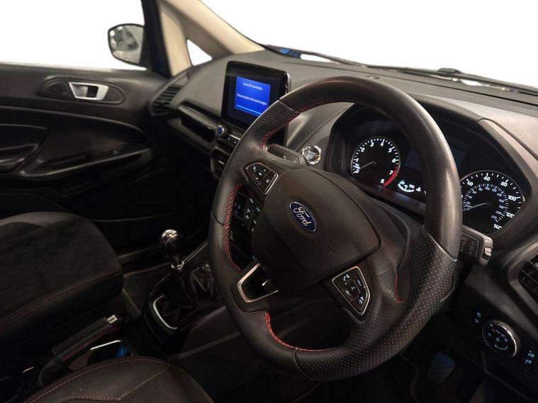 Cruise control, e-Call (emergency call), Easy fuel capless refuelling system, Ford SYNC 3 nav system with DAB radio, 8" screen, emergency assistance, Apple car play/Android auto, 2x USB, 6 speakers, Ford pass connect, Intelligent speed limiter, PAS, Rear parking sensors, Rear view camera, Traffic sign recognition, Trip computer, Sports suspension, Steering wheel mounted audio controls, Auto dimming rear view mirror, Automatic front wipers, Automatic headlights, Black roof rails, Body colour door handles, Body coloured bumpers, Chrome lower window surround, Electrically adjustable and heated door mirrors, Front fog lights, Front grille bars and surround in black, Headlight levelling control, Large rear roof spoiler, LED day running lights, LED third brake light, Power front and rear windows, Puddle lights, Quick-clear heated windscreen, Rear side wing doors, Rear wiper, ST Line body styling kit - Black headlamp bezel, front and rear sport bumpers, body colour lower door claddings, 12V socket in front and rear, 3 seat bench in 2nd row, 60/40 split rear seats, Ambient lighting, Centre console with sliding front armrest, Cooled glovebox, Courtesy lights with map reading light, Driver seat height/lumbar adjust, Driver's side glovebox, Driver/passenger sunvisors and lidded vanity mirrors, EATC - Electronic Auto Temperature control, Folding grab handles, Front head restraints, Front seat back map pockets, Illuminated glovebox, Illuminated luggage compartment, Isofix system on outer rear seats, Luggage compartment carpet, Neosuede/Partial sensico leather upholstery, Overhead console with sunglasses holder, Rake adjustable rear seats, Reach + rake adjustable steering column, Rear headrests, Sensico trimmed steering wheel, handbrake and gearshift gaiter with red stitching, Single front passenger seat, ST-Line Front floor mats with red stitching, Stainless steel sports pedals, Storage drawers under front seats, Tie down hooks, Variable boot floor, 3x3 point rear seatbelts, ABS, Autonomous emergency braking, Child locks on rear doors, Curtain airbags, Driver airbag, Drivers knee airbag, Electronic Stability Programme with hill launch assist, Front passenger airbag deactivation, Front side airbags, Passenger airbag, Pre collision assist system with AEB, Seatbelt reminder for driver and front passenger, Traction control, Tyre pressure monitoring system, Immobiliser, MyKey system, Remote central locking, Thatcham 1 volume sensing alarm, Low rolling resistance tyres, Tyre inflation kit,