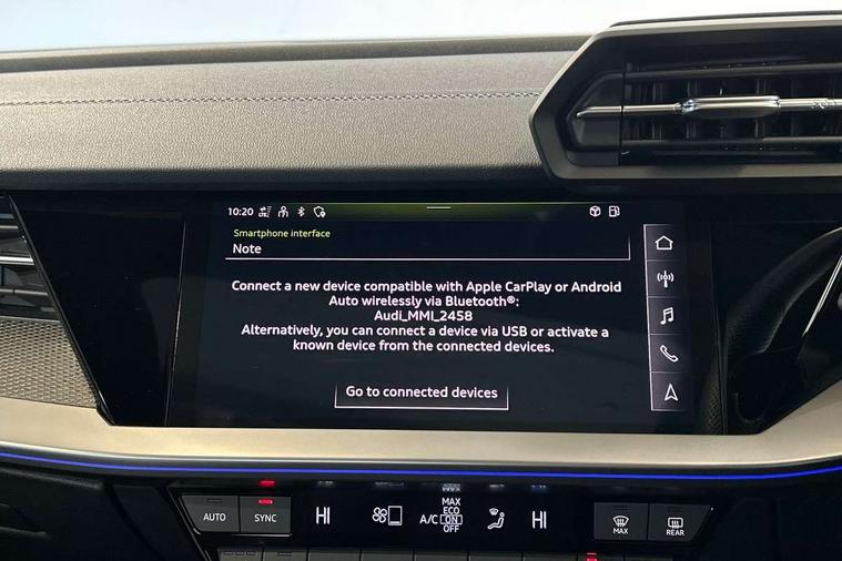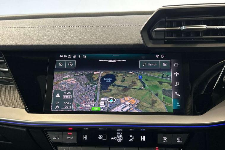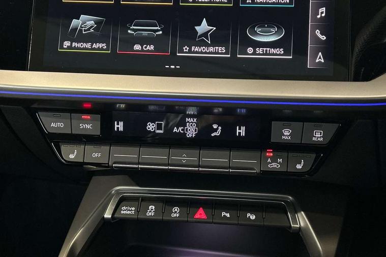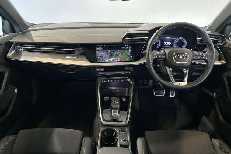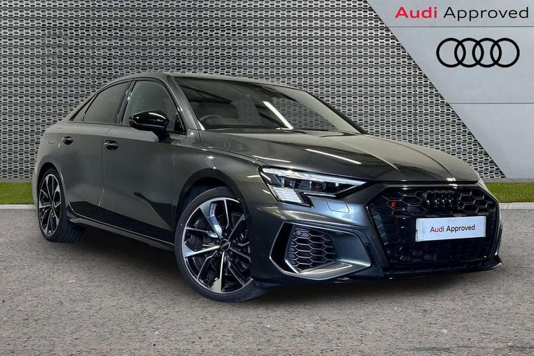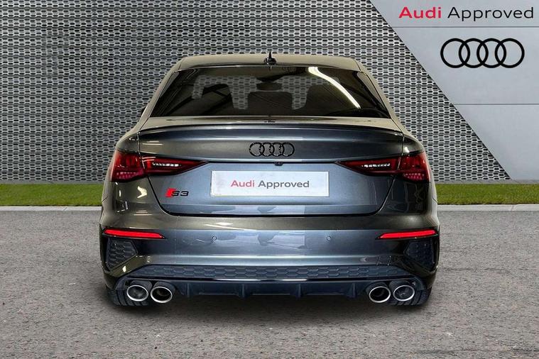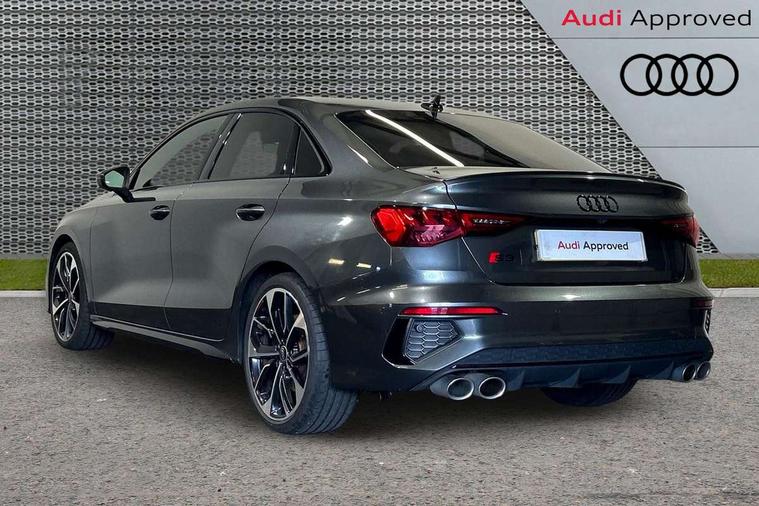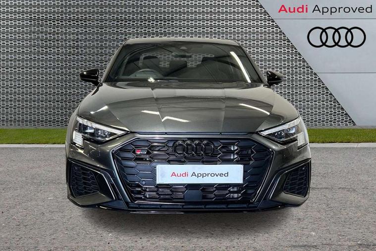 Audi connect emergency call and service, Audi drive select (Auto, Comfort, Dynamic, Efficiency and Individual), Audi smartphone interface, Audi virtual cockpit plus - 12.3" dynamic digital instrument cluster, Automatic start/stop system with recuperation, Bluetooth interface, Collision avoidance assistant, Head up Display, Lane change assistant with exit warning system and rear cross traffic alert, Lane departure warning system, MMI Navigation Plus with high resolution 10.1" colour touch screen display, Power operated tailgate - Luggage compartment lid opens electrically, Progressive steering, Service indicator, Voice control system with natural language interaction, Quattro permanent all wheel drive, S suspension with damper control, 2x USB Type C ports (for charging and data transfer), CD player, DAB Digital radio, 3rd brake light, Acoustic glass windscreen, Audi Beam uses LEDs to project Vorsprung onto the ground as you exit your S3, Auto dimming frameless rear view mirror, Carbon door mirror housings, Dual branch oval twin tailpipes in chrome plated finish, Electrically adj heated/folding + automatically dimming exterior mirrors with memory + automatic kerb side function for passenger side exterior mirror, Front electric windows, Headlight washers, Heat insulating glass windscreen, Illuminated door sills with aluminium inserts at the front with S logo, Integrated LED indicators in door mirrors, LED daytime running lights, Light and rain sensors, Model and engine designation badges at rear, Privacy glass - dark tinted rear window, rear door and side windows, Rear boot, Rear electric windows, Rear side wing doors, 12V socket and storage compartment in front centre console, 3 seat bench in 2nd row, 3 spoke leather multifunction steering wheel with gear shift paddles, 4 way electrically adjustable lumbar support for driver and front passenger, 60/40 split folding rear seat bench, Black cloth headlining, Dual zone electronic climate control, Fine Nappa leather upholstery with front sports seats S embossed logo, Front and rear centre armrest in leather, Front and rear headrests, Front/rear floor mats, Height and reach adjustable steering wheel, Interior lighting - glove compartment light and right hand side, Luggage compartment floor covering, Single front passenger seat, Stainless steel pedals and front footrest in black, Aluminium interior elements pack - A3, Black styling pack - A3 Saloon Vorsprung, Body styling design pack - S3, Driver assistance pack - A3/S3 S Tronic, Extended ambient lighting pack - A3/S3 Saloon, Storage pack - A3/S3 Saloon, Technology pack pro with 360 camera - A3 Saloon/Voursprung, 3x3 point rear seat belts, Driver and front passenger airbag with passenger airbag deactivation, Electronic Stabilisation Control (ESC) including ABS, ASR and EDL, First aid kit with warning triangle and 2 safety vests, Front side airbags with head airbags and interaction airbag, Pre-sense front with pedestrian and cyclist detection, Seatbelt monitoring, Tyre pressure loss indicator, Anti theft alarm, Anti-theft wheel bolts, Electronically operated child locks, Immobiliser, Remote control central locking, Aluminium air vent surrounds, Carbon inlays, accent surfaces in the dashboard and centre console in platinum grey silk effect paint finish,