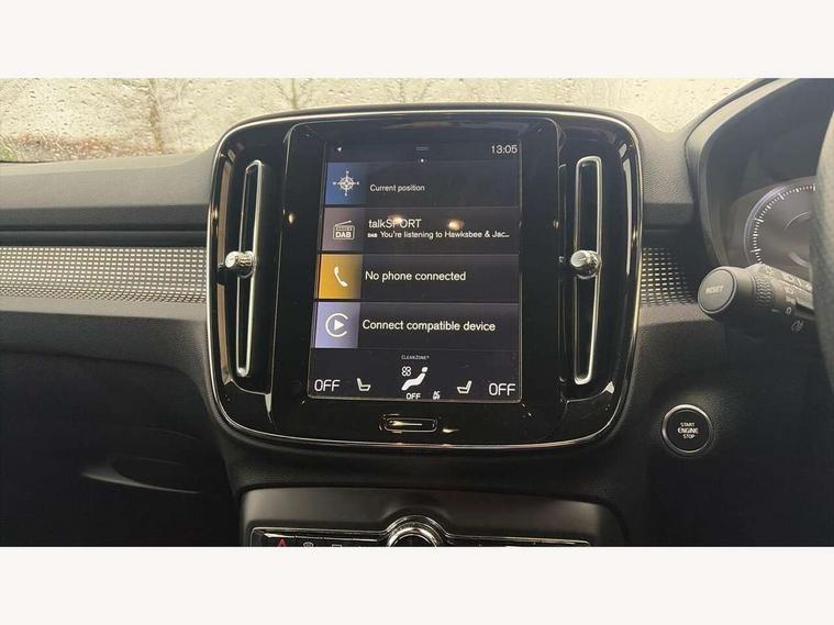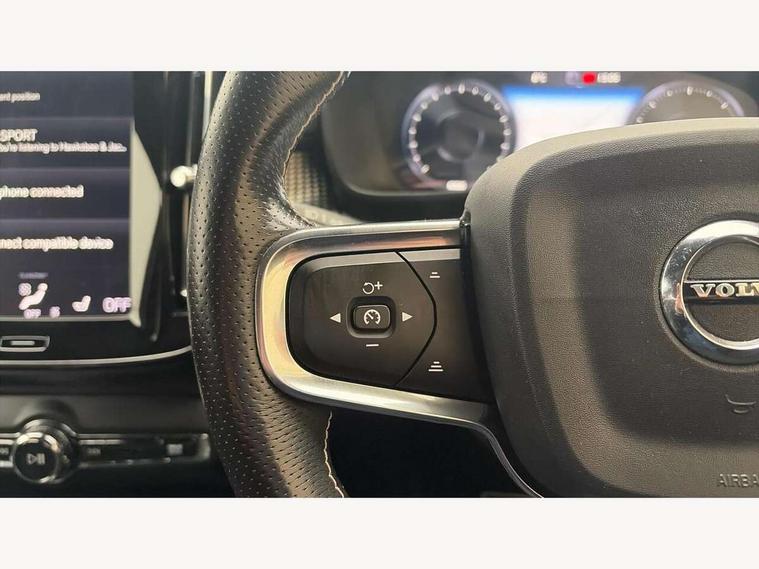 12.3" Active TFT crystal driver's instrument display, 9" Touch screen, Adjustable steering wheel force, Bluetooth hands free telephone kit, Drive mode selector, Lane keep assist with driver alert control, Oncoming Lane Mitigation, Sensus navigation system, Speed limiter, Speed sensitive steering, Voice control system, Volvo on call, DAB Digital radio, Steering wheel mounted remote controls, Adaptive brake lights, Auto dimming interior mirror, Automatic headlamp levelling, Black stone door mirrors, Black stone roof, Dark tinted glass for rear windows + rear screen + side luggage area window, Dual integrated exhaust pipes with high gloss black surround, Electrically adjustable and heated door mirrors, Embossed rear side roof pillar, Front and rear electric windows, Front tread plates, High gloss black front and rear skid plate, High gloss black lower front bumper, High gloss black mesh grille, High gloss black roof rails, High gloss black window trim, Home safe and approach lighting, LED front fog lights, LED Headlights + Active high beam incorporating daytime running lights, Rain sensor windscreen wipers, Rear wiper, Roof antenna, Roof spoiler, Visible VIN plate, 12V socket in front tunnel console, 2 zone electronic climate control with air quality system, 3 spoke leather steering wheel with chrome trim, 60/40 split folding rear seat, A-pillar parking ticket holder, Ambient lighting in door panels, Black headlining, Bright metal luggage threshold, Centre console cupholders, Centre console storage box, Contour sports seats with leather/nubuck upholstery, Cooled glovebox, Courtesy lights, Driver seat height/tilt/lumbar adjust, Driver's lower storage shelf, Extended front seat cushions, Front door pockets, Front footwell illumination, Front tunnel storage net, Front/rear reading lights, Glovebox bag hook, Glovebox illumination, Height/reach adjustable steering column, High gloss centre tunnel deco, Illuminated driver/passenger vanity mirrors, Illuminated front cupholder, Illuminated luggage compartment, Illuminated tailgate, Isofix attachments on outer rear seats, Load protection net, Multicolour theatre lights, Passenger seat adjustable for lumbar support, Perforated leather gearknob, Perforated Leather Key Integrated Remote, Perforated leather steering wheel, Pollen filter, Rear armrest / integral cup holders / storage tray, Sports pedals, Underfloor stowage compartment, ABS/EBD, City safety, Drivers knee airbag, DSTC-Dynamic Stability and Traction Control, Dual stage driver/passenger airbags, EBA, Electronic parking brake with auto hold, Fasten seatbelt reminder, First aid kit, Front seat side impact airbags, Hill descent control, Hill start assist, Inflatable curtain, Passenger airbag cut-off device, Road sign information display, Run off Road Mitigation, Run off Road Protection, Seatbelt pre-tensioners, Side impact protection, Tyre pressure monitoring system, Warning triangle, WHIPS whiplash protection system - front, Anti-theft alarm including immobiliser/volume sensor + level sensor, Fuel flap with deadlocking system, Key integrated remote control central locking, Locking wheel nuts, Private locking, Cutting edge aluminium inlay,