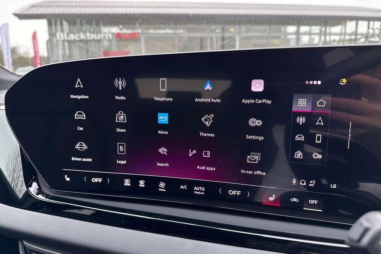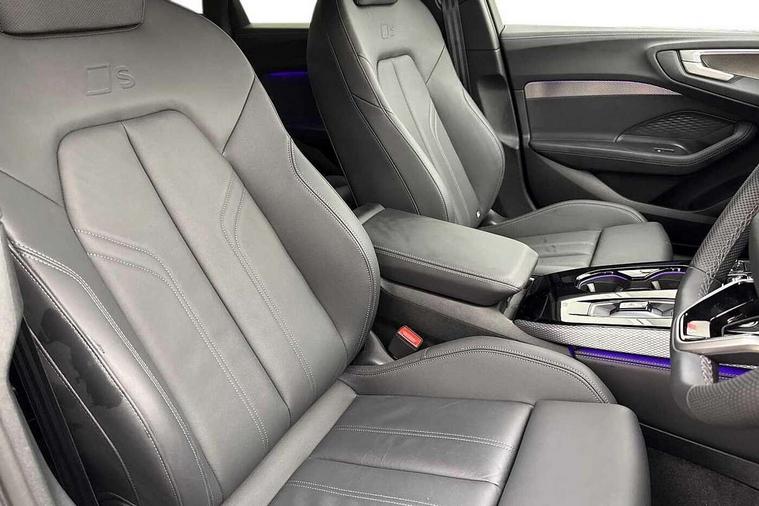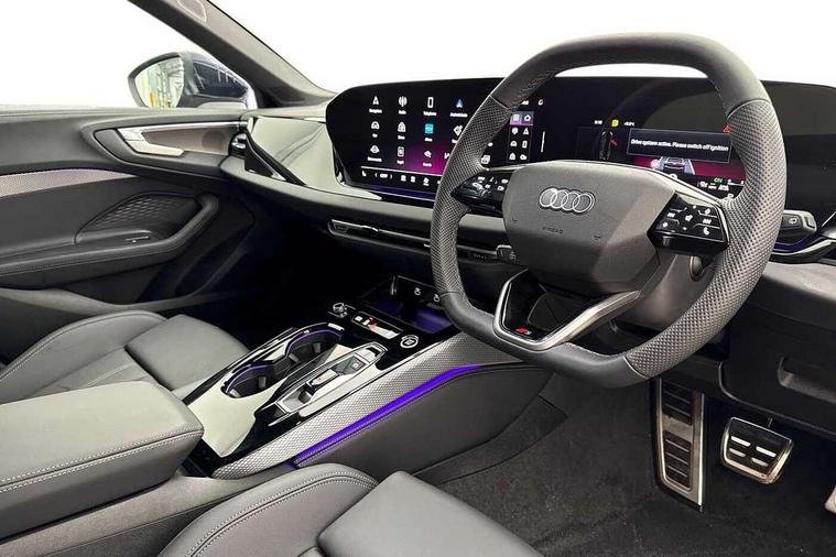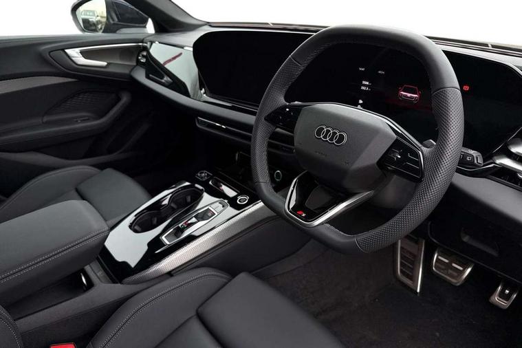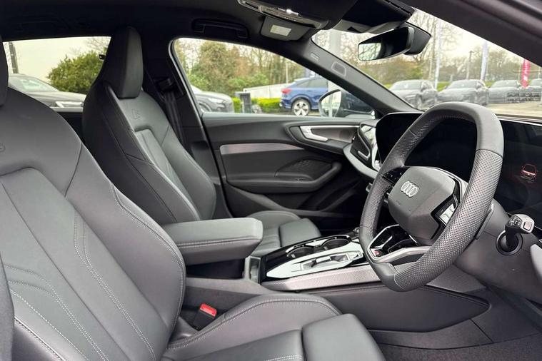 Adaptive cruise control, Advanced driver attention and fatigue montior, Audi application store, Audi assistant, Audi connect emergency call and service, Audi drive select, Audi smartphone interface, Audi virtual cockpit plus with 11.9" OLED colour display, Automatic start/stop system with coasting functionality, Camera based traffic sign recognition, Intersection assist, Lane departure warning, MMI navigation plus with high resolution 14.5" OLED touchscreen colour display, Park assist plus, Parking system plus with 360 display, Progressive steering with servotronic, Rear view camera, Swerve assist and turn assist, Traffic sign based speed limiter, Sports suspension lowered by 20mm, 2 USB-C ports in both the front and rear, Audi sound system impressive sound with 10 loudspeakers including centre speaker and subwoofer, 6-channel amplifier with a total output of 180 watts, DAB digital radio reception, Smartphone compartment with wireless charging, Aluminium roof rails, Aluminium window trims, Auto dimming rear view mirror, Body colour door mirrors, Door mirrors - electrically adjustable, heated, folding and auto dimming on both sides, Front and rear electric windows, Front door sill trims with aluminium inlays, illuminated with 'S' logo, High beam assist, LED headlights Plus incl. digital daytime running lights, turning light, all-weather light, motorway light, manouevring light and intersection light, LED rear lights pro incl. dynamic rear indicators and illuminated light strip with animated coming and leaving home function, LED third brake light, Privacy glass, Rear and side windows with heat insulating glass, Rear side wing doors, Rear wash/wipe, S Line badges on the front wings, S line bumpers, radiator grille and diffuser in phantom black and diffuser insert in matt anthracite, White rhombus logo projection light in exterior mirrors, Windscreen with acoustic glazing, 3 rear headrests, 3 seat rear bench, 3 spoke leather steering wheel with multi-function buttons with touch control, flattened on top and bottom, with S badging and contrast stitching, 3-zone automatic climate control, 40:20:40 split folding rear seat bench with centre armrest and cup holders, Comfort front centre armrest, Front and rear floor mats, Front seats with manual adjustment for position and 4-way electric lumbar support, Front sport seats with integrated headrest and S embossed logo, Headlining in black cloth, Heated front seats, i-Size child seat mounting on the front passenger side and outer rear seats, i-Size and top tether on the outer rear seats, Luggage compartment lid, electrically opening and closing, Manual steering column height and depth adjustment, Single front passenger seat, Stainless steel pedals and footrest, Steering wheel grips in perforated leather and shift paddles, Ambient lighting package plus - A5, 3x3 point rear seat belts, Driver airbag, Electric child safety locks, First aid kit with warning triangle and vests, Front emergency brake assist, Front passenger airbag, Front passenger airbag deactivation, Front side airbags with head airbag system and front interaction airbag, Hill hold assist, Seat belt monitoring with rear seat occupant reminder, Tyre pressure loss indicator, Anti theft alarm, Anti-theft wheel bolts, Keyless Go, Accent surfaces and control buttons in gloss black, Black dashboard with contrast stitching, Inlays in matt brushed aluminium with linear embossing, anthracite, Softwrap in leatherette with contrast stitching, Upper and lower interior elements in leatherette, Tyre repair kit,