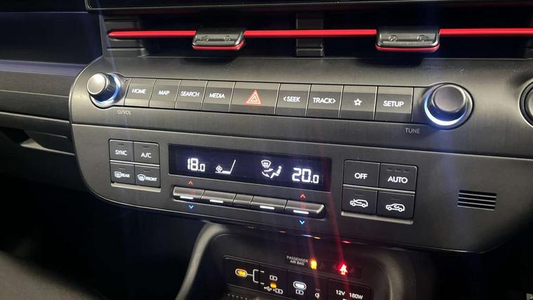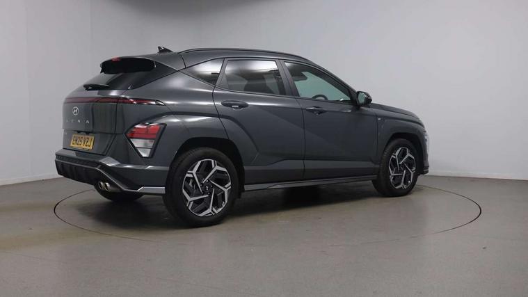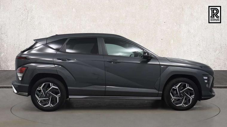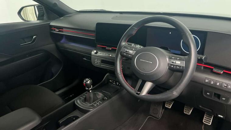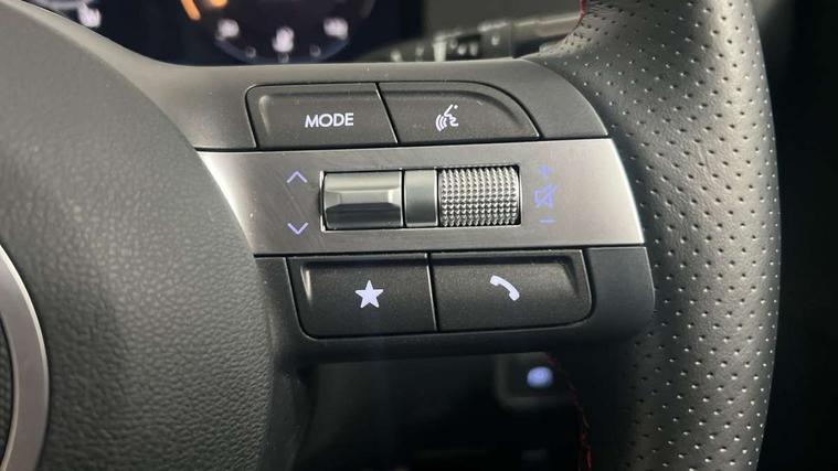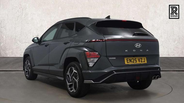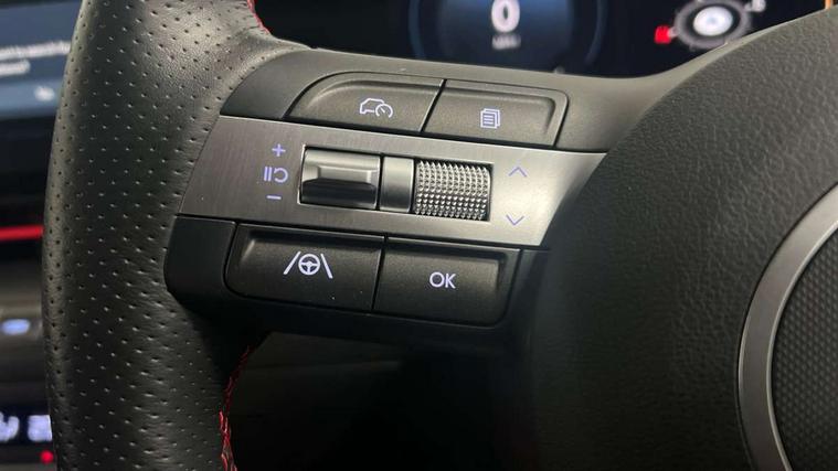 12.3" touchscreen centre console display satellite navigation with bluelink, live services and mapcare, Bluetooth connectivity with voice recognition, Cruise control, Driver status monitor (DSM), Driver supervision instrument cluster with 12.3" LCD display, eCall emergency call system, Feature on demand - Enabled, Forward collision avoidance assist (FCA 1.5) - Car, pededstrian, cycle and junction turning, Front parking sensor, Height adjustable power tailgate, Intelligent speed limit assist, Lane follow assist, Lane keep assist, Leading vehicle departure alert (LVDA), Parking system with rear camera and guidance system, PAS, Rear parking sensor, Roadside assistance, Wireless phone charging pad, Wireless Smartphone Integration includes Apple CarPlay and Android auto, 2 front USB C and 2 rear USB C charging points, DAB Digital radio, Speakers - Front, rear and tweeters, Steering wheel audio, phone and cruise controls, Auto dimming rear view mirror, Automatic headlights with dusk sensor, Automatic windscreen wipers with rain sensor, Body colour exterior door handles, Body coloured wheel arch inserts, Door mirror LED indicator lights, Electric front windows with anti-trap mechanism and one touch control, Electric rear windows, Electrically adjustable and heated door mirrors, Full LED MFR headlights, Gloss black door mirrors, LED daytime running lights, LED upper and lower rear lights, Power folding door mirrors, Privacy glass - Rear windows and tailgate, Rear roof spoiler with integrated LED brake light, Rear side wing doors, Rear wiper, Roof rails, Solar glass with front door glass and windscreen, Tinted glass in front and rear doors, Windscreen auto defog function, 12V power outlet in front console, 2 zone climate control, 3 seat bench in 2nd row, 40/20/40 split folding rear seat, Adjustable head restraints, Aluminium pedals, Ambient lighting, Driver and passenger front seat pockets, Driver's seat lumbar support, Driver/passenger manual seat height adjustment, Driver/passenger sunvisors and illuminated vanity mirrors, Floor mats, Heated front seats, Heated rear seats, Heated steering wheel, Height/reach adjustable steering column, Leather wrapped steering wheel and gear knob, LED centre interior light, LED front interior light, Luggage compartment LED lighting, Luggage shelf, Metal paint effect interior door handles, N Line cloth upholstery, Rear centre armrest with cupholders, Single front passenger seat, Vertical adjustment rear head restraints, N Line exterior design pack - Kona, Trailer wiring package - Kona, Airbag - front, front side, curtain and centre front airbag, Anti-lock brake system (ABS), Childproof rear door locks, Downhill brake control, Electric parking brake, Electronic stability control, Fixed 3 point for second row centre passenger seatbelt, Hill start assist control (HAC), Rear seat alert, Tyre pressure monitoring system, Alarm/immobiliser, Rear occupant alert, Remote central locking, Smart key with keyless entry and start/stop button, Five year annual vehicle health checks, Temporary mobility kit (TMK),