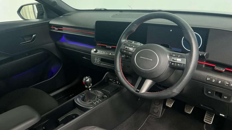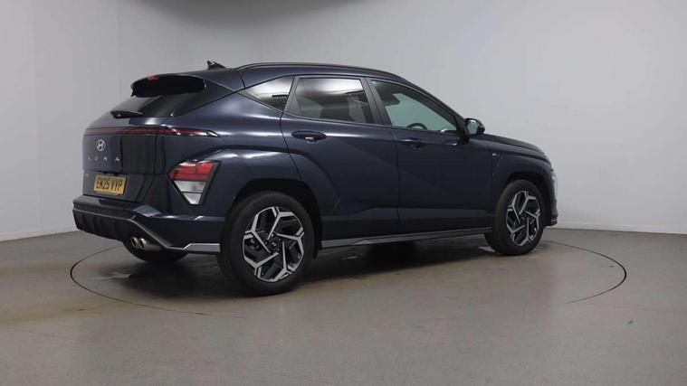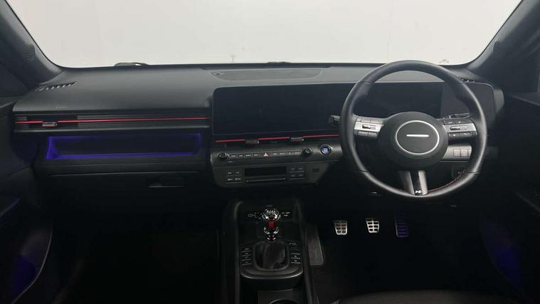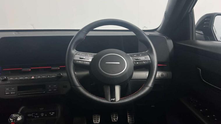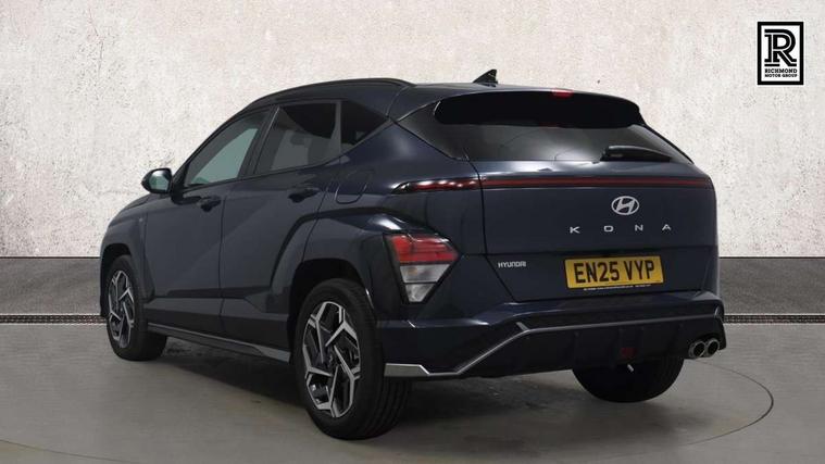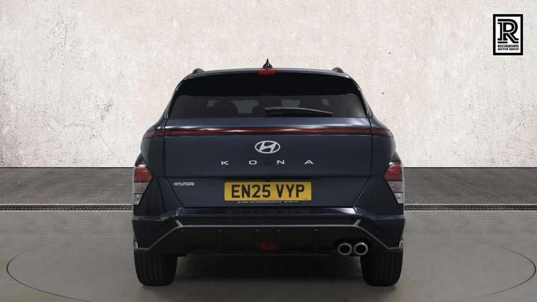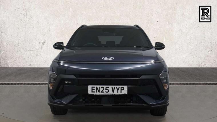 12.3" touchscreen centre console display satellite navigation with bluelink, live services and mapcare, Bluetooth connectivity with voice recognition, Cruise control, Driver status monitor (DSM), Driver supervision instrument cluster with 12.3" LCD display, eCall emergency call system, Feature on demand - Enabled, Forward collision avoidance assist (FCA 1.5) - Car, pededstrian, cycle and junction turning, Front parking sensor, Height adjustable power tailgate, Intelligent speed limit assist, Lane follow assist, Lane keep assist, Leading vehicle departure alert (LVDA), Parking system with rear camera and guidance system, PAS, Rear parking sensor, Roadside assistance, Wireless phone charging pad, Wireless Smartphone Integration includes Apple CarPlay and Android auto, 2 front USB C and 2 rear USB C charging points, DAB Digital radio, Speakers - Front, rear and tweeters, Steering wheel audio, phone and cruise controls, Auto dimming rear view mirror, Automatic headlights with dusk sensor, Automatic windscreen wipers with rain sensor, Body colour exterior door handles, Body coloured wheel arch inserts, Door mirror LED indicator lights, Electric front windows with anti-trap mechanism and one touch control, Electric rear windows, Electrically adjustable and heated door mirrors, Full LED MFR headlights, Gloss black door mirrors, LED daytime running lights, LED upper and lower rear lights, Power folding door mirrors, Privacy glass - Rear windows and tailgate, Rear roof spoiler with integrated LED brake light, Rear side wing doors, Rear wiper, Roof rails, Solar glass with front door glass and windscreen, Tinted glass in front and rear doors, Windscreen auto defog function, 12V power outlet in front console, 2 zone climate control, 3 seat bench in 2nd row, 40/20/40 split folding rear seat, Adjustable head restraints, Aluminium pedals, Ambient lighting, Driver and passenger front seat pockets, Driver's seat lumbar support, Driver/passenger manual seat height adjustment, Driver/passenger sunvisors and illuminated vanity mirrors, Floor mats, Heated front seats, Heated rear seats, Heated steering wheel, Height/reach adjustable steering column, Leather wrapped steering wheel and gear knob, LED centre interior light, LED front interior light, Luggage compartment LED lighting, Luggage shelf, Metal paint effect interior door handles, N Line cloth upholstery, Rear centre armrest with cupholders, Single front passenger seat, Vertical adjustment rear head restraints, N Line exterior design pack - Kona, Trailer wiring package - Kona, Airbag - front, front side, curtain and centre front airbag, Anti-lock brake system (ABS), Childproof rear door locks, Downhill brake control, Electric parking brake, Electronic stability control, Fixed 3 point for second row centre passenger seatbelt, Hill start assist control (HAC), Rear seat alert, Tyre pressure monitoring system, Alarm/immobiliser, Rear occupant alert, Remote central locking, Smart key with keyless entry and start/stop button, Five year annual vehicle health checks, Temporary mobility kit (TMK),