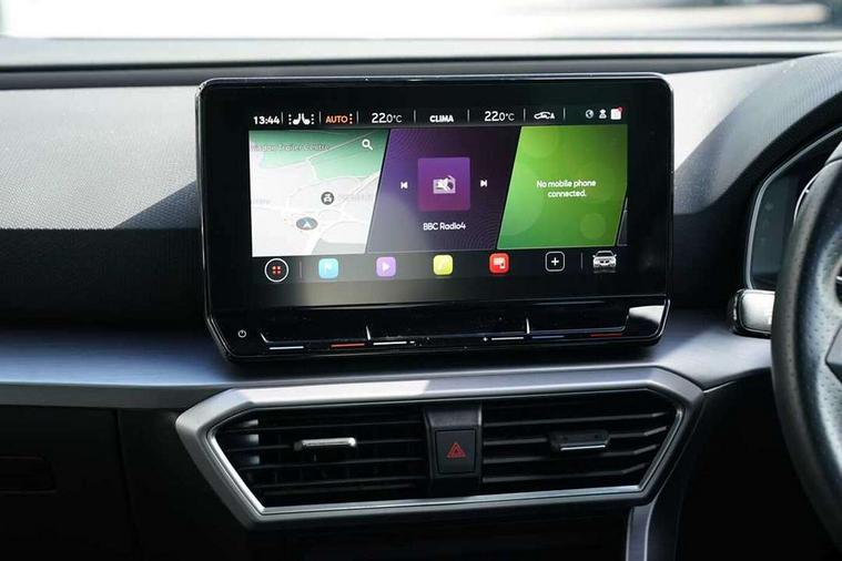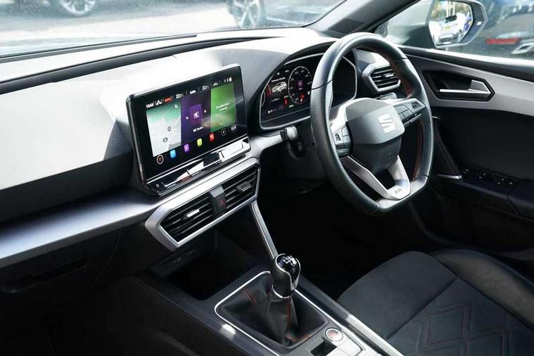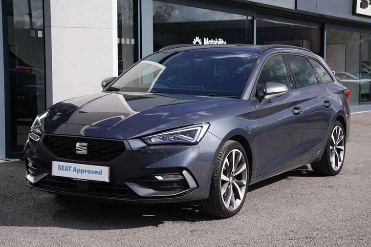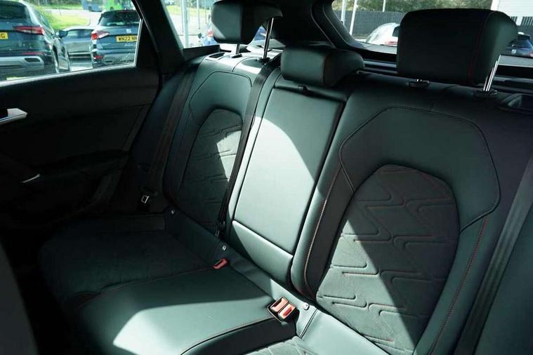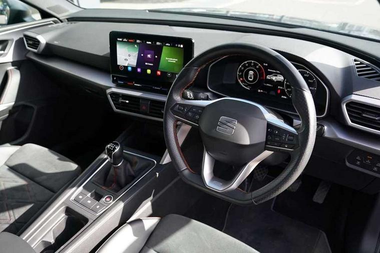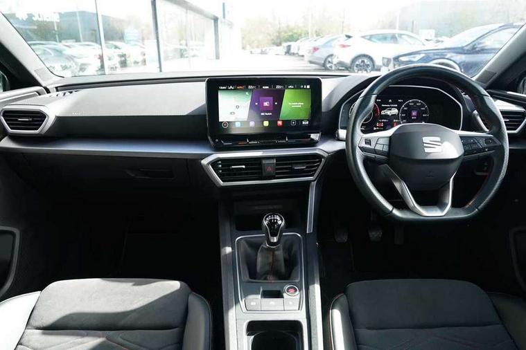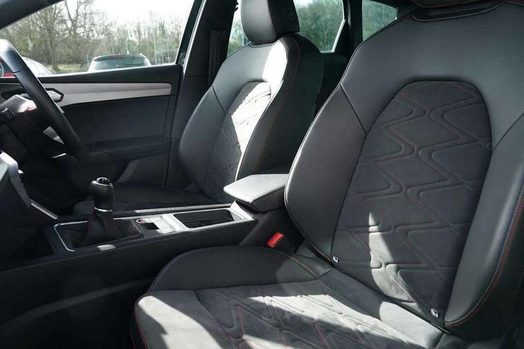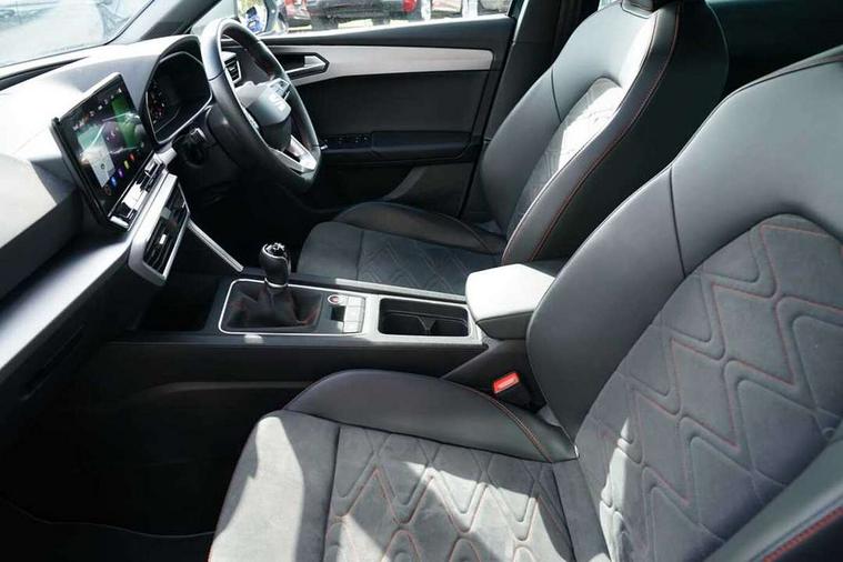 Digital cockpit, E-call, Front assist with forward collision warning braking reaction to vehicles, pedestrians and cyclists, Full link smartphone integration with Mirror Link, wireless Apple CarPlay and wired Google Android Auto, Lane assist, Lockable tailgate, Park assist (inc front/rear parking sensors), Power assisted speed sensitive electro-mechanical steering, RPM, trip computer, outside temp gauge, instrument light brightness, low fuel warning light, lights on reminder, gearshift indicator, SEAT drive profile with 4 modes (Eco/Normal/Sport/Individual), throttle response, Service interval indicator, Start/stop system with regenerative braking, Sports suspension, XDS electronic differential lock and dynamic traction support, 7 speakers, Auxiliary input socket, Auto dimming rear view mirror, Body colour door handles, Body coloured bumpers, Dark tinted rear windows, Door mirror LED indicator lights, Electric adjustable/heated/folding door mirrors with memory, Electric front/rear windows, FR sports bumper, Illuminated front door sill, LED front fog lamps with cornering function, LED headlights and tail lights with dynamic turn signals, welcome light silhouette from exterior mirrors and dynamic headlight range control, LED rear fog lamp, Matt black roof rails, Rain sensing wipers, Rear side wing doors, Rear wash/wipe, Separate daytime running light with automatic headlight control and coming home feature, Third brake light, 12V Accessory socket in the load area, 12v power point in centre console, 3 seat bench in 2nd row, 60/40 split rear bench seat with armrest, Ambient lighting with glovebox, footwell and single monocolour, Black headlining, Dust/pollen filter, Electric driver lumbar support + passenger manual lumbar support, Four x USB Type C ports, Front and rear height adjustable headrests, Front and rear reading lights X 4, Front centre armrest, Front seatback storage pockets, Heated front seats, Heated leather steering wheel with leather gearstick, Height/reach adjust steering wheel, ISOFIX points in outer rear seats with top tether anchorage points, Luggage tie-down hooks, Microsuede cloth upholstery, Power driver seat with memory and manual height adjustable passenger seat, Single front passenger seat, Sliding boot cover, Sunvisors with covered illuminated mirror, Three zone climate control, Wraparound lighting, Media system plus with navigation - Leon, 3 point seatbelts on all rear seats, ABS, Brake control system - ESC and brake booster, Child proof door locks, Driver and front passenger airbags with front passenger airbag de-activation, front side and curtain airbags, Electronic parking brake, Extended safety system - seat belt tensioner, window closure and hazard lights, Hill hold control, Rear disc brakes, Seat belt reminder for front and rear seats, Tiredness recognition system, driver alert system, Tyre pressure monitoring system, Anti theft alarm system with interior monitoring in cab, backup horn and towing protection, KESSY Go (Keyless start), Locking wheel bolts, Wireless phone charging, Chrome interior detailing, 18" Performance machined alloy wheels with 92Y tyres, Tool kit,