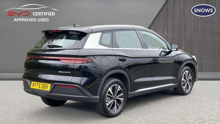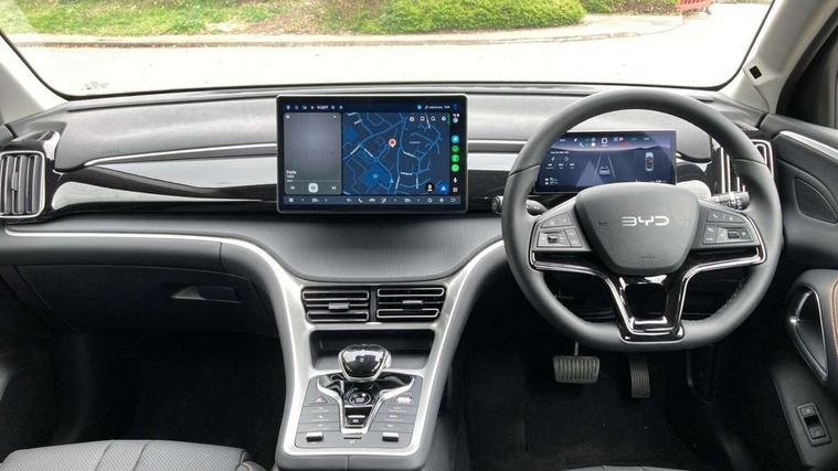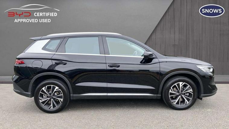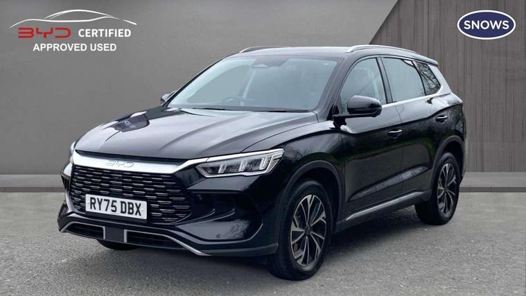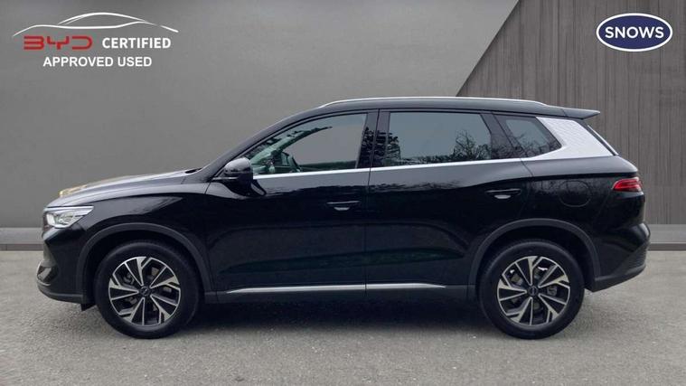 360 degree view camera, 8.8" TFT full LCD instrument panel, Adaptive Cruise Control (ACC) and Intelligent Cruise Control (ICC), Apple CarPlay and Android Auto, Automatic vehicle hold, Blind spot detection, Cloud service - BYD APP, Controller Deceleration Parking (CDP), Drive mode select (Eco, normal, sport, snow), Driver monitoring system, e-Call (emergency call), Electric tailgate, Emergency Lane Keeping Assist (ELKA), Forward collision warning, Front parking radar, Intelligent Speed Limit Control (ISLC), Intelligent voice control - "Hi BYD", Lane departure assistant with lane departure warning and lane departure prevention, Onboard 4G connectivity, PAS, Rear collision warning, Rear cross traffic alert and rear cross traffic brake, Rear parking radar, Smartphone wireless charging - 1 x 15W single charge, Traffic sign recognition (TSR), 3.3kW On-Board charger, 12.8" Electrically rotatable touchscreen, 6 speakers, FM/DAB+ radio, Front and rear USB ports - 1 x 18W Type C + 1x 60W Type C, Aluminium roof rails, Automatic headlights, Automatic rain-sensing boneless wipers, Dynamic welcome lights, Electric adjustable door mirrors, Electric folding and heated door mirrors, Exterior mirror footlights, Follow me home headlights (The headlights turned on in advance and delayed off function), Front windscreen, UV protection, thermal insulation and sound proofing, High beam assist, LED 3rd brake light, LED daytime running lights, LED Headlights, LED taillights, Manual dimming interior rear view mirror, One touch electric front/rear windows with pinch protection, Rear side wing doors, Rear wiper, 12V power outlet, 3 seat bench in 2nd row, 4 way electrically adjustable front passenger seat, 6 way electrically adjustable drivers seat, Boot parcel shelf, Driver and passenger sunvisors with illuminated vanity mirrors, Front centre armrest, Front LED reading lights, Front seat footlights, Heated front seats, Height and reach adjustable steering wheel, Integrated headrest in front seats, ISOFIX and i-Size for front passenger and outer rear seats, LED front door lights, PM2.5 air filter, Rear air vents, Rear armrest with 2 cupholders, Rear seats with manually adjustable headrest, Rear side LED reading lights, Single front passenger seat, Split folding rear seats - 40/60, Trunk light, Vegan leather multifunction steering wheel, Vegan leather upholstery, 3x3 point rear seatbelts, ABS, Automatic emergency braking system, Brake override system (BOS), Child presence detection, Comfort stop, Door open warning, Driver airbag, Electric parking brake, Electronic brake distribution, Force limiting pre-tensioned front seat belts, Front centre airbag, Front passenger airbag with deactivation switch, Front side airbags, Hill hold control, Hydraulic Brake Assist (HBA), Hydraulic brake boost, Mechanical child safety lock, Pre-tensioned outer rear seat belts, Rear middle seat force limiting seat belt, Side curtain airbags, Traction control system (TCS), Tyre pressure monitoring system (TPMS), Vehicle Dynamics Control System (VDC), 2 x Smart keys, Alarm, Automatic door locking, Immobiliser, Keyless entry and keyless start, 18" Bi-colour alloy wheels, Tyre repair kit,