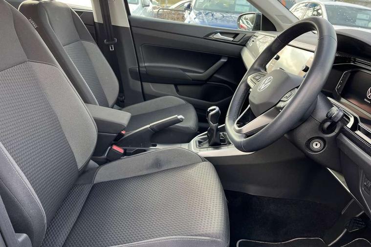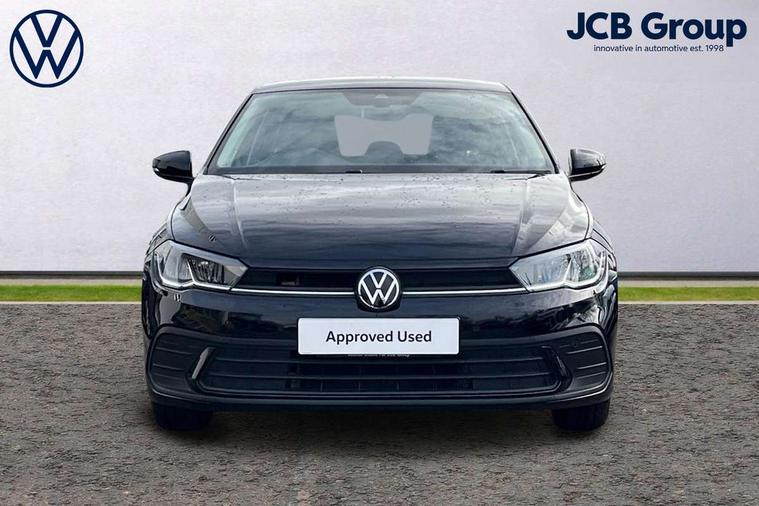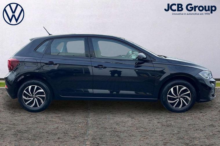 Adaptive cruise control without follow-to-stop and speed limiter, Bluetooth mobile phone interface, Driver alert system, Emergency call service, Front assist system, Power assisted speed sensitive steering, Preparation for We connect and We connect plus, Speedo and rev counter, electronic odometer, trip, service interval display and fuel gauge, Standard rear axle, Travel Assist - Lane keeping system and traffic jam assist, Travel assist including emergency assist, Trip computer, Warning signal and warning light for front and rear seatbelts not fastened, Washer fluid level indicator, Wireless app connect, Front wheel drive, Rear shock absorpion, Start-stop system with battery regeneration (recuperation - energy recovery during braking), DAB Digital radio, Diversity antenna for FM reception, Front and rear 6 speakers, Automatic dimming interior rear view mirror, Body colour bumpers, Body colour door handles, Body colour door mirrors, Electric front windows, Heat insulating darkened glass in side and rear windows, Heat insulating glass windscreen, Power folding adjustable/heated exterior mirrors and front passenger exterior mirror lowering function, Rain sensor, Rear electric windows, Rear fog light, Rear side wing doors, Rear windscreen washer and wiper with interval delay, Third brake light, 12V power socket in centre console, 2 front and 2 rear reading lights, 2 USB-C ports in the front, 2 USB-C charging sockets on the center console in the rear, 3 rear head restraints, 60/40 split folding rear seat and rear seat bench not split, Ceramique headliner, Chrome plated radiator grille inserts, air vent surrounds and light switch surrounds, Door and side trim panel, Driver and front passenger seat height adjustment, Driver/passenger sunvisors with illuminated vanity mirrors, Front centre armrest, Front seat backrest storage pockets, Front standard seats, Handbrake lever handle in leather, Hartley/Thomas cloth upholstery, Isofix child seat preparation easy-fit (for two outer rear seats, and front passenger seat) compatible with I-size, Leather trimmed gear knob, Luggage compartment cover, Luggage compartment floor, Luggage compartment lighting, Multifunction steering wheel, Single front passenger seat, Standard pedal cluster, Light and vision pack - Polo, 3 point height adj front seatbelts + pretensioners, 3x3 point rear seatbelts, ABS, Driver and front passenger airbag with front passenger airbag deactivation, Drivers and front passengers safety optimised head restraints, ESC (Electronic stability control) + EDL (Electronic Differntial lock) and ASR (Traction control), Extended and predictive pedestrian/ cyclist protection, Front curtain and side airbags with center airbag, Front disc brakes, Hill hold control, Manual child lock in rear doors, Rear drum brakes, Single tone horn, Tyre pressure loss indicator, Alarm with interior protection, Anti-theft alarm system with interior monitoring, backup horn, and towing protection, Anti-theft wheel bolts, Electronic engine immobiliser, Lava stone black gloss/matt decorative inserts in dash and front door panels, Low rolling resistance tyres,