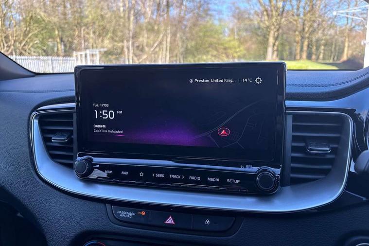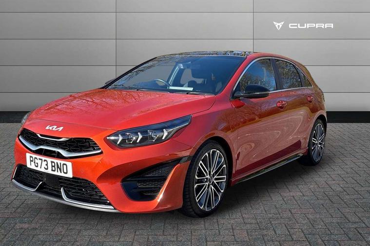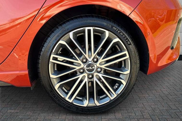 10.25" touchscreen satellite navigation, 12.3" TFT supervision cluster display, Apple car play/Android Auto with voice control, Blind spot Collision Warning (BCW), Bluetooth with Voice Recognition & Music Streaming, Drive mode select (Normal and Sport), Driver Attention Warning (DAW), Driver memory function, Emergency call service, Emergency stop signalling system, Forward Collision-Avoidance Assist (FCA) - City/Pedestrian/Cyclist, Intelligent speed limit warning, Kia connect UVO, Lane Following Assist (LFA), Lane keep assist, Manual speed limit assist, Motor driven power steering, Rear cross-collision assist, Reversing camera system with dynamic guidelines (Integrated into centre fascia screen), Smart cruise control, Smart park assist system (SPAS) with parallel/perpendicular with front/rear parking sensor, Trip computer, Wireless Mobile Phone Charger, Intelligent Stop and Go, DAB Radio with MP3, Illuminated USB ports, JBL Premium sound system with 8 speakers, Steering wheel mounted controls, USB Fast Charger in Front Centre Console, USB port for connection of a media device, All-round Electric Windows with Front Auto Up & Down Function, Auto dimming rear view mirror, Automatic defog system, Automatic headlights control, Body colour bumpers, Body colour exterior door handles, Body coloured and dark chrome rear skid plate, Body coloured side sill mouldings, Dark chrome window surround, Electric adjustable/heated/folding door mirrors with LED Indicators, Heated rear window with timer, High beam assist, High gloss black and dark chrome radiator grille, High gloss black door mirrors, High Gloss Black rear spoiler, LED daytime running lights, LED front fog lights, LED Headlights, LED High-mounted Brake Light, LED honeycomb rear light, LED rear combination lights, Panoramic sunroof with tilt/slide function and automatic electric roll blinds, Privacy glass (rear side windows and tailgate), Rain sensing front wipers, Rear side wing doors, Rear wash/wipe, Satin chrome dual exhaust trim, Tinted glass, Wide view drivers door mirror, Windscreen Washer Level Warning, 1 x Front 12V socket, 12V power socket in luggage compartment, 3 seat bench in 2nd row, 3 x passenger assist grips, 60/40 split folding rear seat, All-round height adjustable headrests, Aluminium pedals, Centre console storage box/armrest, Cupholders in centre console, Cupholders in rear armrest, Dash illumination dimmer switch, Door courtesy lamps, Driver & Front Passenger Sunvisors with Vanity Mirror Illumination & Ticket Holder, Driver + front passenger electric lumbar support, Driver's power seat height adjuster, Dual Height Luggage Area Floor, Dual zone automatic air conditioning, Faux leather door centre trim, Front and rear door storage, Front cabin map light with sunglasses case, Front Passenger Seat Height Adjuster, Front seat back pockets, Heated front seats, Heated rear seats, Heated steering wheel, Interior door lock/unlock function, ISOFIX Child seat top tethers and anchor fixings, Leather D-Cut steering wheel, Leather handbrake, Leather/suede upholstery, Luggage area light, Luggage area parcel shelf, Luggage hooks, Rear centre armrest, Rear coat hooks, Satin chrome interior door handles, Single front passenger seat, Tilt/telescopic adjustable steering wheel, All round 3-point seatbelts, Anti-lock braking system (ABS), Brake assist system, Dual front side airbags, Dual horn, EBD - Electronic brakeforce distribution, Electronic parking brake, Electronic stability control (ESC) and vehicle stability management (VSM), Front passenger airbag cut-off switch, Height adjustable front seatbelts, Hill start assist control (HAC), Impact sensing auto door unlocking, Rear door child safety locks, Seatbelt reminder warning, Twin curtain airbags, Twin front airbags, Tyre pressure monitoring system, Alarm system, Engine Immobiliser & Deadlocks, Engine Start/Stop Button with Smart Entry System, Locking wheel nuts, Speed sensitive auto door locking, Black high gloss front console garnish & door trim, Satin Chrome Fascia Trim, 18" GT-Line S alloy wheels, Tyre mobility kit,