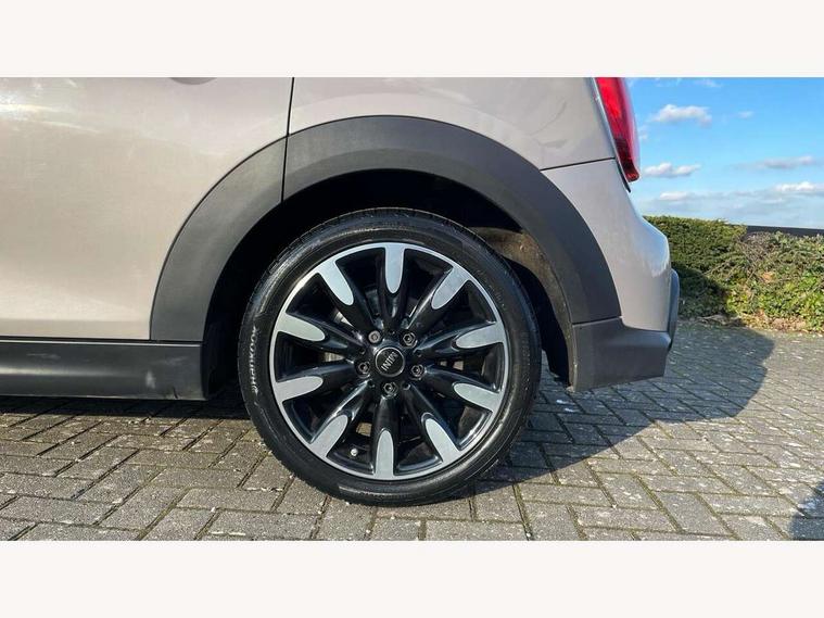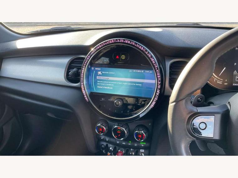 Apple CarPlay, Automatic start/stop function with brake energy recuperation, Compatible mobile phone bluetooth with audio streaming, Cruise control with brake assist, Electro-mechanical speed dependant steering assistance, Flexible car sharing preparation, Instrument cluster, MINI Driving Modes - centre toggle switch to control driving setting (sport, mid and green), Mini E-call, MINI TeleServices, On board computer, Rear park distance control, Service interval indicator, Double Vanos system, Fully variable valve control, Gear change indicator display, High precision injection, Performance Control, Steptronic sport transmission with double clutch and steering wheel paddles, 8.8" touchscreen with LED ring, FM tuner and DAB digital radio, 3rd brake light, Automatic headlight activation switch, Bonnet scoop, Chrome line exterior - radiator grille bars, tailgate handle, lower front grille grating and rear central fog-light, Dynamic brake lights, Electric front+rear windows, Heated rear window, Heated windscreen washer jets, LED headlight with closed ring and daytime driving lights, Metal door sill strips with Cooper S imprint, Model logo Cooper S on right of tailgate, Radiator grille chrome border with honeycomb structure including S Badge, Rain sensor window wipers, Rear fog lights, Rear LED lights with union jack design, Rear side wing doors, Rear window wiper, Side scuttle panel with integrated indicator, Sun/heat protection glass, White indicator lenses, 12V Accessory socket in centre console, 3 seat bench in 2nd row, 4 lashing eyes in luggage compartment, 60/40 split folding rear seat, Anthracite headliner including grab handles and clothes hooks, Carbon black colour line - Knee roll and door armrest, Chrome interior highlights, Chrome line interior - air vents, gear lever base, door handles and speakers in doors, Cupholders, Front and rear head restraints, Front and rear isofix with front passenger airbag deactivation, Front and rear velour floor mats, Glove compartment, Height and length steering column adjustment, Interior lighting with 12 different colours across the dashboard, underneath door bezel with illuminated laser-engraved design on central display, Leatherette gearshift lever and handbrake gaiters, LED reading lights, vanity mirror lights, front foot well light and spotlight on front seats, Manual air conditioning, Mechanical seat adjustment - forward/back & backrest for front seats and driver seat height adjust, MINI yours badge on exterior pillar, Multifunction steering wheel, Single front passenger seat, Sport leather steering wheel with speed limiter and audio/communication controls, Storage compartments in doors, Storage pocket on back of front seats, Sunvisors with vanity mirrors, Walknappa leather steering wheel with grey seam and MINI Yours badge on Piano Black lower steering wheel spoke, 3 point seatbelts on all five seats, 6 Airbags - front, side, head and seat belt tensioners, Anti-lock braking system (ABS), Child locks on rear doors, DSC - Dynamic Stability Control, Front and rear disc brakes, Hill start assist, Two tone horn, Tyre pressure monitoring system, Alarm system with tilt sensor, monitoring doors, bonnet interior and tailgate, Electronic vehicle immobiliser, Start/stop toggle with keyless go, Tool kit,
