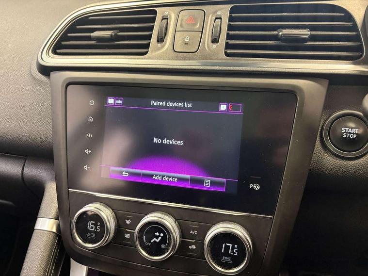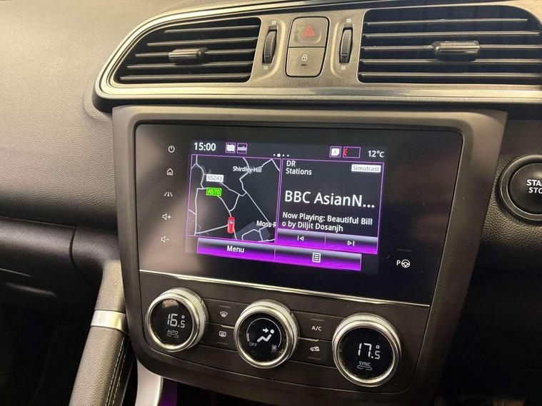 Blind spot warning with lateral sensors, Cruise control + speed limiter, Digital speedometer with 7 TFT screen, Door/boot open warning light, Eco mode, Exterior temperature indicator, Gear change indicator, Hands free parking system with 360 degree parking sensors, Lane departure warning system, Low fuel level warning light, Multi function trip computer, Oil level gauge, Over speed and traffic sign recognition, PAS, R-Link 2 Multimedia system + 7" touchscreen, TomTom + West European Map, DAB/FM/AM radio, bluetooth + hands free, USB/AUX, voice control, Rev counter, Smartphone integration, Diesel particulate filter, Bose sound system with 7 speakers/digital amplifier + 1 Subwoofer, Fingertip controls for audio system, Two rear USB sockets, Adamantium front and rear skid plates, Auto dimming rear view mirror, Automatic headlights, Automatic high/low beam, Automatic windscreen wipers with variable speed adjustment, Body colour door handles, Body coloured bumpers, Body coloured door mirrors, Bodyside mouldings with chrome inserts, Chrome fog light surround, Chrome front grille, Chrome roof rails, Chrome window surround, Electric adjustable/heated/folding door mirrors, Extra tinted glass in rear windows and tailgate, Fixed panoramic glass sunroof, Flank protection, Front and rear electric windows, Front and rear towing rings, Heated rear windscreen, Integrated C shape indicators with side repeaters, Integrated fuel filler cap, LED daytime running lights, LED front fog lamps with cornering function, LED high and low beam headlights with LED turn indicators, Rear wiper, Shark fin antenna, Side and boot kick plates, 12V socket in front, 3 height adjustable rear headrests, 3 seat rear bench, 60/40 split folding rear seat, Accessory power point, Adjustable dashboard illumination, Air recirculation system, Centre rear armrest with cup holder, Driver and front passenger seat cushion extension, Driver sunblind with illuminated mirror and ticket holder, Driver's seat with lumbar adjustment, Driver/passenger reading lights, Dual zone automatic climate control, Easy life quick folding rear seat, Electric adjust driver's seat, Front courtesy lights, Front footwell illumination, Front/rear floor mats, Heated front seats, Height adjustable front headrests, Height adjustable passenger seat, Height/reach adjust steering wheel, Illuminated boot, Illuminated centre console, ISOFIX child seat anchorage points attached on outer rear seats, Leather steering wheel, Multi positional boot floor, Pollen filter, Rear courtesy lights, Rear passenger air vents, Sliding front centre armrest, Storage glovebox, ABS/EBD, Advanced emergency braking system, Driver/passenger 2 stage auto adaptive airbags, Electronic parking brake, ESP with ASR and UCL (understeer control logical), Front and rear curtain airbags, Front lateral airbags, Front seat belts warning, Height adjustable front seatbelts with double pretensioners, Hill start assist, Manual passenger airbag deactivation function, Rear seatbelt warning indicator, Side impact protection, Three point rear center seatbelt, Traction control, Tyre pressure monitor, 3 Button retractable key, Anti-drill door locks/ignition barrel, Deadlocks, Insurance approved Cat 1 alarm system, Insurance Approved Immobiliser, Key card hands free with walk away lock function, RAID (Renault Anti-Intruder Device) with automatic door locking, Remote central locking, 19" Poseidon diamond cut alloy wheels,