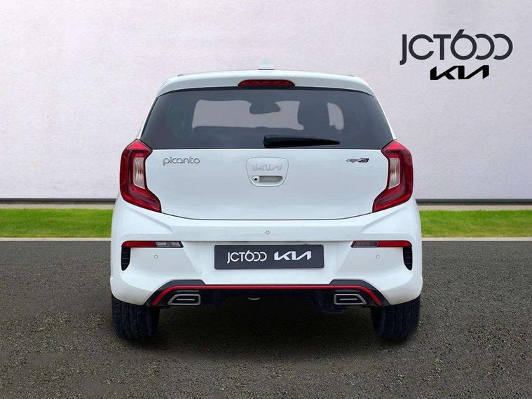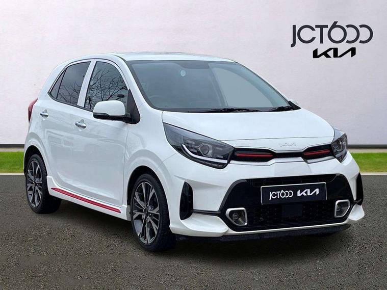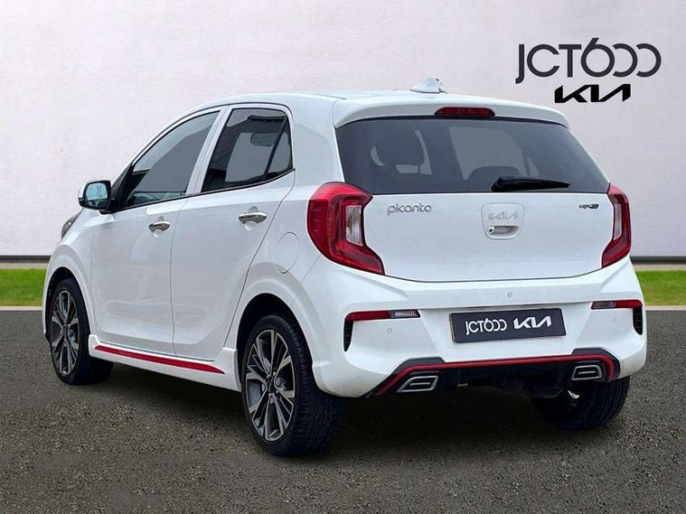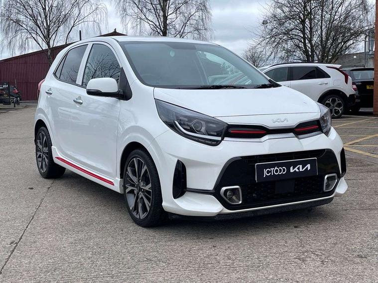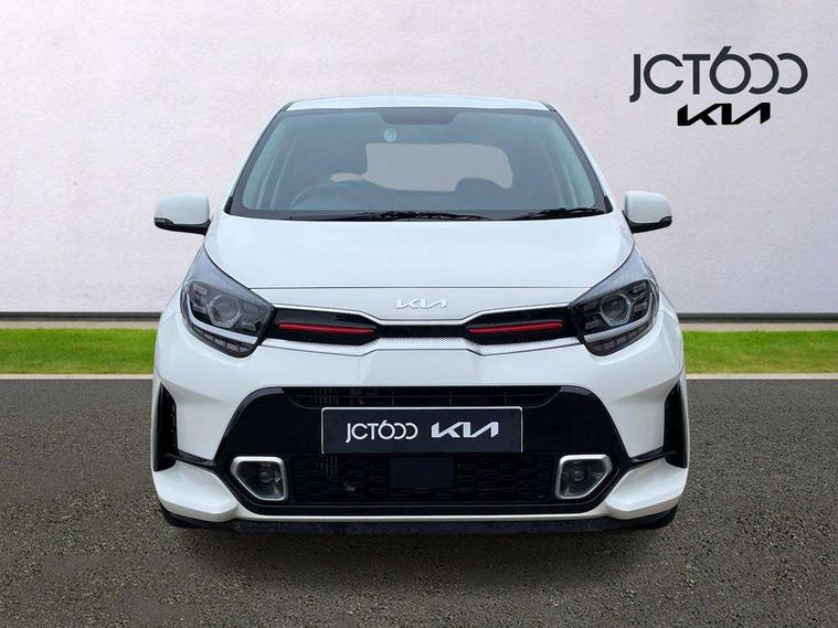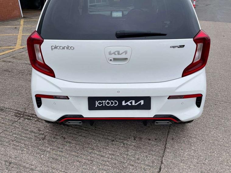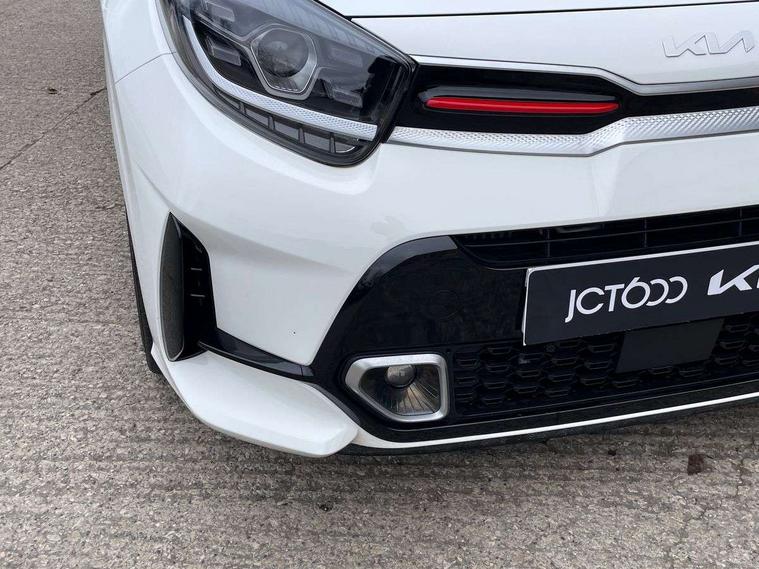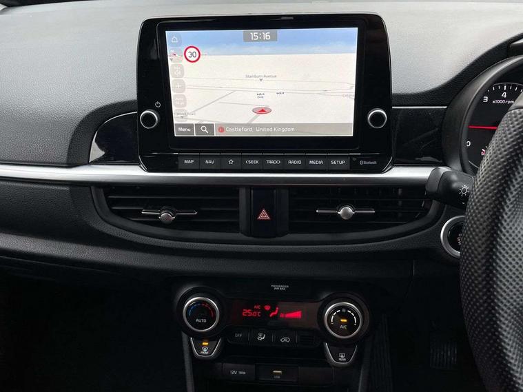 8" touch screen satellite naviagtion with RDS and DAB with telematics, Apple car play/Android Auto with voice control, Cruise control + speed limiter, Emergency call service, Emergency stop signalling system, External temperature gauge, Kia Connect (UVO), Motor driven power steering, Rear parking sensors, Reversing camera system with dynamic guidelines (Integrated into centre fascia screen), Tachometer, Trip computer, Wireless Smartphone charger, 6 speaker audio system, Bluetooth with music streaming, Steering wheel mounted controls, USB ports for connection of a media device, Automatic headlight control system, Bi-function projection headlights, Black beltline mouldings, Black grille with silver surround, Body colour B pillars, Body colour bumpers, Body colour side sill mouldings, Body coloured mirrors and chrome exterior handles, Day/night rear view mirror, Electric adjustable/heated/folding door mirrors with LED indicators lights, Front and rear electric windows with drivers's auto up/down function, Front fog lights, Headlamp levelling, Heated rear window, High mount brake light, LED daytime running lights, LED rear fog lights, Privacy glass - Rear windows and tailgate, Rain sensor, Rear side wing doors, Rear wash/wipe, Speed variable front wipers, Sports front and rear bumpers with gloss black skid plates twin exhaust, Tinted glass, Visible VIN plate, Welcome and follow-me home light functionality, 1 x rear coat hook, 12V power point front, 2 seat bench in 2nd row, 3 x passenger assist grips, 60/40 split/folding 2nd row of seats, All round height adjustable headrests, Automatic air conditioning, Black and red accents front door armrest, Centre Console with Storage Box and Sliding Armrest, Cupholders in centre console, D-cut steering wheel with red stitching, Driver and front passenger sunvisors with driver's side illuminated vanity mirrors, Driver seat height adjust, Faux leather upholstery, Front cabin lights, Glovebox, Heated front seats, Heated steering wheel, High gloss lower centre fascia trim, door armrest and air vents, ISOFIX Child seat top tethers and anchor fixings, Leather trimmed steering wheel and gearshift, Luggage area light, Luggage area parcel shelf, Passenger front seatback pockets, Satin chrome interior door handles, Single front passenger seat, Slide/reclining front seats, Tilt adjustable steering wheel, Advanced Driver Assistance Pack - Picanto, 2 x 3-point rear seatbelts, ABS/EBD, Automatic unlocking of doors in case of impact, Dual front airbags, ESC + BAS + VSM + HAC, Front passenger airbag cut-off switch, Front seatbelt height adjusters, Front seatbelt pretensioners + load limiters, Hill hold control, Knee airbags, Rear child proof door locks, Seatbelt warning, Side impact protection, Torque vectoring brake based and straight line stability (SLS), Traction control, Twin curtain airbags, Twin front side airbags, Tyre pressure monitoring system, Anti theft alarm, Engine immobiliser, Locking wheel nuts, Smart key with engine start/stop button, 16" alloy GT-Line wheels, Tyre mobility kit,