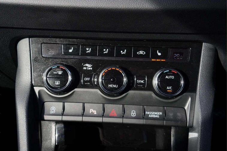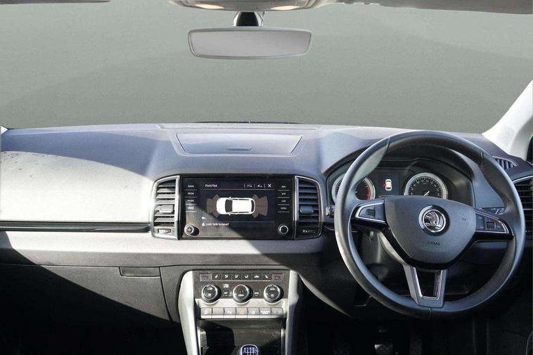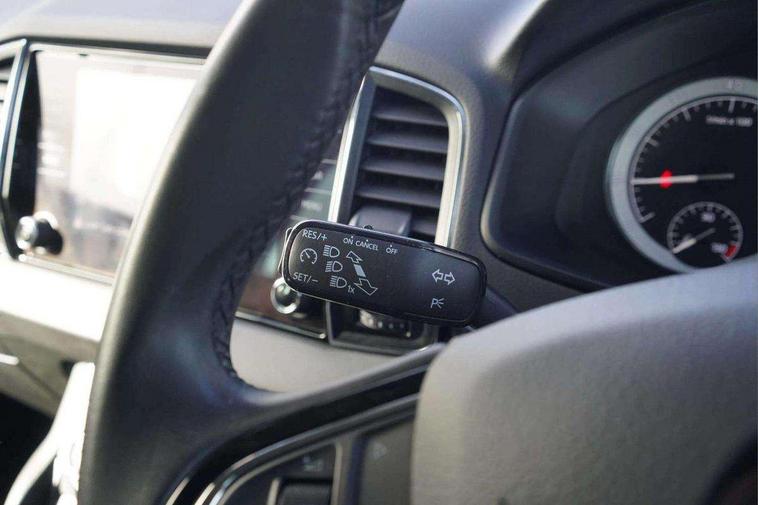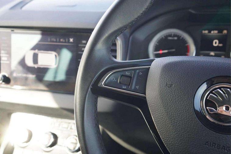 Drive mode selector, Driver alert system, Driver fatigue sensor, Driver profile selection, Multifunction colour trip computer, Outside temperature gauge, Rear view camera, Service interval indicator, Start/stop system with regenerative braking, DAB radio with Bluetooth, SD card slot, USB connection, Acoustic glass, Aero front windscreen wipers with intermittent function, Automatic headlight control system, Black electric window control buttons, Body colour door mirrors and handles, Body coloured bumpers, Electric front and rear windows with child proof lock, Full LED headlights + adaptive front light system + LED daytime running lights and front cornering fog lights, Headlight washers, Heated rear windscreen, LED rear lights with high functionality, Light assistant (coming/leaving home/tunnel light), Privacy glass, Safety reflectors on front doors, Third brake light, 1.5 litre bottle holders in driver and front passenger door panels, 12V socket in boot, 12v socket in front centre armrest with storage compartment and rear air vents, 2 Folding hooks and nets in boot, 2 Front readings lights for driver and passenger, 3 rear height adjustable headrests, 4 foldable roof handles with rear coat hooks, 4 lashing points on luggage floor, Backrest release, Cargo elements in boot, Chrome inner door handles, Dual zone climate control, Folding tables on the front seat backrests, Front head restraints, Front seat and rear pockets, Height adjustable front three point seats belts with tensioners, Height adjustable passenger seat, Height/reach adjust steering wheel, Ice scraper, Illuminated and cooled glovebox, Illuminated luggage compartment, Isofix child seat preparation outer rear, Net programme in boot, Pen holder, Pollen filter, Rear boot cover, Rear reading lights, Rear seats fixed folding and divided 60:40, Removable LED torch in the boot, Retractable parcel shelf attachable to tailgate, Safety vest holder, Storage box in upper central dashboard closed, Storage compartment below the passenger seat, Sunvisors with illuminated vanity mirrors, Textile floor mats, Umbrella under passenger seat, VarioFlex seats with retractable parcel shelf, Chrome roof rails + chrome pack - Kodiaq, Airbags - Front side, head, knee and curtain, Automatic door unlocking in case of crash, Automatic fuel cut off in case of crash, Driver airbag, Electronic parking brake with auto hold function, Emergency rear braking signal, ESC including ABS, MSR, ASR, EDS, HBA, DSR, RBS, MKB and traction control, Front assist radar scanning of the space in front of the car with automatic braking, Hill hold control, Passenger airbag with switch-off function, Pedestrian monitor, Seatbelt reminder signalisation and pretensioner for all seats, Three point seatbelts rear, Two tone horn, Tyre pressure display, Tyre pressure monitor, Alarm with interior monitoring, back up horn and tilt sensor with safe function, Electronic engine immobiliser, Keyless entry and keyless start with safe system, Remote central locking with 2 remote folding keys, Chrome framed air vents, Storage on wheel cover,