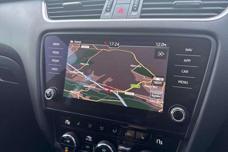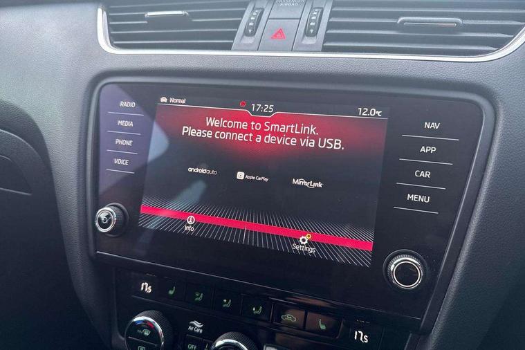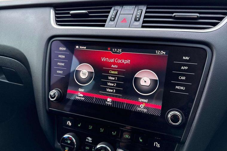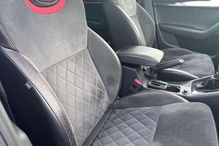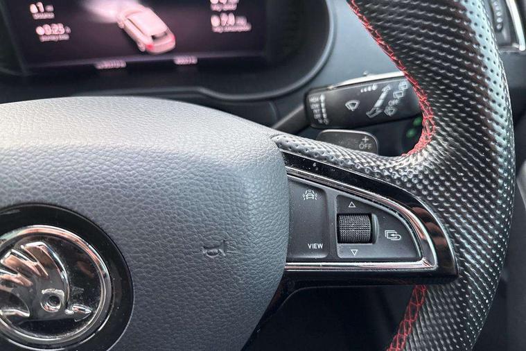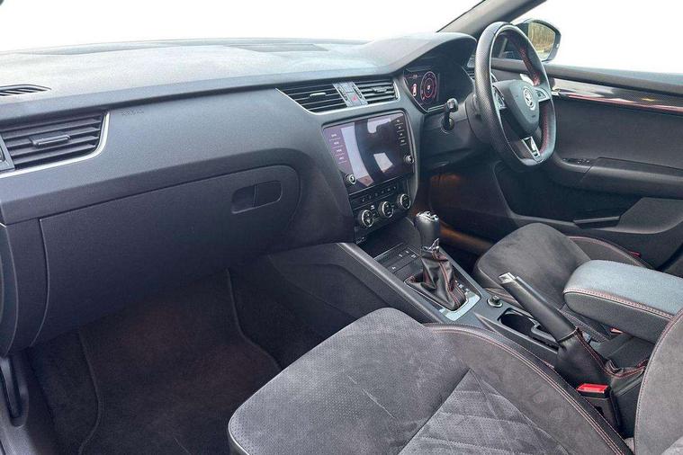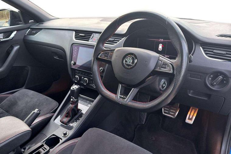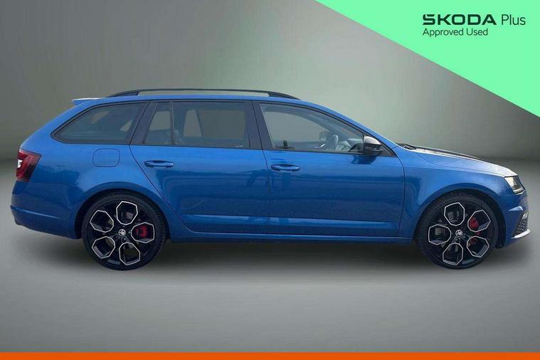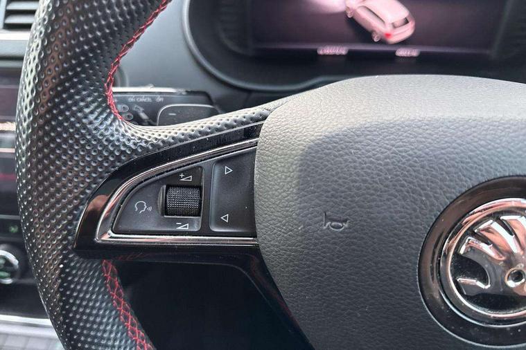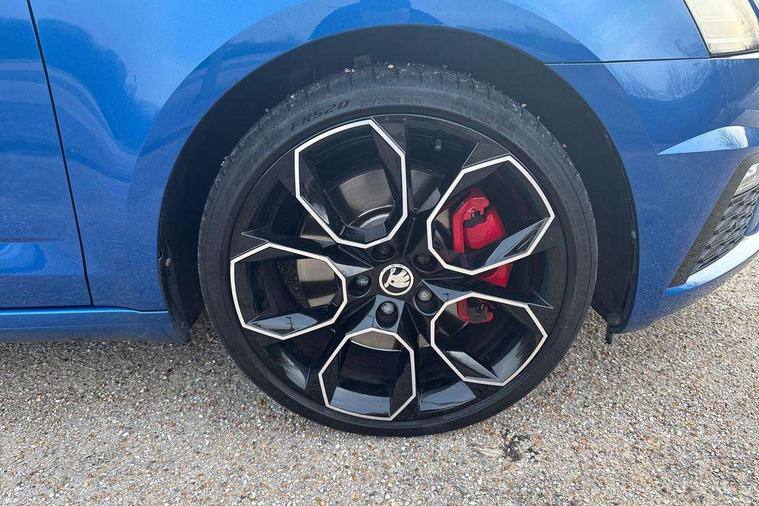Bluetooth system, Driver alert system, Driver fatigue sensor, Driver profile selection, Electro-mechanical power steering, Front assist with pedestrian protection, Outside temperature gauge, Proximity sensors, Service interval indicator, SmartLink with Apple Carplay/Android auto and MirrorLink, Stop/start system, Voice control system, Dynamic chassis control with performance mode select, Electronic limited slip differential, Sports suspension, Auxiliary input socket, Bolero Radio, DAB Digital radio, Multi device interface, Aero wiper + intermittent function, Auto dimming rear view mirror, Black roof rails, Body coloured bumpers and protective side mouldings, Door sill trim with vRS logo, Electric front and rear windows with child safety lock, Electrically adjustable heated folding and auto dimming door mirrors, Exhaust tailpipes in high gloss black, Full LED Headlights with adaptive front light system and LED daytime running lights, Gloss black door mirrors, High gloss black front grille, High gloss black front grille surround, High level third brake light, LED rear lights (high), Light assistant (coming home/tunnel light), Privacy glass, Rain and light sensors, Rear wiper, Telescopic front headlight washers, Tinted glass, vRS badging front + rear, vRS exterior design with bumper and spoiler, 3 spoke supersport multifunction leather steering wheel with vRS logo including paddle shift, Air re-circulation and pollen filter, Alcantara upholstery, Aluminium pedals, Black headlining, Chrome inner door handles, Driver + passenger vanity mirrors, Dual zone automatic air conditioning with humidity sensor and control, Electrically adjustable front seats + lumbar support + drivers door mirror with memory, Front armrest with storage box, Front seat and rear pockets, Front sport seats, Gear shift indicator, Height adjustable driver and passenger seat with lumbar support, Height adjustable front and rear head restraints, Height/reach adjust steering wheel, Illuminated air conditioned glovebox, Illuminated luggage compartment, Interior courtesy light operated by door switches, Interior door handle lighting in front and rear, Lashing eyelets in boot, Rear seat backrest release, Safety vest holder under passenger seat, Split folding rear seat backrests, Sunglasses storage, Textile floor mat set, Two isofix child seat fitting in rear, Umbrella under front passenger seat, LED Interior lighting package - Octavia, 3 rear 3 point seatbelts + pretensioners, Automatic post collision braking, Driver and passenger front and side airbags, Drivers knee airbag, Energy recovery system, ESC including ABS, EBV, MSR, ASR, EDS, HBA, DSR, ESBS, TSA, MKB, XDS and Prefill brake function, Fuel supply cut off, Head and curtain airbags, Height adjustable front seatbelts + pretensioners, Hill hold control, Passenger airbag deactivate switch, Red brake calipers, Seatbelt warning lamp, Tyre pressure monitor, Alarm, Electronic engine immobiliser, Keyless entry and keyless start, Remote central locking, 19" Xtreme black alloy wheels with anti theft wheel bolts, Low rolling resistance tyres,