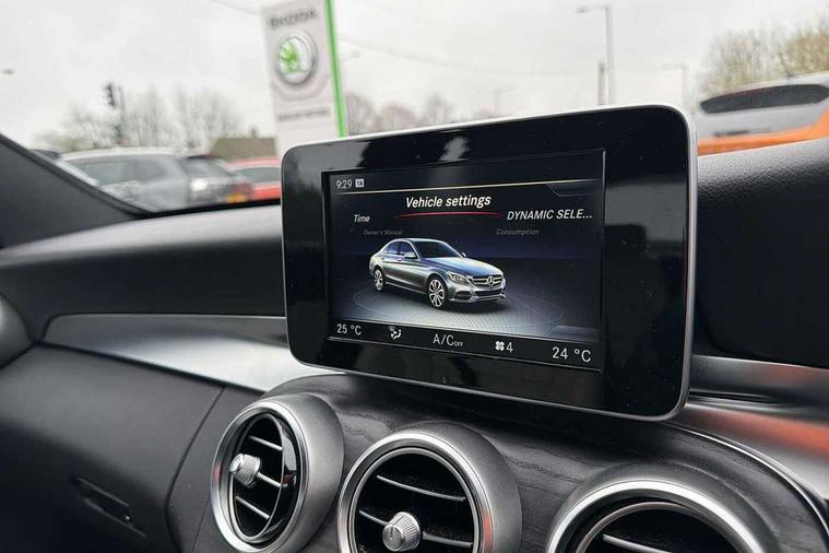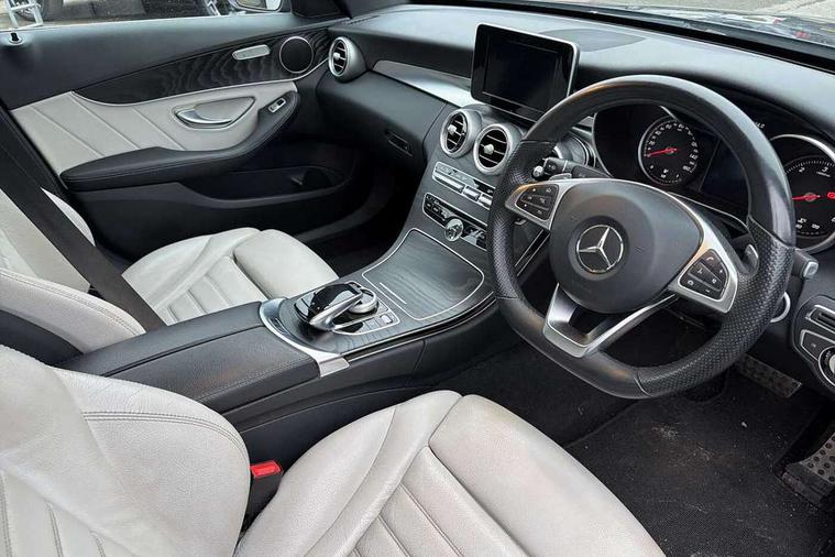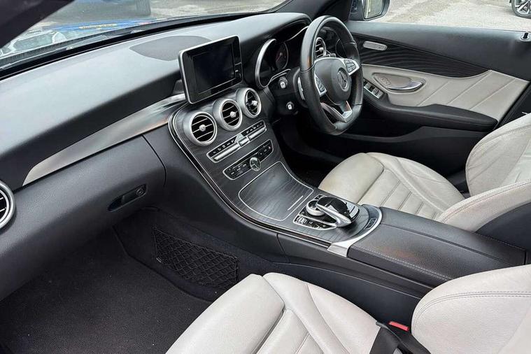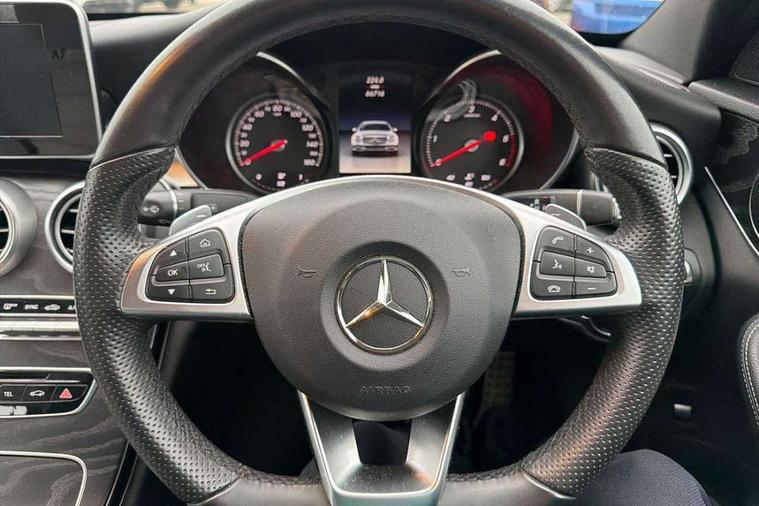 Active park assist with parktronic system, Analogue clock, Attention assist, Bluetooth interface for hands free telephone, Collision prevention assist, DYNAMIC SELECT with a choice of driving modes (ECO, Comfort, Sport, Sport+ and Individual), Garmin Map Pilot navigation system with SD card, touchpad and voice control, Multi function trip computer, Outside temperature gauge, Remote boot release, Service indicator (ASSYST PLUS), Speed sensitive steering, Diesel particulate filter, DAB Digital radio, Frontbass loudspeakers, Mercedes Audio 20 radio/single CD + telephone keypad, USB connection, Adaptive brake lights, AMG body styling, Body coloured bumpers, Electric windows one touch open/close, Electrically adjustable and heated door mirrors, Green tinted glass, Heated windscreen washers, LED daytime running lights, LED tail lights, Radiator grille with integral star and 2 louvres in matt iridium silver with chrome trim, Rain sensor windscreen wipers, Twin exhaust pipes, 12V power socket in centre console, 2 cupholders in front centre console, 2 way rear head restraints, 3 spoke AMG steering wheel in Nappa leather, 4 way adjustable front head restraints, Aluminium door trim, AMG floormats, AMG sports seats, Auto Mercedes-Benz child seat recognition sensor, Dual zone automatic climate control, Electric front seat height adjustment, Front centre armrest with storage compartment, Gearshift paddles, Heated front seats, Height/reach adjustable steering column, Illuminated glovebox, Multifunction steering wheel, Rear top tether child seat ISOFIX attachment, Sports pedals with stainless steel surfaces and rubber studs, Sunvisors with illuminated vanity mirrors, Lighting pack - C class, Mirror pack - C Class, Seat comfort pack - C Class, Stowage space pack - C Class, 3 rear 3 point seatbelts, ABS with Brake Assist, Active bonnet, Adaptive brake system, Child proof door locks, Drivers knee airbag, Dual stage driver/passenger airbags, Electronic parking brake, ESP with ASR, Front passenger seat occupancy sensor, Front side airbags, Hill start assist, Pre-Safe anticipatory safety system, Tyre pressure monitoring system, Warning triangle and first aid kit, Window airbags, Alarm system/interior protection/immobiliser, Chrome surround in electric key, Remote central locking,