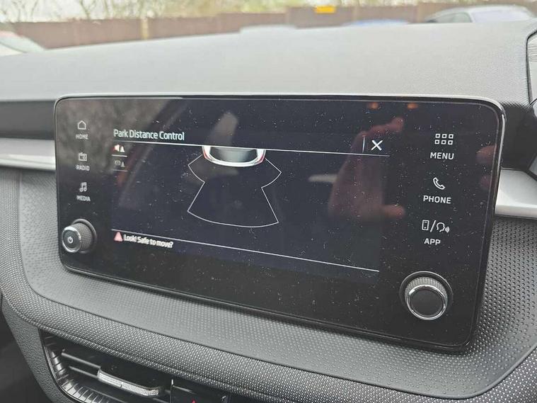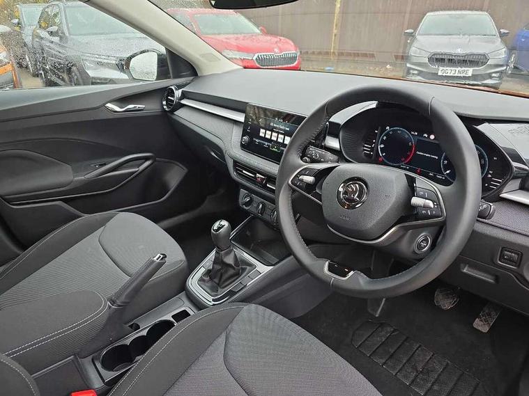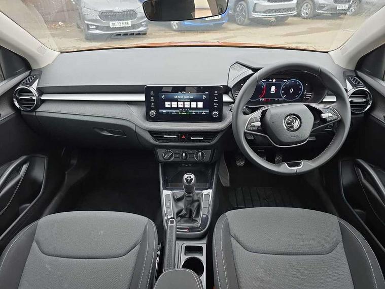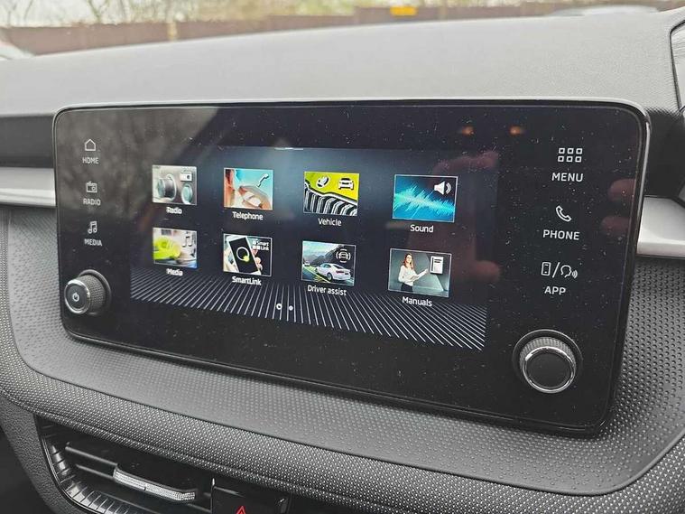 Advanced driver attention and drowsiness monitor, Bluetooth connection, Electromechanical power steering, Exterior temperature gauge, Service interval indicator, Traffic sign recognition, Virtual cockpit with 10.25" colour display, Wireless SmartLink for Apple CarPlay and Android Auto, 6 Speakers (4 in front and 2 in rear), Auxiliary socket for external MP3 player, DAB digital radio reception, Body coloured bumpers, Dimming rear view mirror with black frame, Door mirror integrated indicators, Front and rear electric windows, Front window wiper intermittent control, Headlight range control - Automatic, Ice scraper in fuel cap, LED daytime running lights with coming and leaving home feature, LED rear lights, Privacy glass, Rear LED fog light, Rear side wing doors, Rear window wiper with washing nozzles, Roof mounted spoiler, SKODA tailgate lettering in chrome, Third brake light, 2 reading lights in front and 2 reading lights in rear, 3 rear headrests, Backrest split and folding, Central console with removable cup holder and storage box, Chrome handbrake release button, Fabric upholstery, Front centre armrest, Gearshift knob/handle in leather, Grain satin black interior door handles, Hand brake lever handle in leather, Height adjustable front headrests, Height adjustable front seats, Height adjustable steering wheel, ISOFIX and TopTether anchorage points to the outer rear seats, ISOFIX and TopTether on the front passenger seat, Luggage compartment lighting, Manually adjustable lumbar support in front seats, Pollen filter, Rear seat bench unsplit, Single front passenger seat, Storm grey headlining, Sun visors with mirror and airbag label on passenger side, Textile floor mats, Ticket holder, Umbrella in drivers door, 3-point height adjustable front seats belts with pretensioner and force limiter, Automatic warning lights in case of crash, Driver and passengers airbag with switch off function, e-Call+, ESC including ABS, MSR, ASR, EDS, HBA and XDS, Front and rear seat belt warning, FRONT ASSIST (AEB City and AEB Inter Urban), Front side airbags, Head airbags, One tone horn, Pedestrian protection, Three rear 3-points safety seat belts with pretensioner and force limiter including stop function for outer rear seat belts, Tyre pressure monitoring system, Anti-theft alarm system including immobiliser, interior monitoring, backup horn, and towing protection, Central locking with radio remote control, interior controls, SAFE function and 2 foldable keys, Colour Edition air vents, Grain satin black central console cover, Metallic grey upper decorative trim, Satin black door and side trim panel in front, Textile Kota grey lower decorative inserts, Anti-theft wheel bolts protection, Super-low rolling resistance tyres,