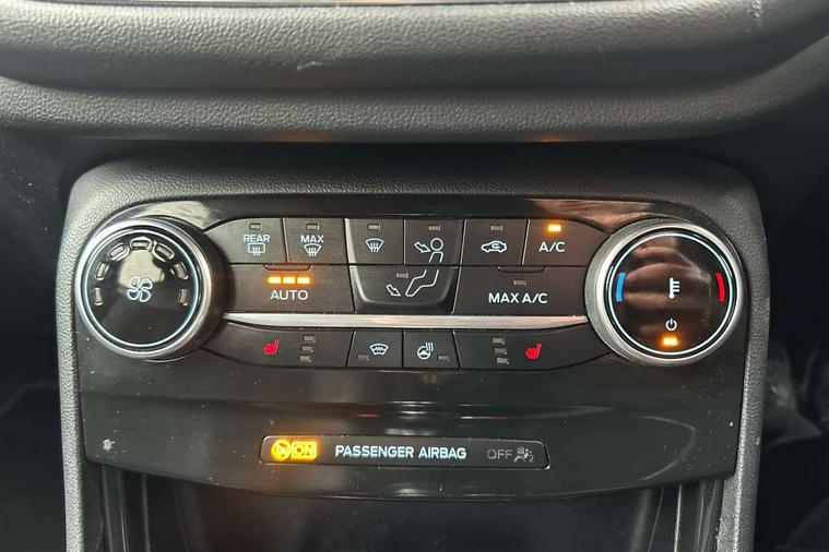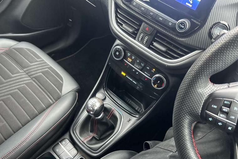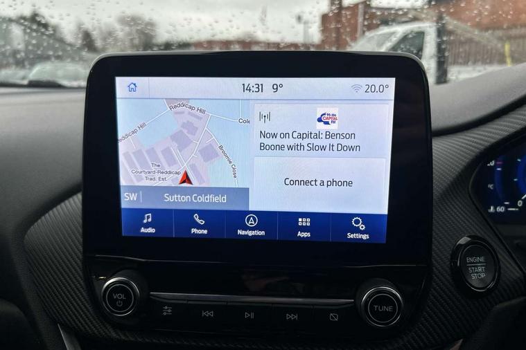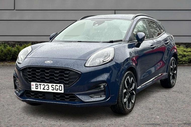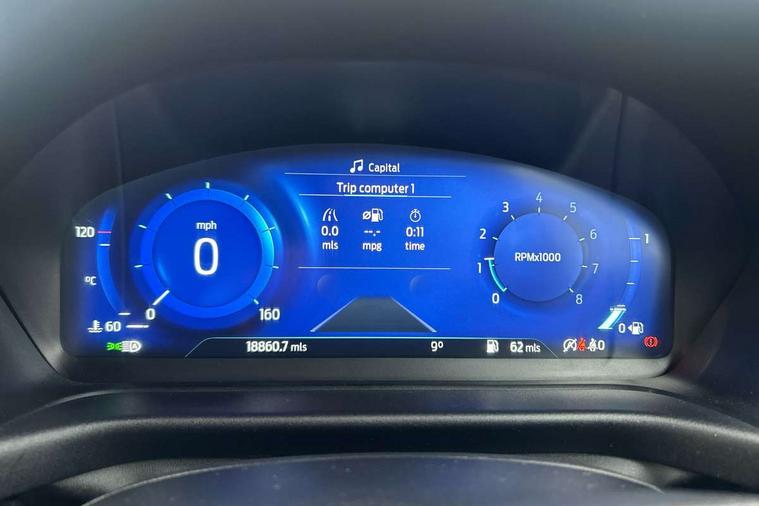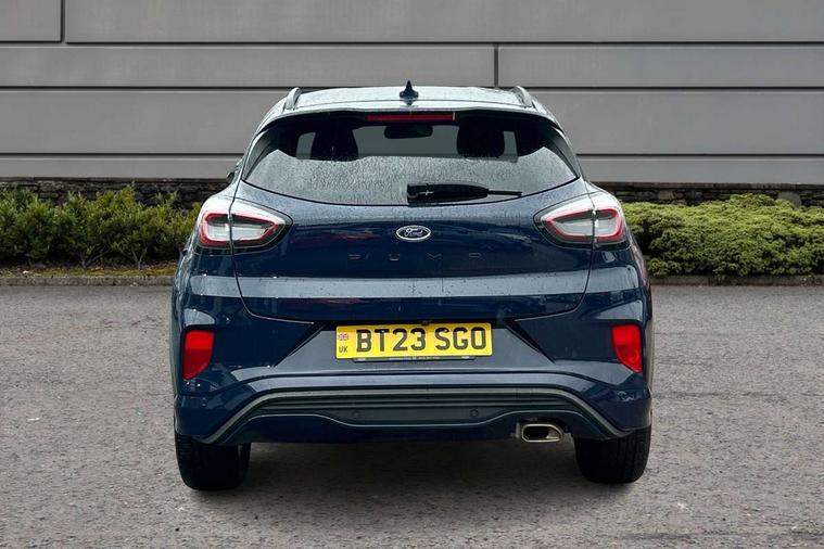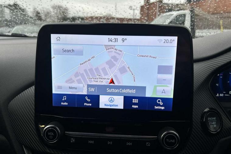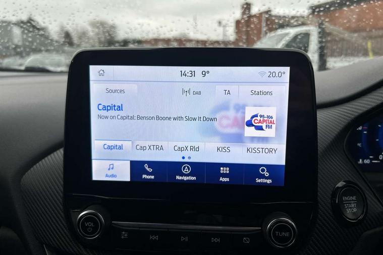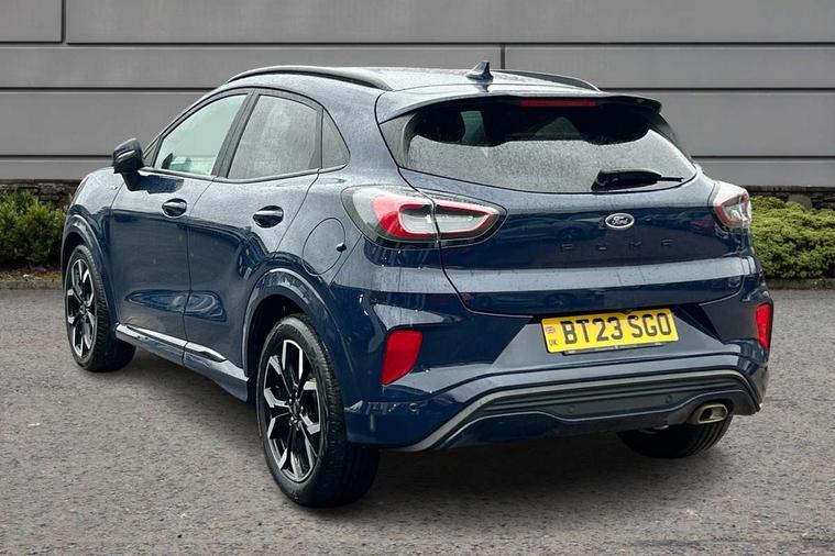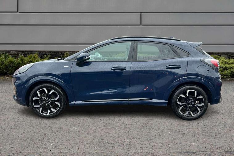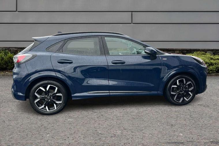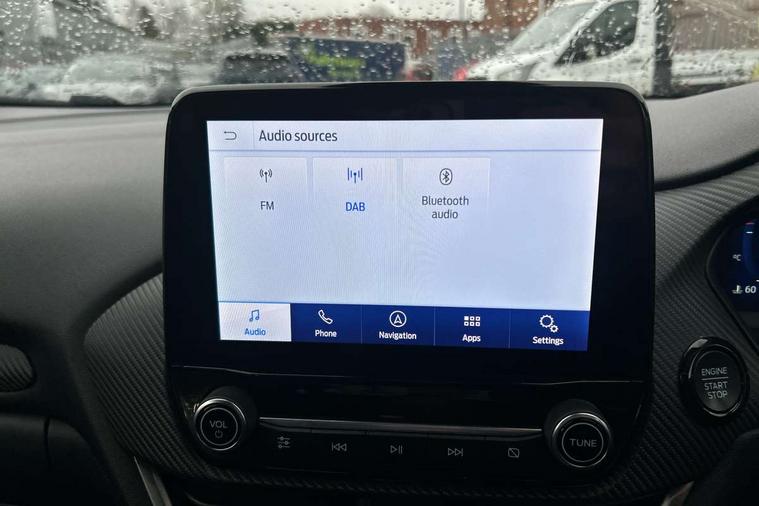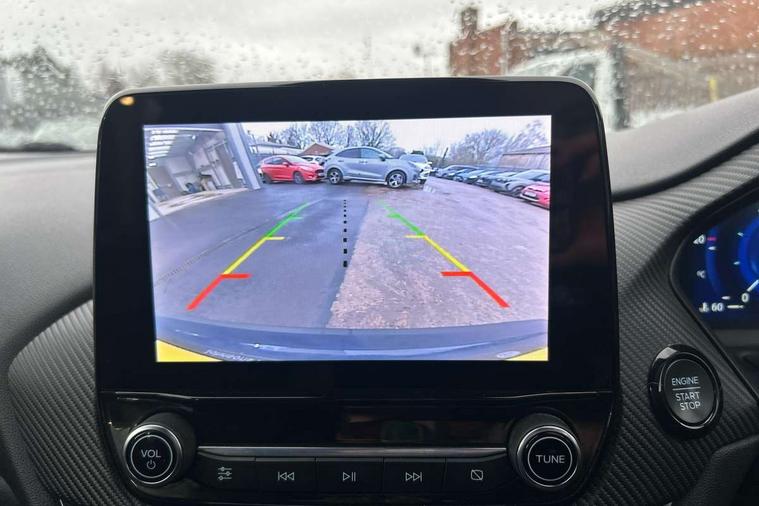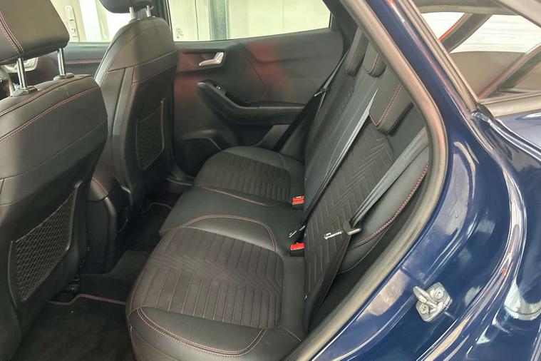Driver impairment monitor, Emergency call service, Ford easy fuel, Full digital 12.3" instrument cluster, Lane keeping aid with lane departure warning, Power assist steering, Power start button, Rear parking sensor, Selectable drive modes(Normal, sport, Eco, trail, slippery), Speed sign recognition, Sport suspension, Automatic headlights with auto high beam, Automatic rain sensing wipers, Front fog lamps, LED daytime running lights, LED rear lamps, Power foldable heated door mirrors with puddle lamps, Privacy glass to side rear windows and tailgate glass, Quickclear heated windscreen, Rear side wing doors, Rear wiper, ST-Line body styling kit with unique grille and large body colour rear spoiler, Third brake light, 3 seat bench in 2nd row, Centre console with armrest and stowage, Ford megabox extended bootspace, Front and rear head restraints, Front floor mats, Manual 4 way driver seat adjust with lumbar adjustment, Manual 4 way passenger seat with lumbar seat adjustment, Sensico partial premium upholstery, Single front passenger seat, ST-Line flat bottomed sensico leather steering wheel with leather handbrake and aluminium gear knob, Wireless charging pad with electronic air temperature control (EATC), B&O Premium Audio system + Ford SYNC 3 navigation pack - Puma, 3 rear seatbelts, Child safety lock, Electronic stability control (ESC) and hill start assist, Pedestrian/cyclist detection & post-collision braking, Pre collision assist system, Tyre pressure monitoring system (TPMS), Thatcham alarm, Carbon look interior deco spears,