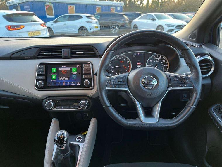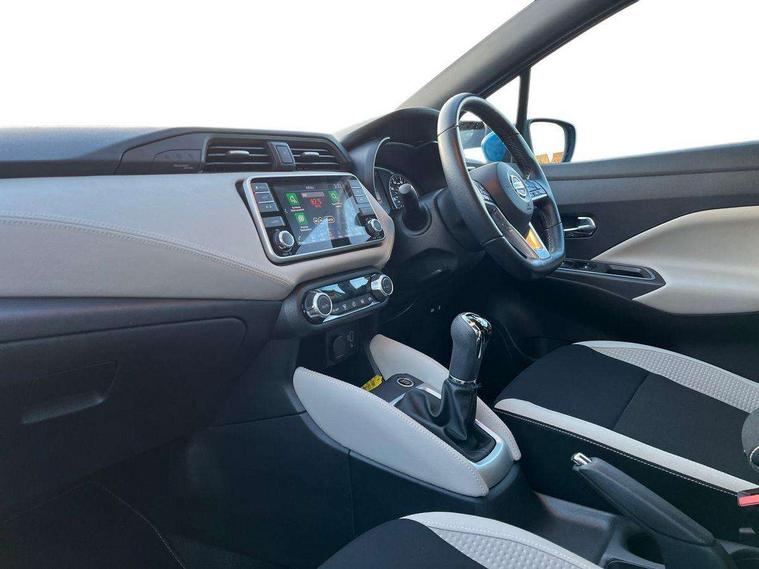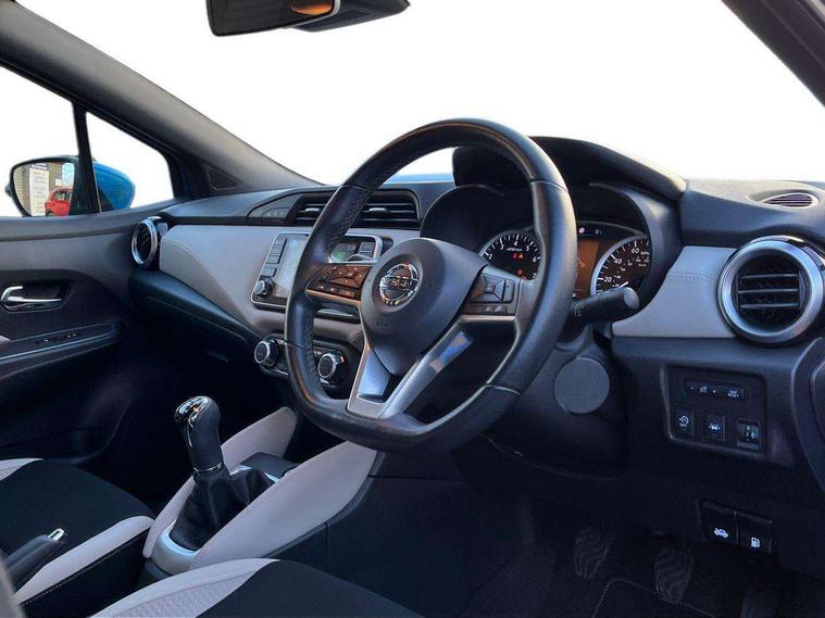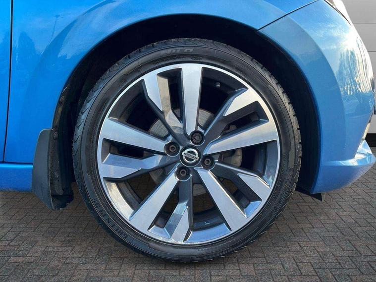 360 degree around view monitor, Adjustable speed limiter, Bluetooth system, Cruise control, Lane departure prevention, Lane departure warning system, Nissan Connect touchscreen navigation and Entertainment system, Outside temperature gauge, Power assist steering, Rear parking sensors, Rear view camera, Smartphone integration with Apple CarPlay and Android auto, Stop/start system, Traffic sign recognition, Trip computer, Audio system with MP3, BOSE sound system with 6 speakers, DAB Digital radio, USB/iPod connection, 4 pocket halogen headlights with signature finisher, Antenna, Auto dimming rear view mirror, Automatic activation of hazard warning lights, Automatic headlights, Body colour front door handles, Body coloured bumpers, Body coloured door mirrors, Concealed rear door handles, Electric folding door mirrors, Front and rear electric windows, Front fog lights, Heated door mirrors, High beam assist, High mounted stop lamp, Jacknife key type x1, LED daytime running lights, LED Headlights, Rain sensor windscreen wipers, Rear privacy glass, Rear roof spoiler, Rear wiper with reverse link, 12V power point front, 2 height adjustable rear headrests, 3 cupholders, 60/40 split folding rear seat, Automatic air conditioning, Boot compartment cover, Boot light, Chrome interior door handles, Driver's seat manual height adjust, Driver/passenger sunvisors and vanity mirrors, Front and rear door pockets with bottle holders, Front console storage box, Gear shift indicator, Height adjustable front headrests with satin sliver decoration, Illuminated electric window switch, Isofix front passenger and rear seat preparation, Leather wrapped gear shift knob, Leather wrapped parking break, Leather wrapped steering wheel, LED ambient lighting, Map reading lamp, Parcel shelf, Passenger seat back pocket, Reclining front seats, Synthetic leather front door pads, Synthetic leather instrumental panel inserts, ABS+EBD+Brake assist, Crash sensor, Driver/Front Passenger airbags, Front and rear curtain airbags, Front side airbags, Height adjustable front seatbelts with pre-tensioners and load limiters, Hill start assist, Intelligent emergency braking with pedestrian recognition, Manual passenger airbag deactivation function, Rear seatbelts with pre-tensioners and load limiters, Seatbelt warning, Three 3 point rear seatbelts, Tyre pressure monitoring system, Warning triangle and first aid kit, Anti-theft immobiliser, Intelligent key with push button ignition, Remote central locking, 17" Diamond cut alloy wheels, Tyre repair kit,