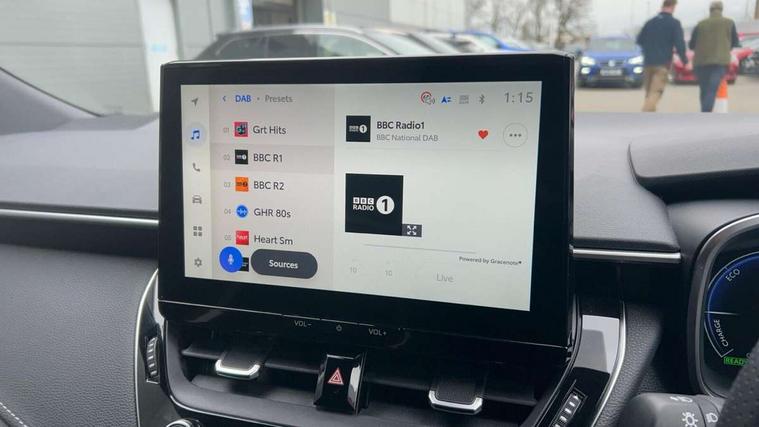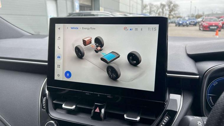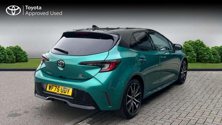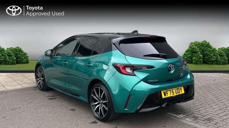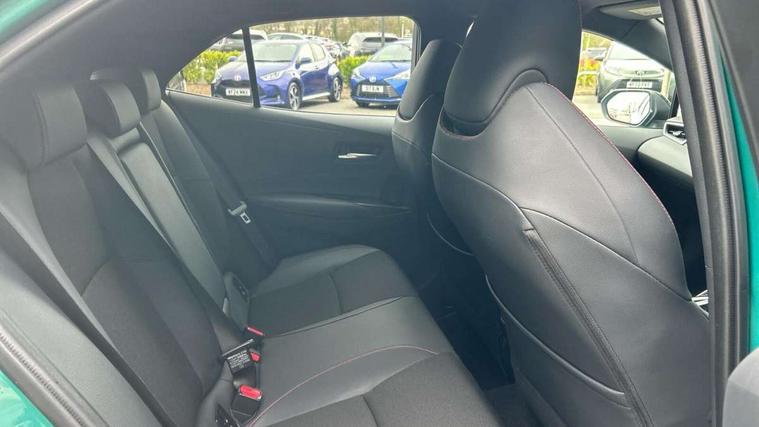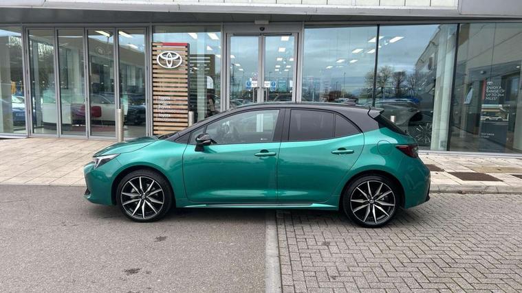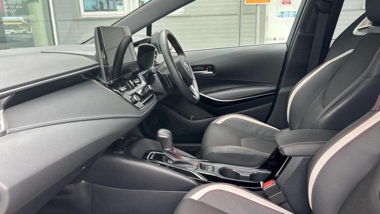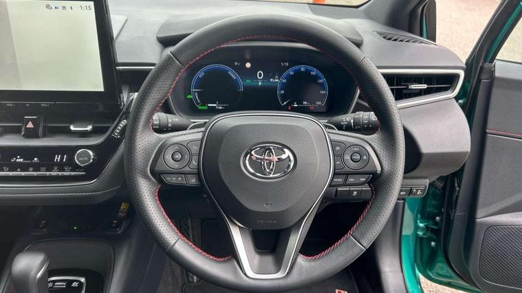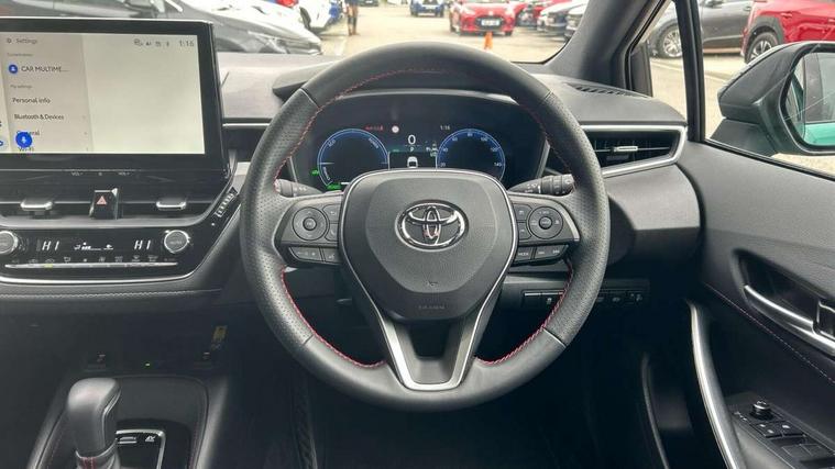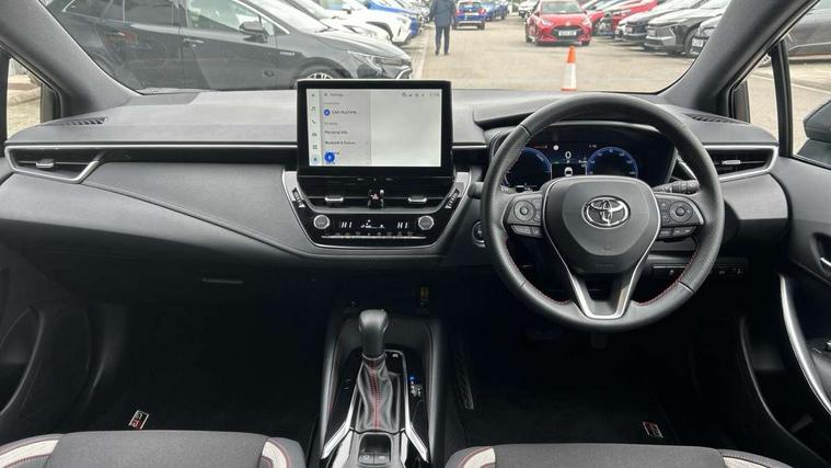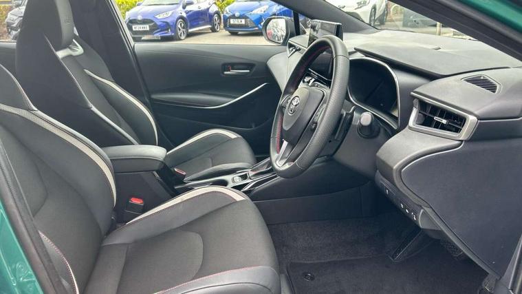 10.5" Multimedia display screen, Bluetooth telephone connectivity, Connected car functionality upgrade, tracker, remote status and e-care, Drive mode select (Eco, Normal), E-call, Electrically assisted power steering, EV drive indicator, Front and rear parking sensors, Full Digital 12.3" TFT Digital Combimeter, Intelligent clearance sonar, Key reminder warning, Lane Departure Alert (LDA) switch on steering wheel, Memory on adjustable speed limiter, MyT connected services, Proactive driving assist (PDA), Reversing camera, Smart entry and push button start with GR Logo, Smartphone integration with Apple CarPlay and wired android auto, Tailgate, Toyota remote services, Toyota smart connect navigation, Wireless charger, Gasoline particulate filter, Vehicle Stability Control (VSC), 6 speakers, AM/FM radio, DAB Digital radio, Front USB-C in centre console, Front USB-C in dashboard, Smart voice assist/ Voice recognition, USB and Aux in connectors + 12V front outlet, Anti-jam protection on power windows, Auto up and down function on all power windows, Automatic folding mirrors, Automatic headlights with high beam assist, Black centre and side air vents, Black toyota logo in front, Body coloured bumpers, Body coloured door mirrors, Body coloured outside door handles, Dark chrome lower grille, Electrochromatic mirror, Follow me home headlights, GR Sport dark chrome front mesh grille and black rear grille, GR Sport exclusive under guard, GR sport scuff plates, LED daytime running lights, LED dual beam projector headlights, LED front fog lights, LED High mounted stop light, LED rear combi lights with LED lightguide, Manual headlight levelling system, New grille pattern, Noise reduction layer on windscreen, Piano black diffuser, Power adjustable heated door mirrors, Power front windows, Power rear windows, Privacy glass with UV filter, Rain sensing wipers, Rear side wing doors, Rear window defogger, Rear window wiper, Reverse tilting door mirrors, Rocker and door lower moulding, Roof spoiler, Satin chrome insert on front air vents, Satin chrome insert on front door assist grips, Satin silver front spoiler, Shark fin antenna, Tailgate release with push button, Time adjustment on intermittent wiper, Turning signal integrated indicators in door mirrors, Unique lower skirt, Unique side rocker with black insert, UV-filter on driver and passenger windows, 2 Shopping bag hooks in luggage compartment, 3 rear headrests, 3 seat bench in 2nd row, 3 spoke steering wheel with satin insert and red stitching, 4 tie down hooks in luggage compartment, 60/40 split folding rear seat, Adaptive cruise control (ACC) switch on steering wheel, Adjustable speed limiter switch on steering wheel, Audio, multimedia and telephone switches on steering wheel, Black armrest on centre console box, Black gear shift console, Boot light, Boot underfloor storage, Centre room light, Driver and front passenger personal light, Driver and passenger assist grip, Driver and passenger seatback pockets, Driver and passenger sun visor with mirror and light, Dual zone automatic air conditioning with ECO mode switch, Electric lumbar support for passenger, Fabric/synthetic leather upholstery, Front and rear cup and bottle holders, Front door pockets, Front head restraints, Front passenger seat, Front sliding synthetic leather armrest, Gear knob, GR Sports seats with partial leather bolsters, Heated front seats, Illuminated entry system in room lamp, ISOFIX seat fixing (2 fixings on rear outer seats), Manual height adjustable for driver and front passenger seat, Manually tilt with sliding driver and front passenger seat, Nanoe-X air purifier, Paddle shifts, Parcel shelf, Pollen filter, Power adjustable lumbar support on driver seat, Power window switches with satin chrome inserts, Rear armrest with 2 cupholders, Rear passenger coat hooks (2), Red stitching on gear shift, Remote air conditioning, Satin chrome inside door handles, Satin chrome surround on speedometer, Sliding armrest on centre console box, Slow opening glovebox with lights, Textile floor mats, Tilt/telescopic steering column, Voice recognition switch on steering wheel, Whiplash Injury Lessening (WIL) feature (active headrest) for seats, White ambient lighting on open tray and front cup holder, Toyota safety sense 3 pack - Corolla, 3x3 point rear seatbelts, Adjustable driver and front passenger seat belt extender to top anchor point, Anti lock braking system + Electronic brake force distribution, Brake assist function, Child locks on rear doors, Downhill Assist Control (DAC), Electronic parking brake, Emergency brake light signal (EBS), Front passenger airbag on/off switch, Front seatbelt reminder, HAC - Hill start assist control, Rear seat belt reminder, Seatbelt pretensioners and force limiters, Supplemental restraint system (SRS) 7 airbags - dual driver, dual side curtain, side impact and driver knee airbags, Traction control, Tyre pressure warning system, Acoustic vehicle alert system (AVAS), Alarm with motion sensor and immobilizer, Power passenger window lock, Remote central locking + deadlocks, GR Sport interior and exterior styling, Satin chrome dash trim, Soft touch texture on upper dashboard, Stitching on lower dashboard, 18" 10 spoke black machined face alloy wheels, Tyre repair kit, Unique wheel finish with red wheel cap,