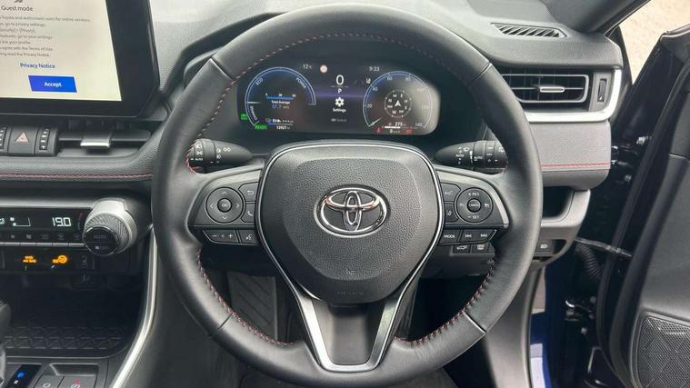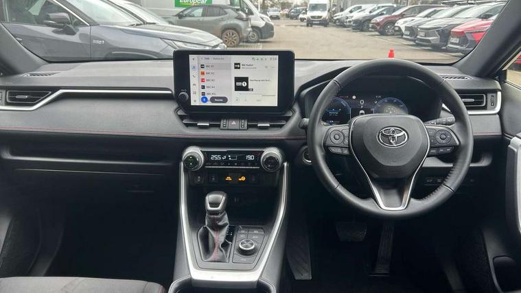 12.3" Digital Combimeter, Analog tachometer, Android Auto, Bluetooth system, Cyclist Detection, Digital speedometer, Drive mode selector, Driver attention alert system, eCall emergency call system, ECO-driving indicator, Electric power steering, EV audible alert, Front parking sensors, Full range intelligent adaptive cruise control, Hybrid system indicator, Lane departure alert with steering control, Lane trace assist, Lights on warning, Memory on adjustable speed limiter, MirrorLink, My T Connected services, Night Time Pedestrian Detection, Power boot opening and closing, Rear parking camera, Rear parking sensors, Remote boot door release in cabin, Remote boot door release in key, Road sign assist - RSA, Smart entry and push button start, Smartphone hazard lights notification, Tailgate, Toyota smart connect navigation, Traffic sign recognition, Trip computer, Voice control system, 6.6 kw fast charger, 7.5m cable with home charging plug, Vehicle Stability Control (VSC), 10.5" Toyota smart connect multimedia with wireless smartphone integration incl apple car play, 6 speakers, Auxiliary socket for external MP3 player, Digital audio broadcast (DAB)+, Gloss black surround on multimedia display, Multimedia Road Events, Rear USB connection, Toyota touch media system, USB in front armrest, Adaptive automatic high beam, Anti-jam protection on power windows, Auto dimming interior rear view mirror, Auto up and down function on power windows, Automatic headlights, Automatic wipers, Automatically retractable door mirrors, Black door moulding, Black front bumper, Black painted upper front grille, Black rear bumper, Black rear under-run, Black roof rails, Body colour door handles, Body colour rear roof spoiler, Body coloured door mirrors, Body coloured Shark-fin antenna, Chrome window surround, Dual exhaust pipes, Electric adjustable door mirrors, Electric heated door mirrors, Emergency brake-light signal (EBS), Follow me home headlights, Front wipers with variable intermittent facility, Honeycomb upper front grille, LED daytime running lights, LED dual beam projector headlights, LED front fog lights, LED front light guide, LED High mounted stop lamp, LED Indicators, LED rear brake lights, LED rear combination lights, PHEV badge in rear, Power front windows, Power rear windows, Privacy glass, Rear side wing doors, Rear windscreen defogger, Rear wiper, Silver front under-run, Smartphone remote power window operation, Trailer sway control, Turning signal integrated indicators in door mirrors, 1.5L front and rear bottle holder, 12 volt front socket, 12V power outlet - Boot, 220v power socket in boot, 2x Rear coat hooks, 3 rear headrests, 3 seat bench in 2nd row, 60/40 split fold rear seat back, Adjustable speed limiter switch on steering wheel, Array microphone, Black roof lining, Clean air filter, Cloth upholstery, Driver and front passenger personal light, Driver and front passenger Whiplash Injury Lessening seats, Driver and passenger seatback pockets, Driver and passenger sunvisors with illuminated vanity mirrors, Dual sided deck board in boot, Dynamic sports seats, Energy saving heat pump, Folding rear centre armrest, Front and rear cup holders, Front centre armrest, Front headrests, Front leather armrest, Front/rear roof mounted assist grips, Gloss black surround on centre console, Heated driver and front passenger seats, Heated rear seats, Illuminated entry system, Isofix child seat preparation, Leather gear shift with chrome surround, LED boot light, LED centre room light, Lockable glovebox, Manual telescopic and tilt 3-spoke nappa leather steering wheel, Manually reclining and sliding front passenger seat, Multimedia switches on steering wheel, Pollen filter, Power height-adjustable sliding reclining and lumbar support for driver seat, Rear console box, Rear door armrests, Rear passenger air vents, Rear view display in display audio screen with dynamic guide lines, Reclining rear seats, Remote dual zone automatic air conditioning, Retractable tonneau cover, Satin chrome interior door handles, Single front passenger seat, Sunglasses holder, Telephone and voice recognition switches on steering wheel, White ambient lighting in footwell, White ambient lighting on front cup holders, White ambient lighting on open tray, 3x3 point rear seatbelts, ABS/EBD, Acoustic vehicle alerting system, Adjustable front driver and passenger seat belt extender, Brake assist function, Brake hold function, Child proof door locks, Collision mitigation braking system, Driver/Front Passenger airbags, Driver/front passenger side airbags, Drivers knee airbag, Electronic parking brake, Electronic Stability Programme (ESP), Front and rear curtain airbags, Front and rear seatbelt reminder, Front passenger airbag detector, Hill start assist, Passenger airbag cut-off device, Pedestrian detection, Pre collision system, Seatbelt pretensioners with load limiters, Supplemental restraint system (SRS) airbags, Toyota safety sense 2, Traction control, Tyre pressure warning, Glass-breaking alarm sensors, Immobiliser, Intrusion alarm, Light - on and Key in reminder, Motion sensor alarm, Power door locks, Remote central locking, Smartphone remote door lock, Speed sensitive auto door locking, Tilt detection sensors, Black centre air vent surround, Gloss black centre console, Open tray on passenger dashboard, Soft-touch black upper dashboard with silver insert, Soft-touch texture on lower dashboard, 18" 5 spoke grey machined face alloy wheels, Full size spare wheel,