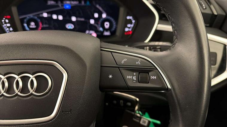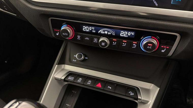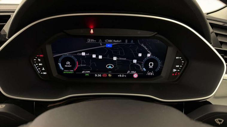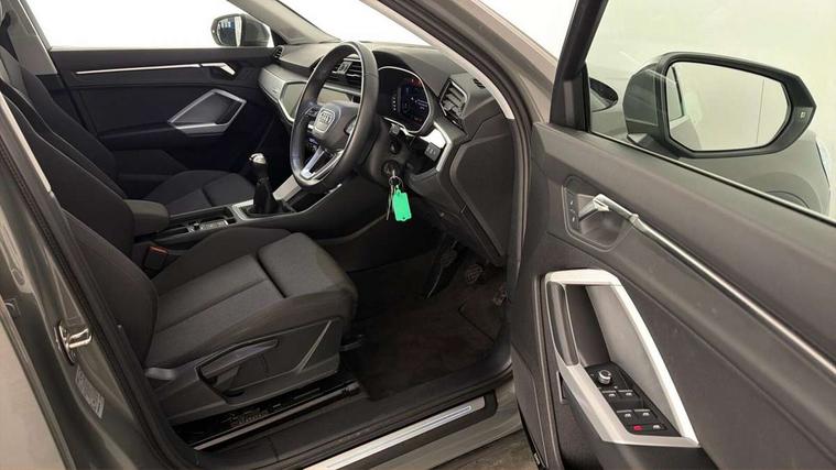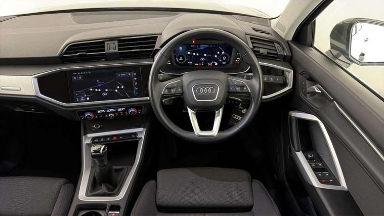 Audi drive select, Audi lane departure warning, Audi Virtual Cockpit - 10.25" display, Bluetooth interface, Camera based traffic sign recognition, Cruise control + speed limiter, Legal emergency call, MMI Navigation Plus with high resolution 10.1 inch touchscreen colour display, Power operated tailgate, Progressive steering, Rear parking sensors, Service interval indicator, Smartphone interface includes wireless Apple carplay/Android Auto, Start stop system with recuperation, Voice control system with natural language interaction, Sports suspension, 2 USB-C ports with charge and data functions, 6 passive loudspeakers, DAB digital radio module, Acoustic windscreen, Aluminium window trim, Auto dimming frameless rear view mirror, Bumpers and underbody protection in contrasting manhattan grey paint finish, Diffuser grille in grained matt black, Diffuser trim in manhattan grey metallic, Door sill trims with illuminated aluminium inlay, Electrically folding, adjustable and heated door mirrors with integrated LED side indicators and kerb view function for passenger side, Front and rear electric windows, Front fog lights, Front side air inlets in Manhattan grey metallic, Grille surround in aluminium silver matt, High gloss black finish B and C pillars, Honeycomb design radiator grille in matt titanium black, LED headlights with LED daytime running lights, LED rear lights, LED third brake light, Rain and light sensors, Rear side wing doors, Rear wiper, Variable front intermittent wipers, 12V socket in rear centre console, 3 seat bench in 2nd row, 3 spoke multi-function leather steering wheel, 40:20:40 folding with manual adjustment for 60:40 forwards/backwards position and backrest angle, Dual zone electronic climate control, Front and rear floor mats, Front and rear headrests, Front and rear roof module including reading lights, Front centre armrest, Glove compartment lighting, Height and reach adjustable steering wheel, ISOFIX child seat mounting for front passenger with airbag deactivation and outer rear seat including top tether attachment point for outer rear seats, Luggage compartment light right in white, Luggage compartment sill protection in stainless steel, Lunar silver cloth headlining, Manual front seats with height adjustment, Single front passenger seat, Non smoking pack - Q3, 3x3 point rear seatbelts, 6 airbags - Driver, front passenger, curtain and side windows, Audi pre-sense front with pedestrain and cyclist recognition, Electromechanical parking brake, Electronic stabilisation control including ABS, ASR and EDL, Front seatbelt reminder, Hill descent control, Hill hold assist, Manual child lock in rear doors, Pre sense basic, Seatbelt monitoring, Tyre pressure warning, Warning triangle and first aid kit, Anti theft alarm, Anti theft wheel bolts, Immobiliser, Remote central locking, Black dashboard, Detail dashboard around MMI touch colour display in glass look, black with surround in aluminium look, Micrometallic silver inlay,