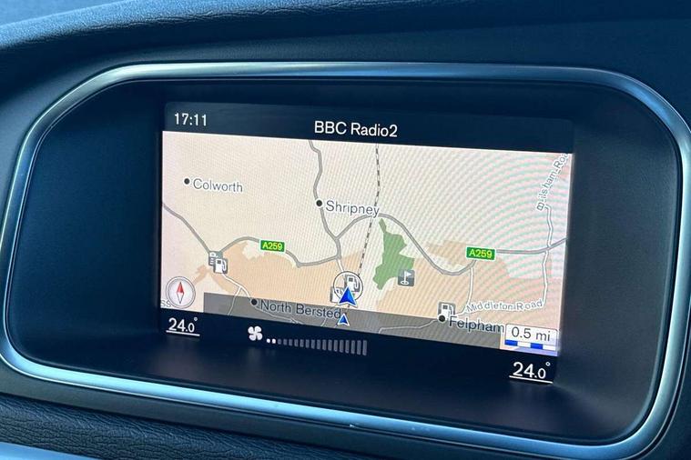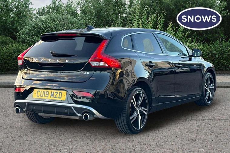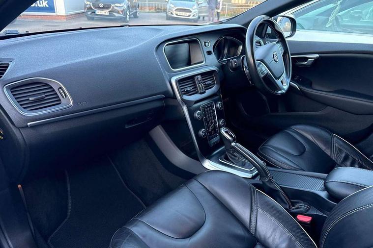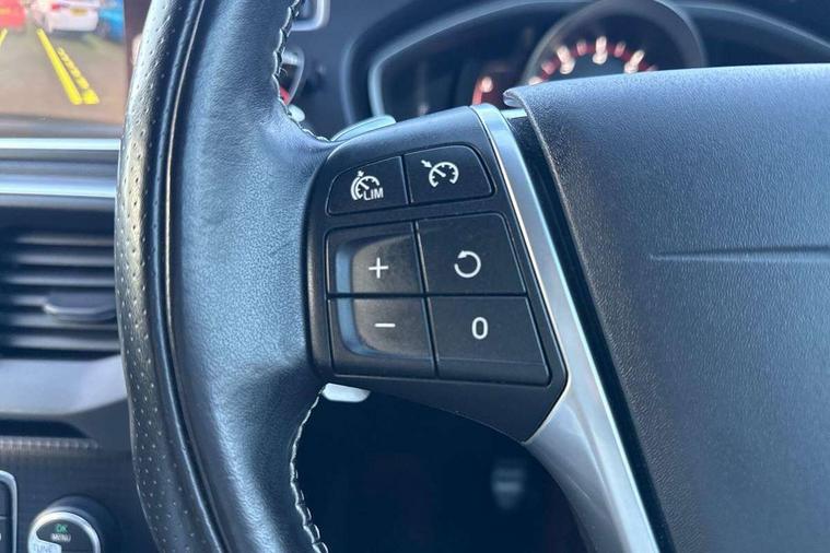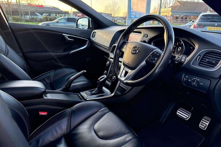 Active TFT crystal driver's instrument display, Front park assist, Information centre, Intelligent driver information system (IDIS), Rear park assist, Rear parking camera, Sensus navigation system, Service interval indicator, Speed limiter, Speed sensitive steering, Dynamic chassis, DAB Digital radio, Active bending LED headlights, Adaptive brake lights, Auto dimming rear view mirror, Automatic folding door mirrors with ground lights, Automatic headlights, Body colour bumpers, Body colour door handles, Dark tinted rear side windows, Dual exhaust pipes, Electrically adjustable and heated door mirrors, Frameless rear view mirror, Front and rear electric windows, Headlamp levelling, Headlight cleaning system, High level LED brake light, Home safe and approach lighting, LED daytime running lights, LED Headlights, Matt silver finish door mirrors, R Design front grille, R Design lower front nose, Rain sensor windscreen wipers, Rear diffuser, Rear tailgate emblem, Rear wiper, Roof spoiler, Silk metal window trim surround, Visible VIN plate, 12V socket in front + rear tunnel console, 3 spoke leather steering wheel with chrome trim and R design logo, 5 headrests, 60/40 split folding rear seat, A-pillar parking ticket holder, Adjustable front centre armrest, Charcoal headlining, Door sill tread plates, Electronic climate control (ECC), Flexible load floor and grocery bag holder, Folding front passenger seat with height/lumbar adjust, Footwell lights, Front cupholders, Front door step lamp, Front reading lights, Front sports seats, Front storage box, Gearshift paddles, Height adjustable drivers seat with lumbar support, Height/reach adjustable steering column, Illuminated driver/passenger vanity mirrors, Illuminated gear knob, Isofix attachments on rear seats, Load cover, Lockable glovebox, Pollen filter, R Design leather sports upholstery, Rear armrest with cupholder, Rear reading lights, Rear theatre lighting, Sports floor mats, Sports pedals, Steering wheel audio controls, WHIPS - Whiplash Protection System, 5 x 3 point seatbelts, ABS+EBA, City safety braking system, Drivers knee airbag, DSTC-Dynamic Stability and Traction Control, Dual stage driver's airbag, Dual stage passenger airbag, Front/rear seatbelt pre-tensioners, Hill start assist, Inflatable curtain, Manual rear child locks, Passenger airbag cut-off device, Pedestrian airbag system, Side airbags, Side curtain airbags, Side impact protection, Tyre pressure monitor, Warning triangle, Anti-theft alarm including immobiliser/volume sensor + level sensor, Deadlocking system, Key integrated remote control central locking, Locking wheel nuts, Stealth aluminium trim,