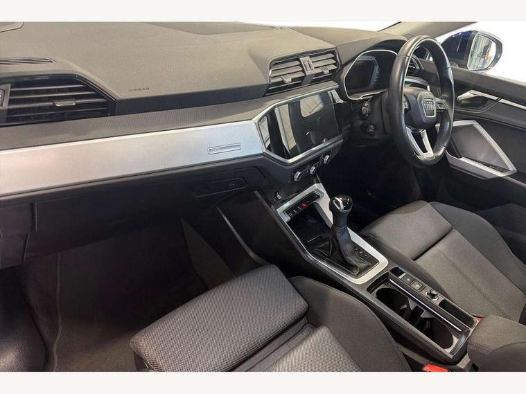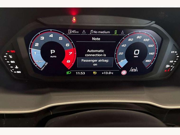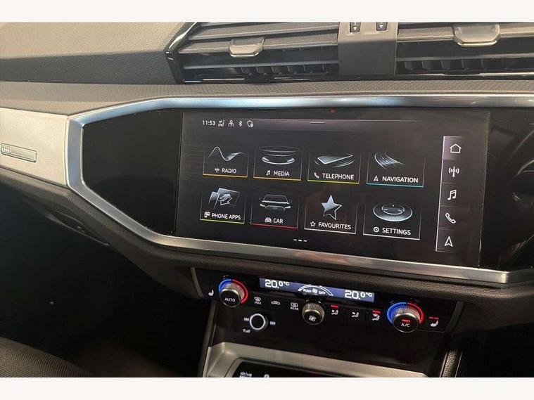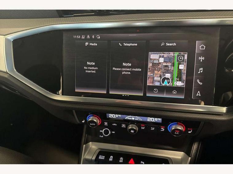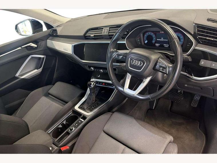 360 degree view camera, Audi connect safety and service, Audi drive select, Audi lane departure warning, Audi Virtual Cockpit - 10.25" display, Bluetooth interface, Camera based traffic sign recognition, Legal emergency call, MMI Navigation Plus with high resolution 10.1 inch touchscreen colour display, Phonebox light with wireless charging, Power operated tailgate, Progressive steering, Service interval indicator, Smartphone interface includes wireless Apple carplay/Android Auto, Start stop system with recuperation, Voice control system with natural language interaction, Sports suspension, 2 USB-C ports with charge and data functions, DAB digital radio module, SONOS premium sound system, Acoustic windscreen, Aluminium window trim, Auto dimming door mirrors, Auto dimming frameless rear view mirror, Bumpers and underbody protection in contrasting manhattan grey paint finish, Diffuser grille in grained matt black, Diffuser trim in manhattan grey metallic, Door sill trims with illuminated aluminium inlay, Electrically folding, adjustable and heated door mirrors with integrated LED side indicators and kerb view function for passenger side, Front and rear electric windows, Front fog lights, Front side air inlets in Manhattan grey metallic, Grille surround in aluminium silver matt, High gloss black finish B and C pillars, Honeycomb design radiator grille in matt anthracite black, LED third brake light, Matrix LED headlights with LED daytime running lights, Panoramic glass sunroof, Rain and light sensors, Rear side wing doors, Rear wiper, Variable front intermittent wipers, 12V socket in rear centre console, 3 seat bench in 2nd row, 3 spoke multi-function leather steering wheel, 40:20:40 folding with manual adjustment for 60:40 forwards/backwards position and backrest angle, Dual zone electronic climate control, Electric lumbar support, Electrically adjustable front seats, Front and rear floor mats, Front and rear headrests, Front centre armrest, Heated front seats, Height and reach adjustable steering wheel, ISOFIX child seat mounting for front passenger with airbag deactivation and outer rear seat including top tether attachment point for outer rear seats, Luggage compartment sill protection in stainless steel, Lunar silver cloth headlining, Single front passenger seat, Non smoking pack - Q3, 3x3 point rear seatbelts, 6 airbags - Driver, front passenger, curtain and side windows, Audi pre-sense front with pedestrain and cyclist recognition, Electrically operated child locks on rear doors, Electromechanical parking brake, Electronic stabilisation control including ABS, ASR and EDL, Front seatbelt reminder, Hill descent control, Hill hold assist, Pre sense basic, Seatbelt monitoring, Tyre pressure warning, Warning triangle and first aid kit, Advanced key, Anti theft alarm, Anti theft wheel bolts, Immobiliser, Remote central locking, Aluminium look interior elements, Detail dashboard around MMI touch colour display in glass look, black with surround in aluminium look, Micrometallic silver inlay,