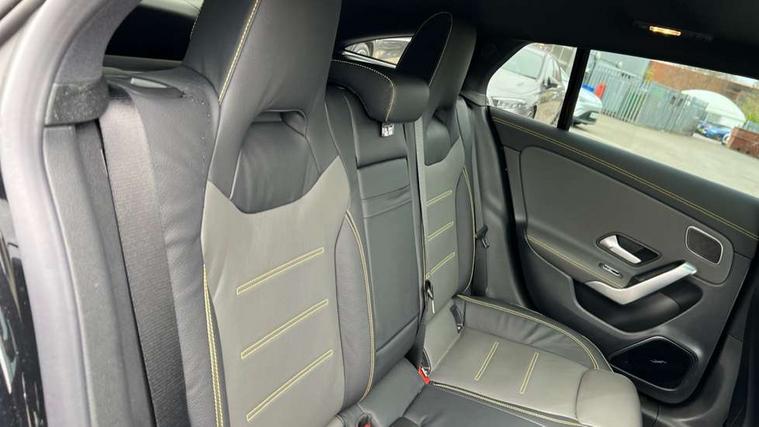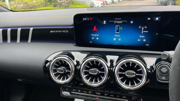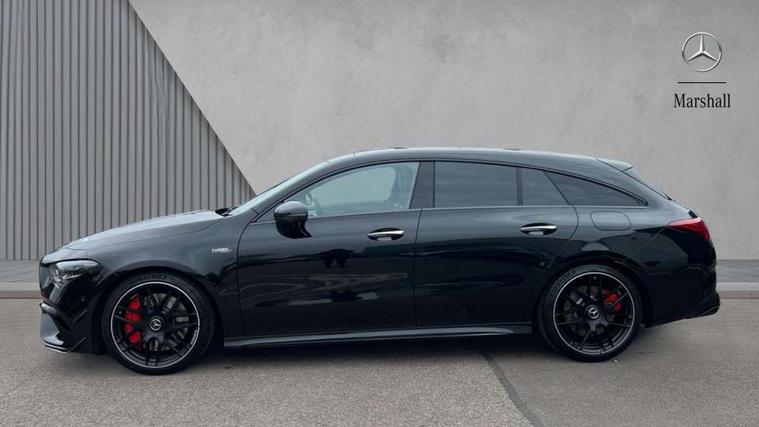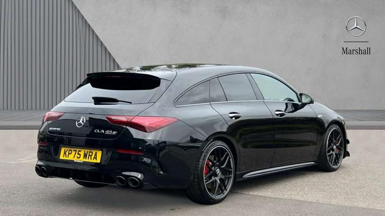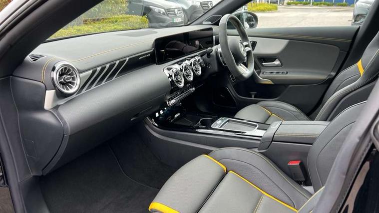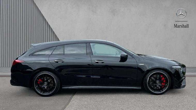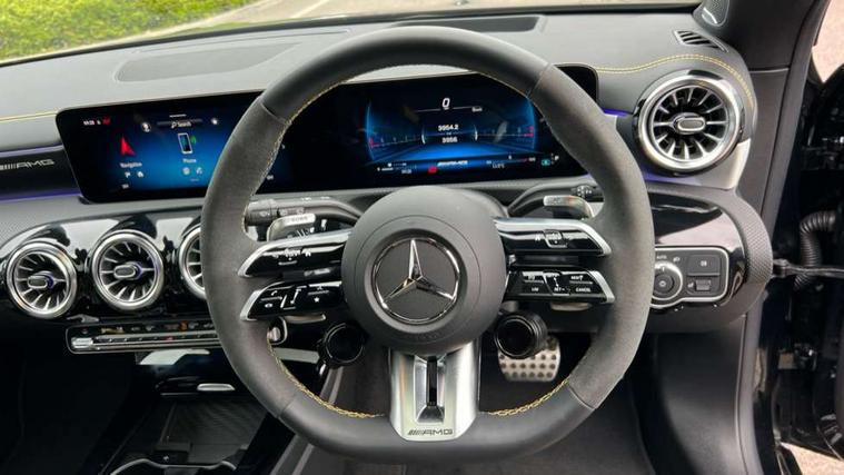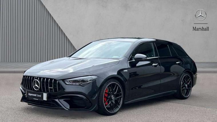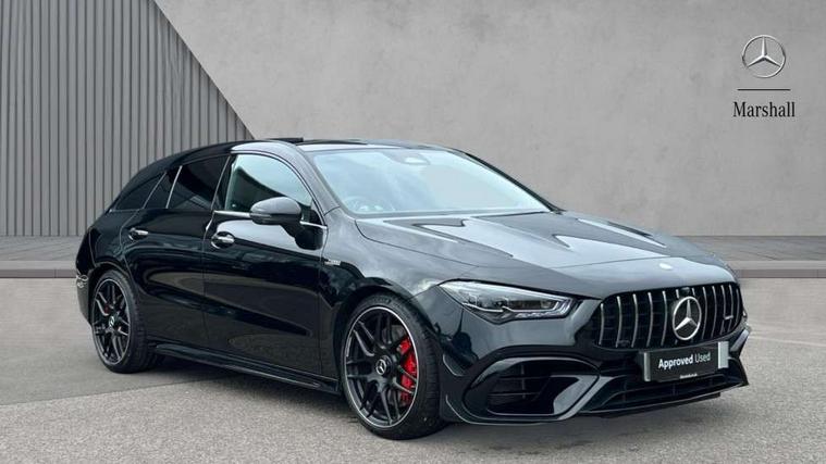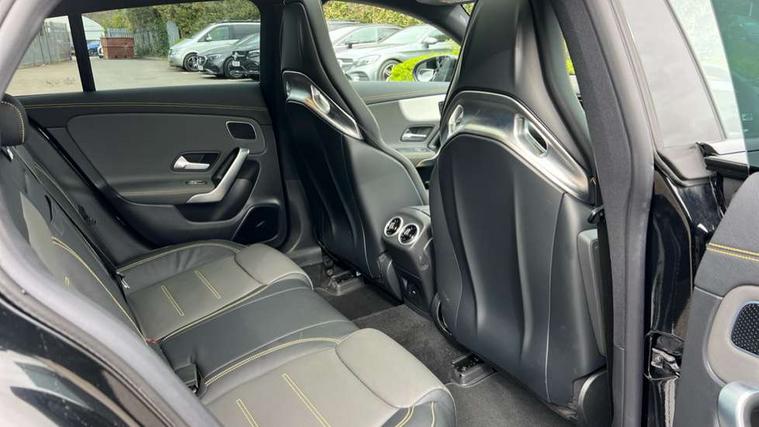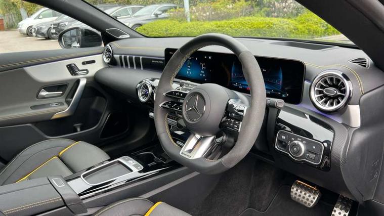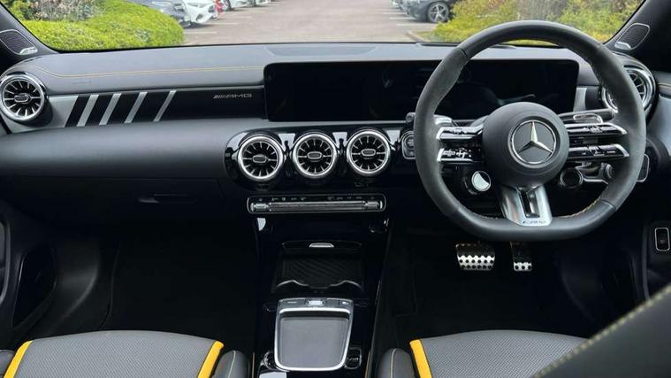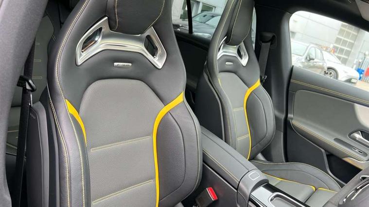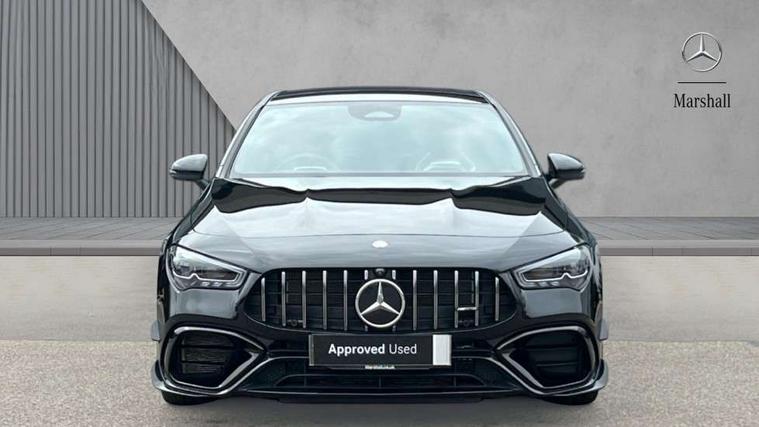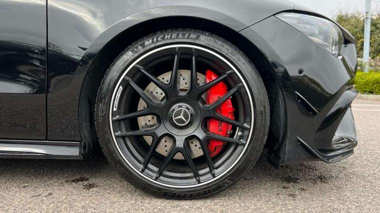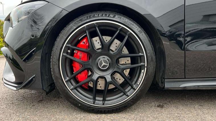 10.25 inch Instrument display with digital cockpit, 10.25 inch touchscreen central media display with AMG specific, AMG start up logo, visualisation of the AMG drive programs, vehicle and engine data, 360 degree parking camera, Active lane keeping assist, AMG DYNAMIC SELECT with drive modes(Slippery, Comfort, Sport, Sport+, Individual and Race) incl drift mode via steering wheel shift paddles+Race Start, AMG menu with sporty additional information - Gear indicator with yellow M symbol manual mode, Warm Up menu and Set Up menu, AMG speed sensitive power steering with two sets of steering characteristics, AMG track pace, Attention assist - Monitors steering behaviour and long journey fatigue, Bluetooth connection, Car wash mode, Cruise control with limiter, Direct steer system, ECO start/stop function, Fluid level warning indicator for fuel, oil, coolant and washer fluid, Hard-disk navigation, Head up Display, Hey Mercedes Voice activation, Lamp failure indicator, MBUX augmented reality for navigation, MBUX Interior assistant, Mercedes me connect including emergency call system, accident recovery, breakdown and maintenance management, Mercedes me remote services, Outside temperature gauge, Owners manual in English, Pre-installation of private car share, Radio aerial integrated into front and rear windshields, Service indicator (ASSYST), Smartphone integration with Apple CarPlay and Android auto, Tailgate, Traffic sign assist, Trip computer in multifunction display with current consumption indicator, Wireless charging in the front centre console, 4MATIC permanent four wheel drive, AMG performance 4MATIC+ with torque control distribution, AMG Ride Control suspension, Rear axle multi-link, Burmester lettering on the speakers, Burmester surround sound system (710W) with dolby atmos, speakers - 1 central, 1 woofer, 1 tweeter, 1 subwoofer with 60W, 2 in C pillar, DAB digital radio tuner, MBUX multimedia system, Pre installation for Mercedes Benz Link, USB (type C) ports (2) in stowage compartment and 1 in front of centre console, Adaptive brake lights, AMG body styling specific front apron, AMG side sill panels, AMG rear apron, AMG roof spoiler lip, Specific S labelling boot lid + front apron CLA 45, AMG emblem on the front instead of the "Mercedes-Benz" laurel wreath badge, AMG Front apron with flics as air deflector elements on the outer air intakes, AMG fuel filler cap in silver chrome with AMG lettering, AMG illuminated door sills with AMG lettering and with exchangeable cover, AMG specific radiator grille with vertical struts in high gloss chrome and AMG logo, AMG Sports exhaust system with two round tailpipes measuring 90 mm in diameter attached in rear apron, Body colour bumpers, Body colour door handles, Electric panoramic sunroof with automatic tilt and convenience closing fuinctions, rain sensor auto closing and electronic roller sunblind, Electric windows, Electrically adjustable and heated door mirrors with integrated LED indicators, Exhaust system with AMG Real Performance Sound (Balanced or Powerful settings), Front splitter and trim elements on the louvres in the outer air inlets in silver chrome, Front wings with TURBO 4MATIC lettering, Hand free access, Headlamp assist automatic headlamp activation, Heated glass rear windscreen + timer control, High level LED third brake light, Integrated LED daytime running lights, Interior mirror with black reading lamps and frameless, LED tail lamp, Multibeam LED headlamps with adaptive highbeam assist plus, Privacy glass with dark tinting on rear side windows and rear window, Rain sensing windscreen wipers with two sensitivity settings, Rear fog lamp, Rear side wing doors, Rear wiper, Surround lighting with projection of brand logo, Two round twin tailpipe trim elements each measuring 90 mm in diameter and AMG lettering plus ribbing on the inside of the pipe, Valve control dependent on drive program, Variable front intermittent wipers, 3 seat bench in 2nd row, 40:20:40 split folding rear seat backrests, Air conditioning - Two zone thermotronic luxury automatic climate control with display, Air vents with surround in silver chrome, AMG brushed stainless steel sports pedals with rubber studs, AMG centre console finished with trim in silver chrome, AMG Performance sportily shaped seats with power adjustable front seats, special seat cushions + AMG badge backrests, AMG Performance steering wheel in nappa leather/microcut microfibre, AMG steering wheel buttons, Artico man-made leather/Microcut microfibre upholstery, Automatic child seat recognition sensor, Black roof lining, Floor mats with stitched AMG lettering, Fluorescent jacket, Front centre armrest with stowage, Front head restraints, Interior lighting - 64 colour Ambient lighting, Manually height and reach adjustable steering column, Rear armrest with two integral cup holders for drinks, Rear head restraints, Silver coloured aluminium gear shift paddles on steering wheel, Single front passenger seat, Stowage compartment in centre console with retractable cover, Sunvisors with illuminated vanity mirrors, Twin front cupholders, Two outer rear seat isofix and top tether child seat fixing points, Aerodynamics pack - CLA, AMG driver's package - CLA, AMG Multi contour seat pack - CLA, AMG Night package - CLA 35/45, AMG performance seat pack (High End) - CLA 45 S 4Matic+ Plus, Keyless go comfort pack - CLA with easy pack tailgate, Light and sight pack - CLA, Mirror pack with Self dimming rear view mirror - CLA, Seat comfort pack - CLA, Winter pack - CLA, Active bonnet pedestrain safety measure which detects an impact and raises bonnet by 65mm, Adaptive brake assist with hold function and hill start assist, AMG high performance brake system with red painted brake callipers and black AMG lettering at the front, ventilated and perforated brake discs, Anti lock braking system (ABS) with brake assist, Black seat belts, Brake pad wear warning indicator, Childproof locks manually operated for rear doors