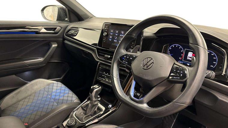 10.25" Digital cockpit pro, Bluetooth mobile phone interface, Driver alert system with fatigue detection, Driver tips and journey analysis, Emergency call service, Lane keeping system Lane Assist, Modified key software - reduce switch off time for key status change to Long no motion, Online services, Park assist including front and rear parking sensors, Service interval indicator, Tailgate/trunk lid release from outside, Think blue trainer driver tips and journey analysis, Warning sound and light for front seatbelts unfastened, Wireless app connect, Battery regeneration during braking, Four wheel drive, Start/stop function with battery regeneration, Diversity antenna for FM reception, Front and rear 6 speakers, Music playback - MP3, WMA and AAC files, Premium USB cable in choice of either Apple or Android smartphone compatibility, SD card slot, Simultaneous pairing of 2 compatible mobile devices, Title and cover art display, We Connect and We Connect Plus functionality, 3rd brake light, Auto dimming interior rear view mirror, Automatic hazard lights activation under emergency braking, Automatic headlight control with LED separate daytime running lights with coming/leaving home function, Extended roof spoiler, Exterior mirrors aspherical on driver side, convex on front passenger side, External USB type C socket and charging sockets, Front windscreen wiper with intermittent wipe and 4 position delay, Heated rear window, LED Plus headlamps, LED rear combination lamps, LED rear number plate lights, LED tail lamp rear comination lamps, Power windows with comfort operation and circuit breaker, Privacy glass for rear side windows and rear window, R-Line design body coloured bumpers, Rain sensor, Rear fog light on one side and reversing lights on both sides, Rear side wing doors, Rear wash/wipe with intermittent wipe setting, Remote electrically foldable door mirrors, puddle lights and reverse activated passenger's door mirror, 12V power socket in centre console, 3 rear head restraints, 3 seat bench in 2nd row, 4 load lashing points in luggage compartment, Air care climatronic air conditoning system with active combination filter and 2-zone temperature control, Ambient lighting - 10 colour (blue), Black roof lining, Chrome plated radiator grille inserts, air vent surrounds and light switch surrounds, Door and side trim panel with leatherette insert, Drawer under drivers seat, Driver/front passenger seat height adjustment, Front + rear carpet mats, Front centre armrest, Front cupholders x 2, Front footwell illumination, Front scuff plates with R logo in door apertures, Front sport seats, Heated leather wrapped multi function sports steering wheel with tiptronic, Instrument lighting, white adjustable panel illumination, Interior light delay, Isofix child seat preparation, Leather gearshift handle, LED interior light with switch off delay/dimmer and 2 front/rear LED reading lights, Load-through provision with cup holder when folded down ('Unsplit rear seat bench, split folding backrest, with centre armrest), Luggage compartment lighting, Lumbar support for driver's and front passengers seat, Non-folding front passenger seat backrest, R-logo stitching in floor mats, Single front passenger seat, Stainless steel pedals, Storage compartment in left and right luggage area, Storage compartment in rear doors, Storage compartments in driver and front passenger doors, Sunvisors with illuminated vanity mirrors, Variable boot floor, height adjustable and removable, Driver assistance pack without proactive passenger protection - T-Roc, R styling pack - T-Roc, 3 point height adj front seatbelts + pretensioners, 3 point seatbelts in outer rear with ECE label, ABS, Child locks on rear doors, Driver and front passenger airbag with front passenger airbag deactivation, Driver and front passenger safety-optimised head restraints, Drivers seatbelt reminder, Electronic parking brake, Electronic Stability Control (ESC) inc EDL (Electronic Differential Lock) and ASR (Traction Control), Front and rear passengers curtain airbag system including front side airbags, Front assist with city emergency braking and pedestrian monitoring, Front seat side impact airbags, Hill descent control, Hill start assist, Predictive pedestrian protection, Rear disc brakes, Single tone horn, Tyre pressure loss indicator, Volkswagen roadside assistance, Alarm with interior protection, Anti-theft alarm system with interior monitoring, backup horn, and towing protection, Keyless entry and start, Remote central locking with SAFELOCK, radio remote control with 2 remote control folding keys, Trims for alloy wheels,