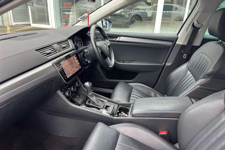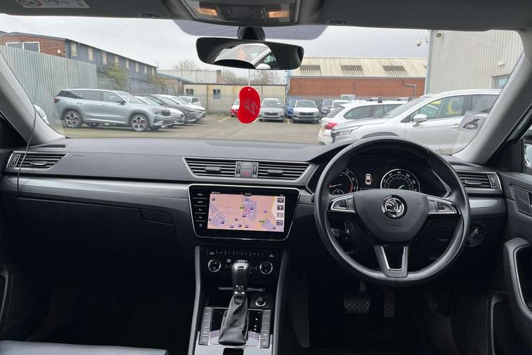 Adaptive cruise control, Bluetooth system, CareConnect and Emergency Call, Columbus colour 9.2" touch screen satellite 3D Map navi system with DAB, SmartLink+, CarPlay, Android Auto, USB, Aux in, SD Card, DVD drive and Wi-Fi, Drive mode selection with 4 driving modes - normal, sport, eco and individual, Driver fatigue sensor, Electrically operated boot door, Electromechanical power steering, External temperature gauge, Front assist including automatic braking function, Multifunction colour trip computer, Remote fuel cap release, Service interval indicator, Speed warning indicator, Stop/start engine system and energy recovery, Voice control system, Wi-Fi with LTE internet, XDS+, In-car voice enhancement, Aero wiper + intermittent function, Auto dimming rear view mirror, Bi-Xenon headlights with AFS + integrated headlight washers + LED daytime running lights, Body colour bumpers, Body colour door mirrors and handles, Chrome plated radiator grille, Chrome window surround, Cornering front fog lights, Electrically adjustable/heated/folding door mirrors with puddle lights/Integrated indicators and memory function, Front and rear electric windows, Fuel filler cap, LED brake lights, Privacy glass, Rain sensor, 12v power point in centre console, 12V power point in luggage area, 3 rear height adjustable headrests, Auxiliary heater, Boot net programme and cargo elements, Front armrest with storage box, Height adjustable front and rear head restraints, Height/reach adjust steering wheel, Illuminated air conditioned glovebox, Illuminated luggage compartment, Interior lights with control switches, Isofix child seat fittings on outer rear seats, Leather gearknob and handbrake lever, Overhead glasses storage compartment, Rear centre armrest with cupholders, Removable LED light in boot, Removable rear parcel shelf, Split folding rear seats, Ticket holder, Umbrella compartments in front doors with umbrellas, LED rear pack - superb, 3 point height adj front seatbelts + pretensioners, 3 rear 3 point seatbelts + pretensioners, 7 airbags - Front, front side, curtain, driver's knee airbag with front passenger deactivation switch, Door open warning, Driver and passenger seatbelts with warning light, Electronic parking brake, ESC including ABS, EBV, MSR, ASR, EDS, HBA, DSR, RBS, CBC, multi-collision brake (MKB) and Auto hold, Hill start assist, Rear door child safety locks, Tyre pressure monitor, Alarm with interior monitoring tilt sensor and back up horn, Electronic engine immobiliser, Keyless entry and start/stop, Remote central locking with SAFE system,
