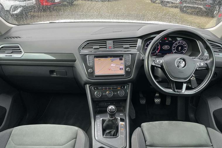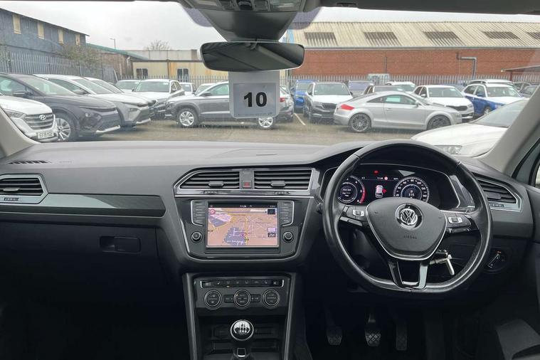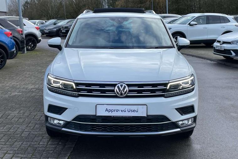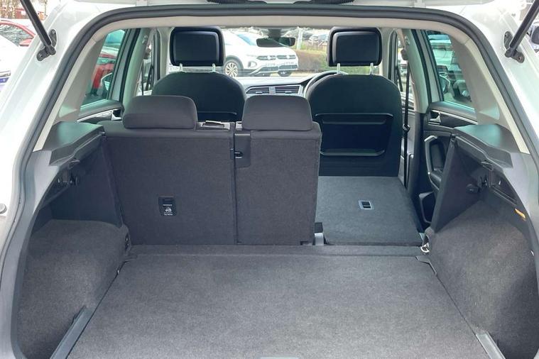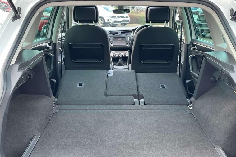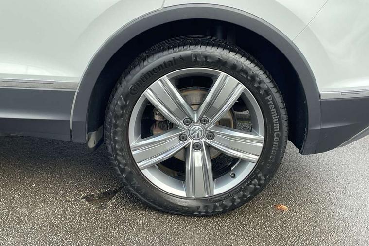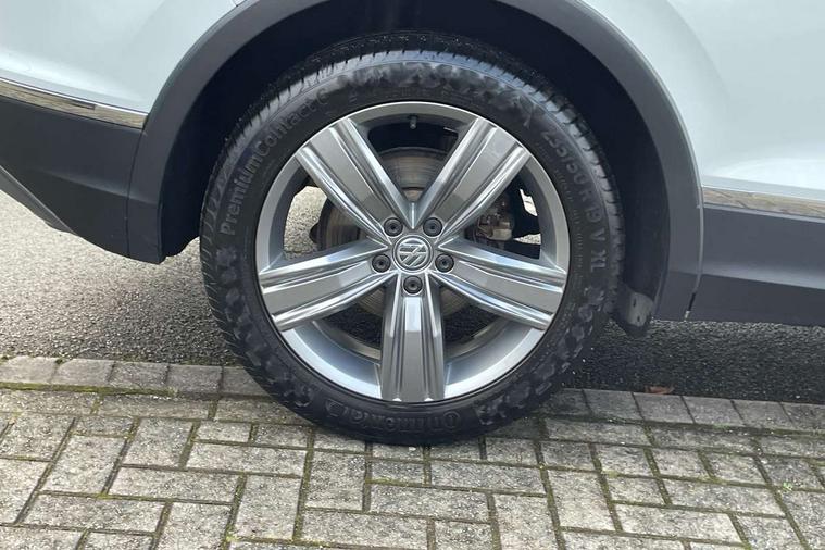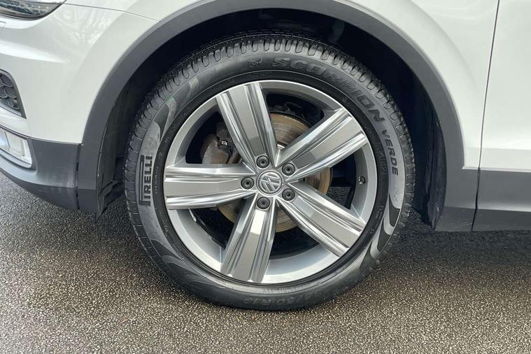 Active information display, Adaptive cruise control, App-Connect, Bluetooth phone integration system, Instrument cluster, Lane assist, Low washer fluid warning light, Outside temperature display, Service interval indicator, Warning lights, Diesel particulate filter, Aux-in socket, DAB Digital radio, SD card slot, USB connection, Auto dimming interior mirror, Body colour door handles, Body colour door mirrors, Body coloured bumpers, Chrome side body trim, Chrome side window surrounds, Chrome trimmed radiator grille, Coming/leaving home lighting function, Dusk sensor + auto driving lights, Electric folding door mirrors, Electric heated + adjustable door mirrors, Electric panoramic sunroof with sunblind, Front and rear electric windows, LED headlights with dynamic light assist daytime running lights and cornering front fog lights, Rain sensor windscreen wipers, Silver rear diffuser trim, Silver roof rails, Silver under body guard, Tinted windows (B pillar backwards), Twin trapezoid chrome exhaust pipes, 14 way electric adjustable front seats with drivers memory and massage function, 3 rear headrests, 3 zone climate control, 4 load lashing points, 40:20:40 split folding rear seats, Bag hook in luggage compartment, Front + rear carpet mats, Front centre armrest with 12v socket, Front centre armrest with storage + rear 2 air vents + cupholders, Front seatback folding tables, Height/reach adjust steering wheel, Illuminated driver/passenger vanity mirrors, Illuminated scuff plates, Interior light with delay, Isofix Preparation 2 Rear child seats, Leather gear knob, Lockable cooled glovebox, Luggage compartment lighting, Map pockets on front seats, Rear cupholders, Removable luggage cover, Sliding/reclining rear seats, Storage compartment in driver's door, Storage compartment in passenger's door, Storage drawers under front seats, Storage tray on dashboard, Sunglasses storage, Variable boot floor, Ambient lighting pack - Tiguan, 3 rear 3 point seatbelts, ABS+EBD+Brake assist, Active bonnet, Active pedestrian safety system, Curtain airbags, Driver/Front Passenger airbags, Driver/Passenger whiplash optimised head restraints, Drivers knee airbag, Electronic parking brake with auto hold, ESP with EDL + ASR, First aid kit, Front assist including city emergency braking, Front side airbags, Head airbag system, Height adjustable front 3 point seatbelts + pretensioners, Hill hold control, Passenger airbag deactivate switch, Passenger knee airbag, Pre crash system, Rear side airbags, Seatbelt warning lamp and buzzer, Warning triangle, Alarm with interior protection, Electronic engine immobiliser, Chrome door trim inserts, Piano black interior trim, Steel space saver spare wheel,