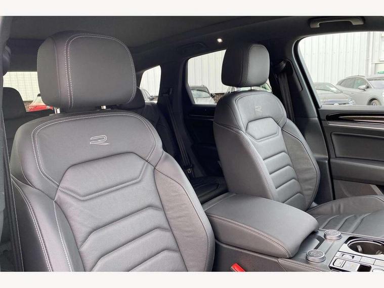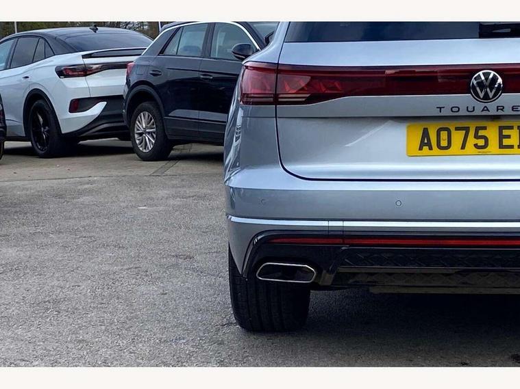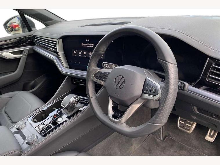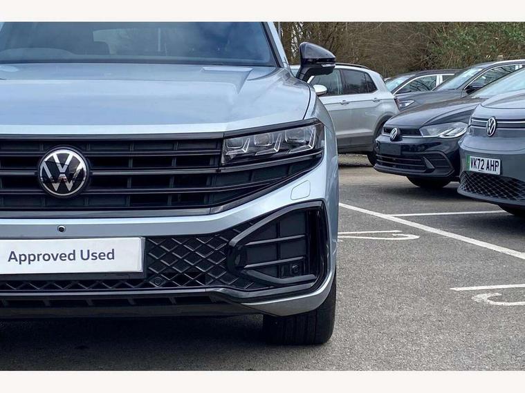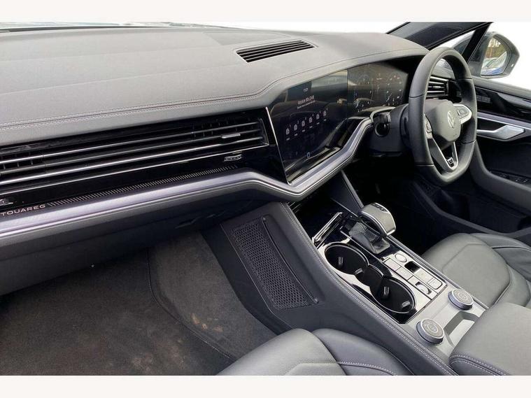 15" Screen Top infotainment system Premium (MIB3), Adaptive cruise control, Advanced driver attention and drowsiness monitor, Driver profile selection, Dynamic road sign display, E-Sim card for online connectivity, eCall emergency system, Innovision cockpit, Intelligent park assist, Mobile phone interface with inductive charging, Multi-colour Active Info display, Park Assist - Sensor controlled steering aid to assist parallel or bay parking, PAS, Warning signal and warning light for front and rear seatbelts not fastened, Wireless app connect, Adaptive chassis control, DAB Digital radio, Diversity antenna for AM/ FM reception, We Connect and We Connect Plus functionality, Automatic coming/leaving home lighting function, Automatic headlights, Black door mirrors, Black style comfort bumpers, Dynamic headlight range control with dynamic cornering light, Electric front tilt/slide panoramic sunroof and fixed rear sunroof, Electrically power adjustable, heated, folding, auto dimming, front passenger exterior door mirror lowering function, External USB type C socket and charging sockets, Gloss black roof rails, HD LED Matrix beam plus digital headlight projection with variable light distribution, Headlight washers, Highway light, LED 3rd brake light, LED daytime running lights, LED rear combination lamp with variable lighting functions and special styling, Poor weather light, Rain sensor, Rear exhaust tailpipe, Rear fog light with back up light on both sides, Rear light bar and illuminated logo, Rear side wing doors, Rear wiper, Stainless steel door sill protection, 12V socket in centre console, 3 rear headrests, 3 seat bench in 2nd row, 4 zone climate control, Airbag label on sun visor and B-pillar, Brushed stainless steel pedals, Double sun visors with illuminated vanity mirrors, Front + rear carpet mats, Front centre armrest, Leather wrapped multifunction sports steering wheel, heated, with touch control and shift paddles, Mechanical rear seat release, Power adjustable lumbar support in front, Power seats in front, right side with memory features and seat cushion depth adjustment, Rear seat backrest and split folding with center armrest, Single front passenger seat, Memory pack plus - Touareg, 3 point seatbelts, outer rear with ECE lable, ABS, Child locks on rear doors, Curtain airbags, Driver and front passenger safety-optimised head restraints, Driver/Front Passenger airbags, Extended pedestrian protection measures, Front assist, Front seat side impact airbags, Generative braking with start and stop system, Height adjustable 3 point front seatbelts with pre tensioners, Passenger airbag deactivate switch, Three 3 point rear seatbelts, Two tone horn, Warning triangle and first aid kit, Alarm system with interior protection, Easy open and close sensor controlled luggage compartment opening and closing with remote unlocking, Keyless Access Keyless locking and starting system with SAFELOCK, Aluminium decorative inserts, Black decorative trims, Gloss black decorative inserts in centre console, Tool kit,