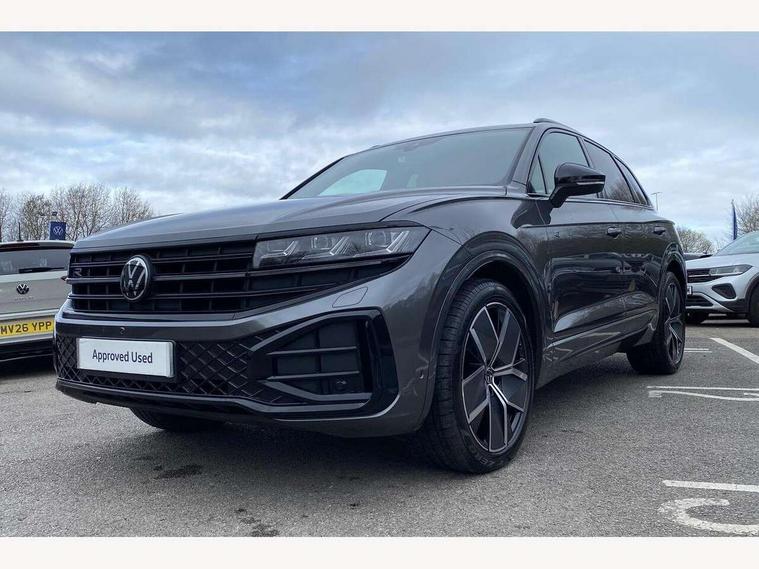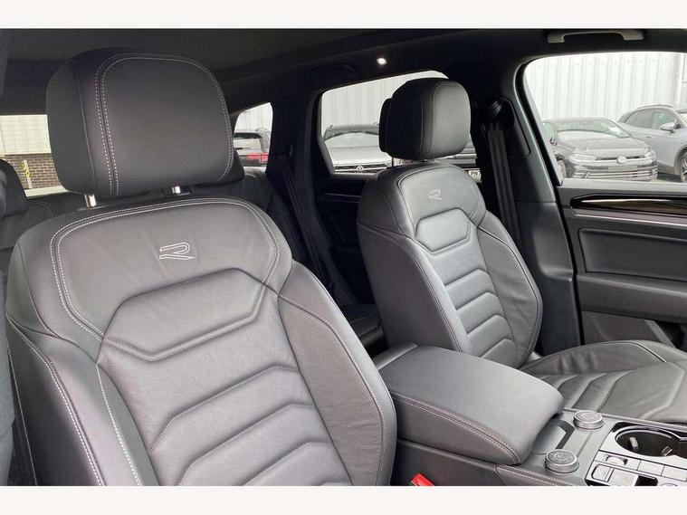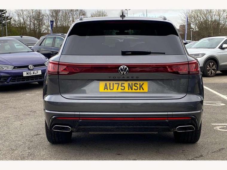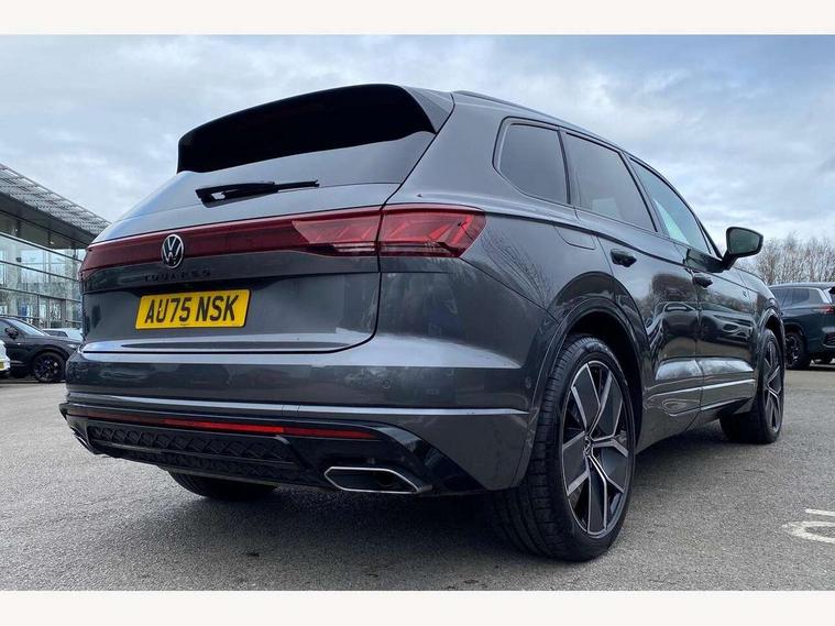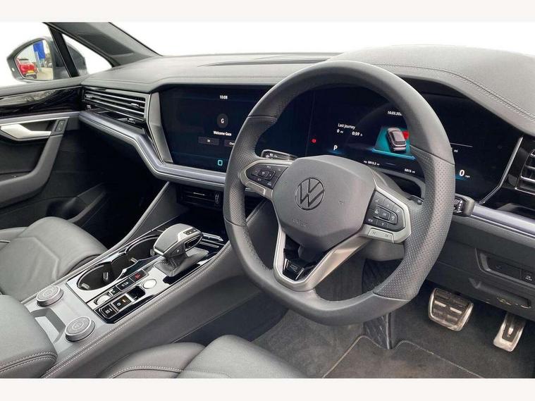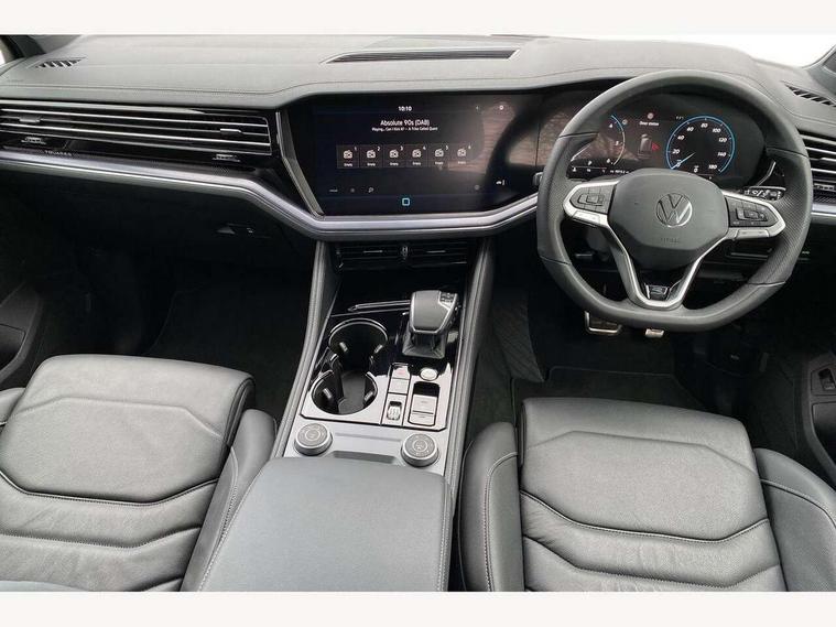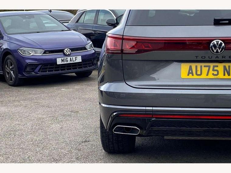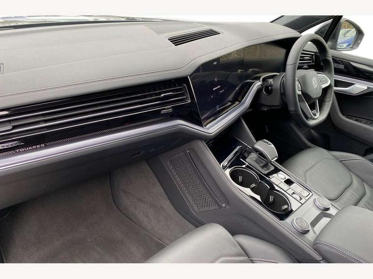 15" Screen Top infotainment system Premium (MIB3), Adaptive cruise control, Advanced driver attention and drowsiness monitor, Driver profile selection, Dynamic road sign display, E-Sim card for online connectivity, eCall emergency system, Innovision cockpit, Intelligent park assist, Mobile phone interface with inductive charging, Multi-colour Active Info display, Park Assist - Sensor controlled steering aid to assist parallel or bay parking, PAS, Warning signal and warning light for front and rear seatbelts not fastened, Wireless app connect, Adaptive chassis control, DAB Digital radio, Diversity antenna for AM/ FM reception, We Connect and We Connect Plus functionality, Automatic coming/leaving home lighting function, Automatic headlights, Black door mirrors, Black style comfort bumpers, Dynamic headlight range control with dynamic cornering light, Electric front tilt/slide panoramic sunroof and fixed rear sunroof, Electrically power adjustable, heated, folding, auto dimming, front passenger exterior door mirror lowering function, External USB type C socket and charging sockets, Gloss black roof rails, HD LED Matrix beam plus digital headlight projection with variable light distribution, Headlight washers, Highway light, LED 3rd brake light, LED daytime running lights, LED rear combination lamp with variable lighting functions and special styling, Poor weather light, Rain sensor, Rear exhaust tailpipe, Rear fog light with back up light on both sides, Rear light bar and illuminated logo, Rear side wing doors, Rear wiper, Stainless steel door sill protection, 12V socket in centre console, 3 rear headrests, 3 seat bench in 2nd row, 4 zone climate control, Airbag label on sun visor and B-pillar, Brushed stainless steel pedals, Double sun visors with illuminated vanity mirrors, Front + rear carpet mats, Front centre armrest, Leather wrapped multifunction sports steering wheel, heated, with touch control and shift paddles, Mechanical rear seat release, Power adjustable lumbar support in front, Power seats in front, right side with memory features and seat cushion depth adjustment, Rear seat backrest and split folding with center armrest, Single front passenger seat, Memory pack plus - Touareg, 3 point seatbelts, outer rear with ECE lable, ABS, Child locks on rear doors, Curtain airbags, Driver and front passenger safety-optimised head restraints, Driver/Front Passenger airbags, Extended pedestrian protection measures, Front assist, Front seat side impact airbags, Generative braking with start and stop system, Height adjustable 3 point front seatbelts with pre tensioners, Passenger airbag deactivate switch, Three 3 point rear seatbelts, Two tone horn, Warning triangle and first aid kit, Alarm system with interior protection, Easy open and close sensor controlled luggage compartment opening and closing with remote unlocking, Keyless Access Keyless locking and starting system with SAFELOCK, Aluminium decorative inserts, Black decorative trims, Gloss black decorative inserts in centre console, Tool kit,