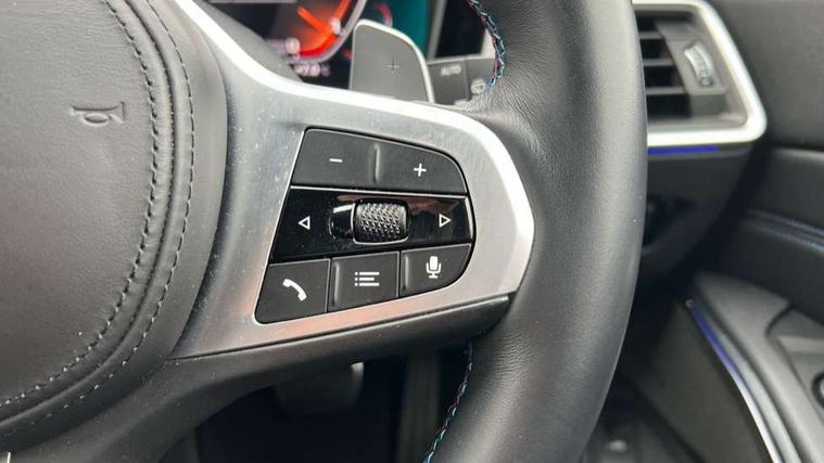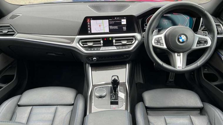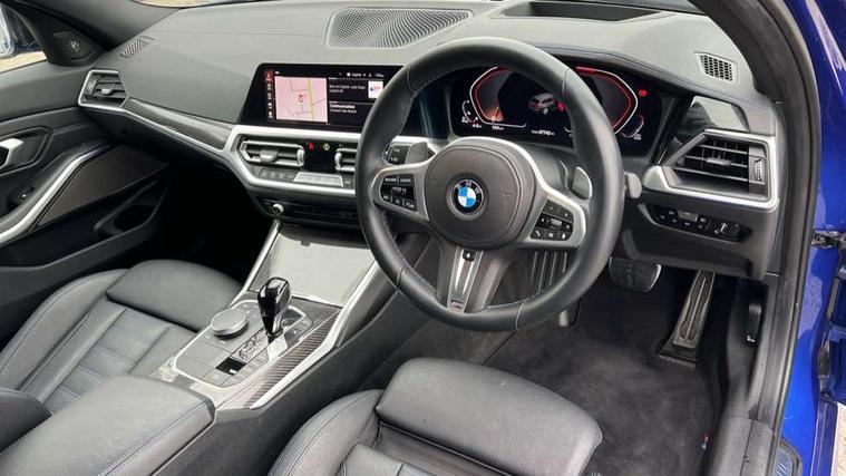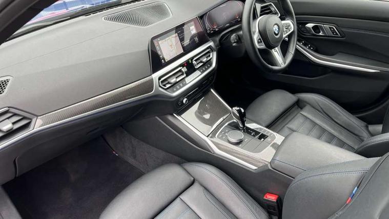 Active guard plus, Attentiveness assist, BMW ConnectedDrive oline services with BMW apps, BMW Live Cockpit Professional Nav with 12.3" instrument display + 10.25" display, Intelligent Voice Assist, BMW OS 7, HDD, 2USB, 4G LTE connect, BMW service history, BMW Teleservices, Brake pad wear indicator in front and rear, Check Control warning system for monitoring of lights and door/luggage compartment open warning, Condition based service, Electric power steering with Servotronic steering optimised at all speed ranges, Gearshift time display in manual mode, iDrive controller on centre console, Instrument cluster with speedometer with mph readout, tachometer, fuel gauge and oil temperature gauge, Integrated owners handbook, Oil sensor for level and grade, warning by check control system, On board computer - average speed+fuel consumption, service interval, clock/date, odometer/trip meter, outside temperature display and ice warning, Optimum shift indicator, Personal Profile - automatic lock when driving away selectable, Recovery braking system, Variable sport steering, 48V Mild hybrid technology, Adaptive M suspension, Balanced 50/50 weight distribution, Battery cut-out switch, Common rail technology, Diesel particulate filter, Drive performance control - ECO PRO, comfort and sport modes, EU6 emissions management, Incorrect fuelling protection, Larger capacity fuel tank, M Sport differential, Oxidation catalytic converter, Selective catalytic reduction (SCR) with AdBlue, Stroke dependent dampers, Twin scroll turbocharger, DAB tuner, Electronic service booklet, 2 x square exhaust tailpipes, Acoustic glazing, Automatic headlight activation/adjustment, Automatic headlight beam throw control with load dependent regulating reaction, dynamic compensation of braking dive and acceleration squat, Black roof mouldings, Body colour door handles, Body colour fuel filler flap, Dynamic brake lights, Electric windows - front and rear, with open/close fingertip control, anti-trap facility and comfort closing, Exterior mirrors - electrically folding with anti-dazzle, Fading support, Front and rear bumper system with replaceable deformation elements, Front black door sill finishers with BMW designation, Green tinted heat protection glazing, High gloss black exterior B pillar, High gloss shadow line exterior trim, High gloss shadow line roof rails, Interior rear view electrochromatic mirror with automatic anti dazzle function, LED daytime running lights, LED front fog lights, LED third brake light, Lightweight engineering, M designation on front side panels, left and right, Rain sensor, Rear side wing doors, Rear wiper, Shark fin antenna, Sun protection glass, Two part LED tailights in L-shape with components in smoked glass, brake light, LED turn indicator and rear fog light, Visible VIN plate, Welcome lights in interior and door handle area, Windscreen wipers with integrated washing jets, xDrive designation on left tailgate, 12V power socket in front storage compartment, 2 front cupholder in centre console with clamping elements and matt black inlay, 3 seat bench in 2nd row, 3 zone automatic air conditioning, 4 pieces lashing eyelets in luggage compartment, 40:20:40 split folding rear seat with loading system, Ambient lighting with welcome carpet light, Anthracite headlining, Armrest integrated in front and rear door trim + front centre console armrest, Backrest width adjustment, Centred top Luggage compartment lights, Four grab handles integrated in roof lining, Front and rear door exit lighting (left / right), Front and rear door pockets, Front and rear reading lights, Front and rear velour floor mats, Front head restraints, Heated front seats, Height adjustable mechanically and infinitely variable steering column, Illuminated armrest storage compartment, Illuminated glove compartment with separate small compartment, Interior lighting - front centre over interior mirror with soft light, rear centre and front and rear footwell lighting, Make-up mirror lights, Rear centre armrest with 2 cupholders, Rear centre console with storage compartment and ventilation grille, Single front passenger seat, Sunvisors with vanity mirrors and ticket pocket, Three spoke multifunction M sport leather steering wheel, Toolkit located in luggage compartment, Connected pack professional - 3 Series Saloon/Touring, M sport exterior styling pack - 3 Series Saloon/Touring, 2 tone horn, 3 rear seats with non folding headrests, Airbags activation controlled with intensity and scope, BMW emergency call, Brake energy regeneration, Braking pre-tensioning, Child proof locking system in rear door, Child seat ISOFIX attachment rear outer seats, Coasting in idle in ECO PRO mode, Crash sensor activating of airbags, Unlocking doors, hazard warning lights, fuel cut off, interior lighting+activation of safety battery terminal clamp, Deactivation of fuel pump in the event of a crash, Driver and front passenger side airbags, integrated in the door side seat backrest bolsters for all seat variants, Driver/Front Passenger airbags, Dry braking, Dynamic brake control, Dynamic stability control + (DSC+) - Anti-lock Braking System (ABS) with brake assist and cornering brake control + Automatic Stability Control (ASC), Dynamic Traction Control - DTC, Electromechanical parking brake including automatic hold function and automatic release of the parking brake when pulling away, Electronic differential lock control (EDLC), Front passenger manual airbag deactivation, Head airbags for all 4 outer seats, Hill start assist, M sport seatbelt, Seat belt security check for driver and front passenger, Side impact protection, Three 3 point seat belts on all seats including front belt stopper, pyrotechnic belt tensioners and belt force limiters, Tyre pressure monitoring with three level warning strategy, Ventilated front and rear disc brakes, Warning triangle and first aid kit, Alarm system (Thatcham 1) with remote control and electronic engine immobiliser, Central lo