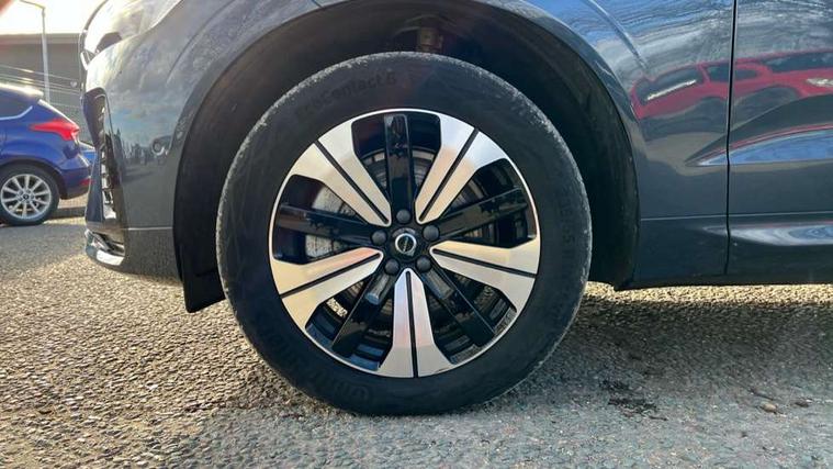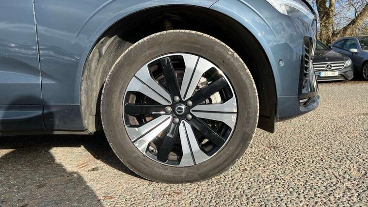 12.3" Progressive Driver Display, 360 degree surround view parking camera with side proximity sensors, 9" centre console touch screen, Adjustable steering wheel force, Apple carplay (wired), Bluetooth handsfree system, Drive mode settings, Driver alert control with lane keeping aid, Driver assistance (pilot assist and adaptive cruise control), Emergency services call system, Front and rear park assist, Google Automotive Services, Oncoming Lane Mitigation, PAS, Service interval indicator, Speed limiter, Speed sensitive steering, Trip computer, Volvo on call with App, Wireless/Inductive Mobile Phone Charging, 3.7 kW monophase on board charger, 7m 10amp charge cable with 3 pin plug and 6m 3 phase 16amp type 2/mode 3 charge cable, 8 speed automatic transmission with start/stop + manual change functions, Dynamic chassis, Electric rear axle drive, Recharging port located in nearside front wing, DAB Digital radio, Low speed exterior sound speaker, Premium Sound by Harman Kardon, dirac unison, dolby pro logic II surround sound, 13 speakers/600W output and fresh air subwoofer, Steering wheel remote infotainment controls, Adaptive brake lights with high level LED brake lights, Auto dimming interior + exterior mirrors, Automatic headlight levelling system, Automatic LED Headlights + Active high beam incorporating daytime running lights, Electric adjustable/heated/auto power folding door mirrors, Electric front+rear windows, Heated front windscreen, High gloss black door mirrors and window surround, High gloss black front and rear bumper decoratives, High gloss black mesh front grille with high gloss black surround, Home safe and approach lighting, Integrated roof rails in high gloss black, Power glass tilt and slide panoramic sunroof with sun curtain, Puddle lights, Rain sensor with automatic windscreen wiper activation, Rear side wing doors, Rear wiper, Roof antenna, Roof spoiler, Tinted windscreen, Visible VIN plate, 12V socket in front tunnel console and luggage compartment, 2 zone electronic climate control with Clean zone air quality system and pollen filter, 3 seat bench in 2nd row, A-pillar parking ticket holder, Air purifier particulate matter (PM) 2.5 filter, B Pillar ventilation, Bright metal luggage threshold, Centre console cupholders and storage, Charcoal floor mats, Front and rear courtesy lights, Front and rear door pocket illumination, Front cupholder illumination, Front footwell illumination, Front reading lights, Front seat cushion extensions, Glovebox compartment with illumination, Head restraints for all seats, Heated front seats, Heated steering wheel, Height/reach adjustable steering column, Illuminated luggage compartment, Illuminated vanity mirrors + ticket holder, ISOFIX attachment on outer rear seats, Load cover, Load protection net, Multi directional lumbar support, Power driver seat with memory + exterior mirrors memory, Power height adjustable passenger seat, Rear armrest with cupholder, Rear footwell and front and rear side step illumination, Rear seat concealed storage, Recharge aluminium tread plates, Single front passenger seat, Tailgate illumination and ambient door lighting, Underfloor stowage compartment, Versatile split folding rear seat - 60/40, 5 three point seatbelts, City safety with steering support with Pedestrian + cyclist + front collision warning with full auto brake and rear auto brake, Drivers knee airbag, Dual stage driver/passenger airbags, Electronic parking brake with auto hold, First aid kit, Front seats SIPS airbags, Hill descent control - Off-road drive mode, Hill start assist, IC (Inflatable Curtains) - Full Length, Passenger airbag cut-off device, Power child locks on rear doors, Road sign information display, Run off Road Mitigation, Run off Road Protection, Seatbelt reminder and pretensioners, SIPS (Side Impact Protection System), Slippery road and hazard light alert, Stability and Traction Control with Spin control, Engine Drag Control and Corner Traction Control, Tyre pressure monitoring system, Vehicle deceleration control with Anti-lock Brake System, Electronic Brake Distribution and Emergency Brake Assist, Warning triangle, WHIPS whiplash protection system - front, Anti-theft alarm including immobiliser/volume sensor + level sensor, Care key with user defined top speed, Key integrated remote control central locking + fuel flap with deadlocking system and auto open/close power windows, Keyless Drive (includes Keyless Entry and Keyless Start) with Handsfree Tailgate Opening/Closing, Locking wheel nuts, Private locking for tailgate, Tyre sealant kit + 12v compressor,
