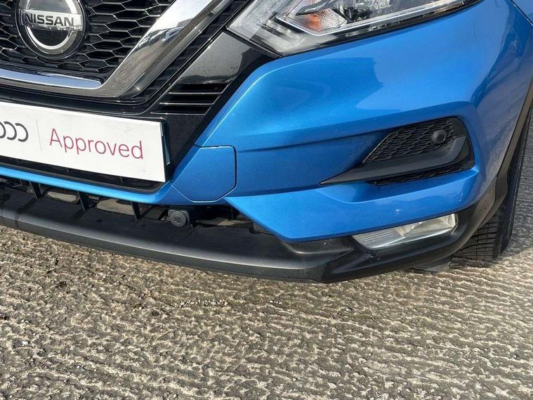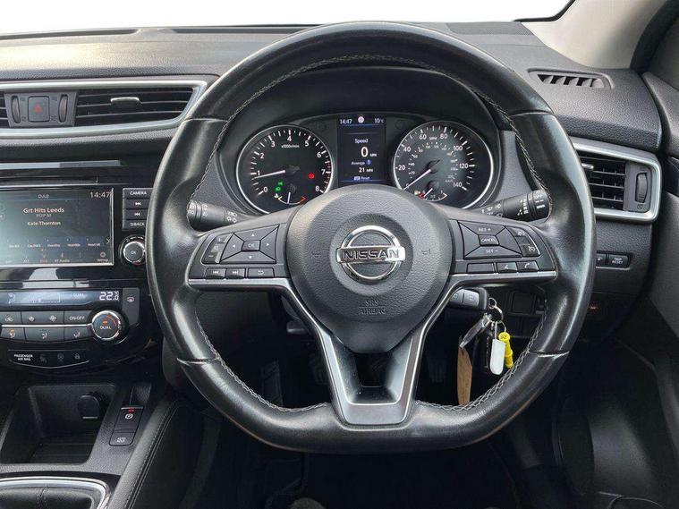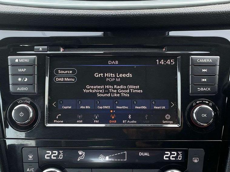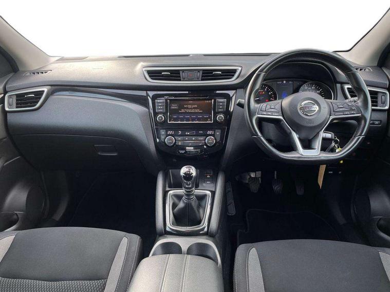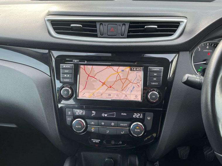 Advanced drive assist display 5'' TFT coloured screen, Android Auto, Apple CarPlay preparation, Bluetooth connectivity, Cruise control + speed limiter, Electric speed sensitive power steering, Front parking sensors, Lane departure warning system, Nissan connect evo 7" touchscreen navigation and entertainment system, Normal or sport selectable steering, Outside temperature sensor, Rear parking sensors, Rear view camera, Service interval indicator, Smartphone integration, Stop/start system, Tomtom connected services, Traffic sign recognition, Trip computer, Voice control system, Nissan chassis control (intelligent ride control, intelligent trace control, intelligent engine brake), 6 speakers, AM/FM radio, CD audio system, Aux-in socket, DAB Digital radio, Steering wheel mounted audio controls, USB port, Anti dazzle rear view mirror, Auto wipers, Body colour bumpers, Body coloured door handles, Body coloured door mirrors, Chrome window surround, Daytime running lights dip function when turn signal applied, Electric folding door mirrors, Electric front and rear windows with one touch illuminated window controls, Electric front/rear windows, Electrically adjustable door mirrors, Front fog lights, Halogen headlights, Heated door mirrors, High beam assist, Intelligent auto headlights, LED indicators in door mirrors, Rear roof spoiler, Rear wiper with reverse link, Shark fin antenna, Signature LED daytime running lights, Underbody vortex generators, 2 X front 12v power sockets, 3 height adjustable rear headrests, 60/40 split folding rear seat, Ambient lighting in centre console, Boot lighting, Centre console storage box/armrest, Chrome interior door handles, Cloth upholstery, Driver's seat manual height adjust, Dual zone climate control, Front and rear door pockets with bottle holders, Front and rear seat belt pre-tensioners with load limiters, Height adjustable front headrests, ISOFIX on outer rear seats, Leather D shaped steering wheel, Leather gear lever, Leather knee pad, Manual height adjustable front passenger seat, Manual lumbar support on driver seat, Parcel shelf stow function under luggage board, Pollen filter, Rear armrest with 2 cupholders, Tilt/telescopic adjustable steering wheel, 6 airbags - Driver, front passenger, curtain and side airbags, ABS, ESP, EBD and brake assist, Auto hold function, Child locks on rear doors, Electronic parking brake, Front and rear seat belt warning, Front passenger airbag deactivation, Height adjustable front seatbelts, Hill start assist, Intelligent emergency braking with pedestrian recognition, Three 3 point rear seatbelts, Tyre pressure monitoring system, Anti-theft immobiliser, Remote central locking, Thatcham Cat.1 alarm, Piano black dash trim, 17" Alloy wheels, Tyre puncture repair kit,