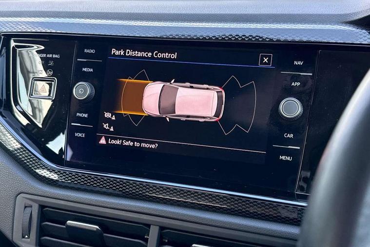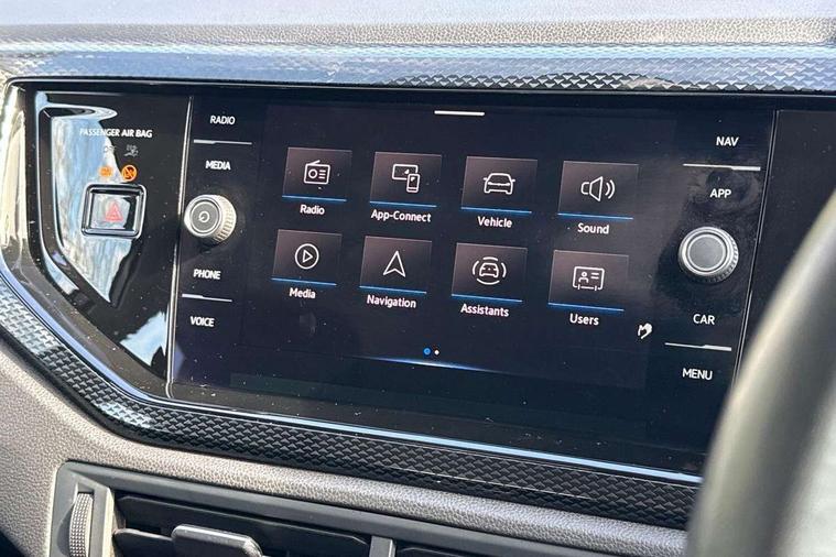 Adaptive cruise control without follow-to-stop and speed limiter, Bluetooth mobile phone interface, Driver alert system, Emergency call service, Front assist system, Power assisted speed sensitive steering, Preparation for We connect and We connect plus, Speedo and rev counter, electronic odometer, trip, service interval display and fuel gauge, Standard rear axle, Travel Assist - Lane keeping system and traffic jam assist, Travel assist including emergency assist, Trip computer, Warning signal and warning light for front and rear seatbelts not fastened, Washer fluid level indicator, Wireless app connect, Front wheel drive, Rear shock absorpion, Start-stop system with battery regeneration (recuperation - energy recovery during braking), DAB Digital radio, Diversity antenna for FM reception, Front and rear 6 speakers, Automatic dimming interior rear view mirror, Body colour bumpers, Body colour door handles, Body colour door mirrors, Electric front windows, Heat insulating darkened glass in side and rear windows, Heat insulating glass windscreen, Power folding adjustable/heated exterior mirrors and front passenger exterior mirror lowering function, Rain sensor, Rear electric windows, Rear fog light, Rear side wing doors, Rear windscreen washer and wiper with interval delay, Third brake light, 12V power socket in centre console, 2 front and 2 rear reading lights, 2 USB-C ports in the front, 2 USB-C charging sockets on the center console in the rear, 3 rear head restraints, 60/40 split folding rear seat and rear seat bench not split, Chrome plated radiator grille inserts, air vent surrounds and light switch surrounds, Door and side trim panel, Driver and front passenger seat height adjustment, Driver/passenger sunvisors with illuminated vanity mirrors, Front centre armrest, Front seat backrest storage pockets, Front standard seats, Handbrake lever handle in leather, Hartley/Thomas cloth upholstery, Headliner in recycled material, Isofix child seat preparation easy-fit (for two outer rear seats, and front passenger seat) compatible with I-size, Leather trimmed gear knob, Luggage compartment cover, Luggage compartment floor, Luggage compartment lighting, Multifunction steering wheel, Single front passenger seat, Standard pedal cluster, Light and vision pack - Polo, 3 point height adj front seatbelts + pretensioners, 3x3 point rear seatbelts, ABS, Driver and front passenger airbag with front passenger airbag deactivation, Drivers and front passengers safety optimised head restraints, ESC (Electronic stability control) + EDL (Electronic Differntial lock) and ASR (Traction control), Extended and predictive pedestrian/ cyclist protection, Front curtain and side airbags with center airbag, Front disc brakes, Hill hold control, Manual child lock in rear doors, Rear drum brakes, Single tone horn, Tyre pressure loss indicator, Alarm with interior protection, Anti-theft alarm system with interior monitoring, backup horn, and towing protection, Anti-theft wheel bolts, Electronic engine immobiliser, Lava stone black gloss/matt decorative inserts in dash and front door panels, Low rolling resistance tyres,