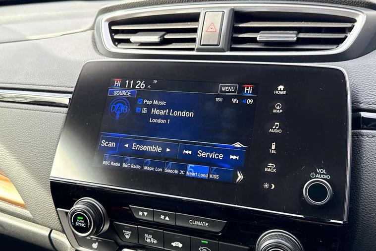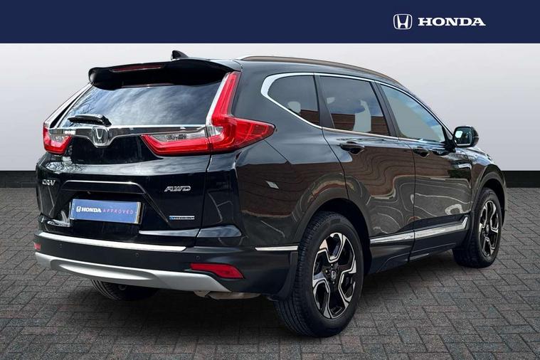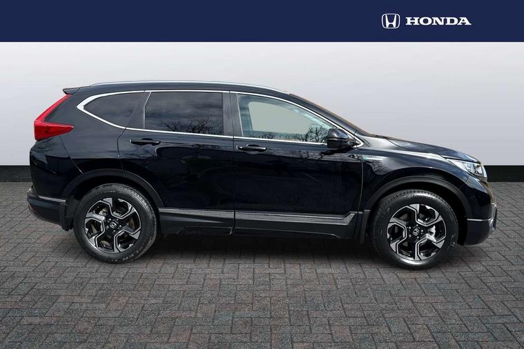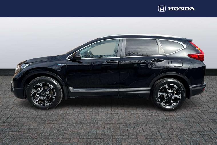 Adaptive cruise control, Agile handling assist, BLIS (Blind Spot Information System) with dual power heated blind spot mirrors, Bluetooth hands free telephone connection, Economy mode, Electric power steering, Emergency stop signalling system, Forward collision warning, Front and rear parking sensors, Hands free tailgate, Head up Display, Honda CONNECT with GARMIN Navigation + 7" touchscreen, DAB radio, Apple CarPlay, Android Auto, Aha app integration and internet browsing, Intelligent multi info display, Lane departure warning system, Lane keep assist system, Low speed following, Rear view camera, Road departure mitigation, Speed limiter, Traffic sign recognition, Vehicle stability assist, 2 USB sockets in rear, 2x USB sockets in front, 8 Speakers, DAB Digital radio, Steering wheel mounted controls, Subwoofer, Aspheric door mirrors, Auto dimming rear view mirror, Automatic headlights with dusk sensor, Body colour bumpers, Body colour door handles, Cornering light, Door mirrors tilt when reversing, Electric front windows/one touch facility, Electric rear windows + one touch facility, Electrically adjustable and heated door mirrors, Electrically retractable door mirrors, Front windscreen de-icer, High beam assist, LED daytime running lights, LED front fog lights, LED Headlights, LED rear lights, Panoramic opening glass sunroof, Rain sensor, Rear privacy glass, Rear wiper, Roof rails, Shark fin roof aerial, Welcome home function, 60/40 split folding rear seat, 8 way electrically adjustable drivers seat + mirror memory, Accessory sockets, Ambient interior lighting, Ambient light in roof, AWD emblem rear, Cargo hooks, Courtesy lights, Driver's electric adjustable lumbar support, Driver/passenger front seatback pockets, Driver/passenger sunvisors with illuminated vanity mirrors, Dual zone automatic climate control, Electric lumbar adjustment on passenger's seat, Footwell ambient lighting, Front centre armrest, Front map lights, Front passenger seat height adjust, Heated front seats, Heated rear seats, Heated steering wheel, Hybrid emblem, Illuminated glovebox, Instrument panel with garnish wood film, Isofix child seat preparation, Leather steering wheel, Leather upholstery, Paddle shift controls, Rear air vents, Rear centre armrest, Rear headrests, Rear reading lights, Silver interior door handles, Sunglasses holder with mirror, Tilt/telescopic adjustable steering wheel, Tonneau cover, Trunk light, 5 x 3 point seatbelts, ABS/EBD, Anti-whiplash front headrests, Brake assist function, Collision mitigation braking system, Deflation detection system, Driver airbag, Electronic parking brake with auto hold, Front and rear curtain airbags, Front side airbags, Hill start assist, Passenger airbag deactivate switch, Honda super locks, Immobiliser, Remote keyless entry, Security alarm, Ultrasonic sensor and tilt sensor, Tyre repair kit,