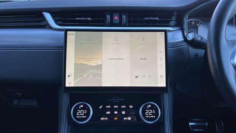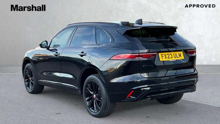 11.4" touchscreen, Android Auto, Apple car play, Blind spot assist, Bluetooth connectivity, Clear exit monitor, Driver alert system, Driver condition monitor, eCall emergency call system, Eco driving style assistant, Electric power assisted steering, InControl remote, Jaguar Toggle shift selector, Lane departure warning system, Lane keep assist, Outside temperature gauge, Personalisation profile management, Pivi pro connected navigation system with app interface and media storage, Pro services and wifi hotspot, Push button starter, Rear traffic monitor, Service interval indicator, Speed proportional steering, Start up sequence with movement in dials and lighting, Traffic sign recognition with adaptive speed limiter, Trip computer, Voice control system, 8 speed automatic transmission, All terrain progress control, All Wheel Drive (AWD), Open differential with torque vectoring by braking, AM/FM radio, Bluetooth streaming, DAB Radio (Digital Audio Broadcasting), Dynamic volume control, InControl apps, InControl protect, iPod integration, 3 flash lane change indicators, Animated directional indicators, Approach Illumination, Auto dimming rear view mirror, Automatic headlights, Body colour door mirrors, Electric heated/power fold memory door mirrors with approach lights and auto dimming driver side, Electric windows with one touch open/close and anti trap, F-Pace and R Dynamic badge, Green tinted glass, Heated front windscreen + heated washer jets, Heated rear window with timer, Jaguar script and leaper, LED High level third brake light, LED tail lights, Non acoustic front windscreen, R Dynamic badge on side door, Rain sensor windscreen wipers, Rear fog lights, Rear metal tread plates, Rear side wing doors, Rear wiper, Trailer stability assist, Variable front intermittent wipers, 12V power point front, 3 rear headrests, 3 seat bench in 2nd row, Air distribution speed, Bright metal foot pedals, Centre armrest console, Centre console with side storage, Deletion loadspace storage rails, Door sill tread plates, Fold flat front seats, Front centre armrest with storage compartment, Front door storage space, Glovebox finisher with jaguar script, Heated steering wheel, Hooks in loadspace, Illuminated glovebox, Interior front door handles with separate locking switches, ISOFIX on outer rear seats, Jaguar sense, Luggage tie downs in loadspace, Mist sensing, Multifunction steering wheel, Overhead lighting console, Overhead stowage for sunglasses, Passive front head restraints, Premium cabin lighting, Premium carpet mats, R-Dynamic branded leather steering wheel, Rear air vents, Rear armrest with twin cupholders, Rear centre headrest, Rear door storage space, Reversible boot floor, Satin chrome gearshift paddles, Shopping bag hook, Single front passenger seat, Sunvisors with illuminated vanity mirrors, Twin front cupholders with cover, Online Pack with data plan - F-Pace, 355mm front brakes and 325mm rear brakes, 3x3 point rear seatbelts, ABS, All surface progress control (ASPC), Brake pad warning light, DSC - Dynamic Stability Control, Electric parking brake (EPB), Emergency brake assist, Front airbags with passenger seat occupant detector, Front and rear seatbelt reminder, Front side airbags, Full length side window curtain airbag, Hill launch assist, Power operated child locks, Torque vectoring brake, Traction control, Tyre pressure monitoring system, Immobiliser, Keyless entry, Keyless start, Locking wheel nuts, Perimeter alarm, Remote central locking, Valet mode,