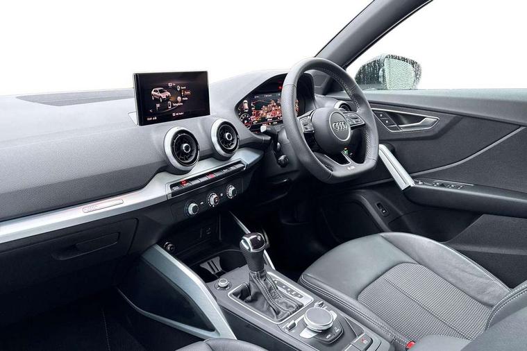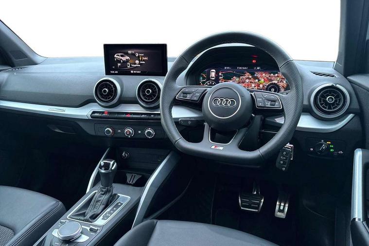 3D map display, Audi connect navigation and infotainment includes innovative services, Audi connect remote and control connects your vehicle to your smartphone, Audi drive select: S tronic - power steering assistance + engine + gearshift (modes: comfort, auto, dynamic, efficiency, individual), Audi smartphone interface - Apple carplay/Android Auto, USB connect, 2xSDXC card readers, voice control for navi, telephone, music and 3rd party apps, Audi virtual cockpit, Automatic start/stop system with recuperation, Bluetooth interface includes bluetooth audio streaming, Cruise control, Distraction and Fatigue warning, E-call, Jukebox hard drive memory for music (10GB), Lane departure warning, MMI navigation plus with 8.8" touchscreen, Natural voice recognition, Power operated tailgate, Progressive steering, Rear parking sensors, Sport suspension, 6 passive loudspeakers, DAB Digital radio, USB type C port, Audi beam, Auto dimming rear view mirror, Black window trims, Bumper in full body colour paint finish, Electrically adjustable, folding, auto dimming and heated door mirrors with integrated LED side indicators, Front windscreen with grey tinted sunband, LED daytime running lights, LED headlights with dipped beam, high beam, position lights, indicators, LED rear lights, LED third brake light, Privacy glass - dark tinted rear and rear side windows from B-pillar backwards, Rear side wing doors, Rear wiper, Variable front intermittent wipers, Wheel arch trims in manhattan grey, 12V socket in front, 3 seat bench in 2nd row, 3 spoke flat bottomed multi-function leather sport steering wheel with gear shift paddles, 4-way electric lumbar support for front seats including manual seat height adjustment for both front seats, 60/40 split folding rear seat bench, Black carpets, Black cloth headlining, Front and rear head restraints, Front centre armrest, Front sport seats, Front/rear floor mats, Height/reach adjust steering wheel, Illuminated door sill trims with S logo, ISOFIX child seat mounting in front passenger and rear outer seats, Manual air conditioning, Single front passenger seat, Stainless steel pedals, Black styling pack - Q2, 3x3 point rear seatbelts, 6 airbags - Front, curtain and front side airbags, Electromechanical parking brake, Electronic stabilisation control including ABS, ASR and EDL, Front passenger airbag deactivation, Hill hold assist, Pre-sense front with pedestrian recognition, Seatbelt monitoring, Tyre pressure warning light with visual and acoustic warning, Warning triangle and first aid kit, Anti theft alarm, Anti theft wheel bolts, Electronically operated child locks, Remote central door locking, Aluminium interior element, Black dashboard, Gloss black centre console, Matt brushed aluminium trim inlays, Tool kit,