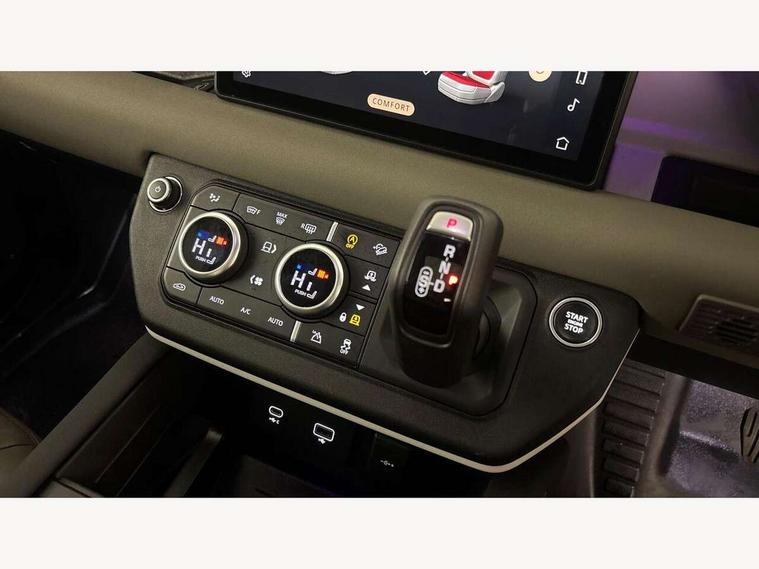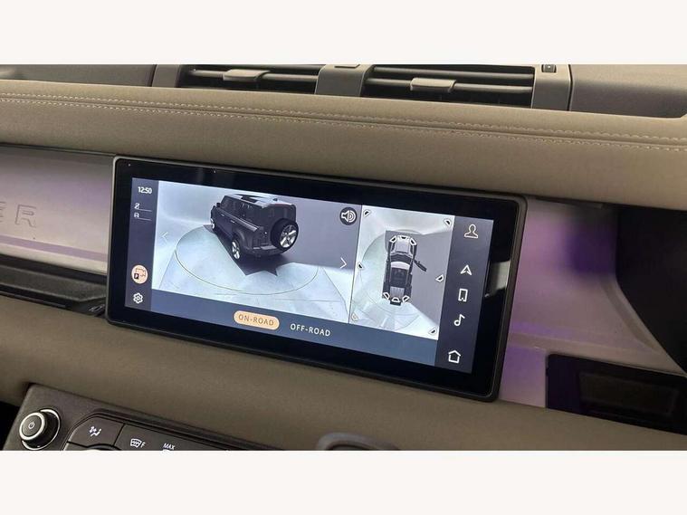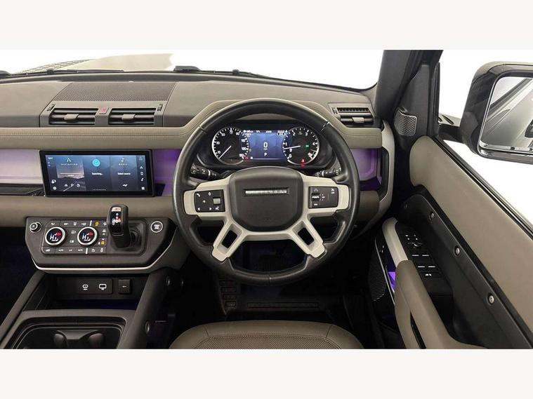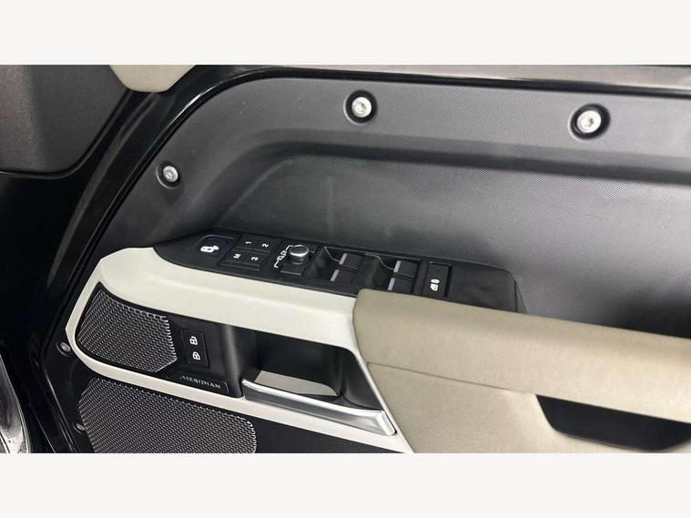 360 degree parking aid, 3D Surround Camera with 360 View, 180 Rear View, Front Traffic Detection, Forward Vehicle Guidance, Tow Hitch Assist and clear sight Ground View, Adaptive cruise control, Android Auto, Apple CarPlay, Assisted tailgate with soft close, Blind spot assist, Bluetooth system, Brake pad wear indicator, Clear exit monitor, Connected navigation pro, Driver condition monitor, Electric power assisted steering (EPAS), Lane keep assist, Push button start, Rear traffic monitor, Traffic sign recognition with adaptive speed limiter, Trip computer, Wade Sensing, 8 speed automatic transmission, All wheel drive system, Twin speed transfer box, DAB Radio (Digital Audio Broadcasting), Meridian 400w sound audio system with 11 speakers and subwoofer, Pivi pro connected, Automatic headlight levelling, Automatic headlights, Centre high mounted stop light, Electric heated/power fold door mirrors with approach lights and auto dimming driver side, Electric windows with one touch open/close and anti-trap, Follow me home lighting, Front fog lights, Heated rear window with timer, Heated windscreen, LED tail lights, Privacy glass, Puddle lights, Rain sensing windscreen wipers, Rear fog lights, Rear side wing doors, Rear wiper, Side hinged tailgate, Trailer stability assist, X-Dynamic badge, 12V power socket in loadspace, 2 seat bench in 3rd row, 3 seat bench in 2nd row, Air quality sensor, Alpine lights, Cabin Air Purification plus, Durable rubber cabin flooring, Durable rubber loadspace flooring, Footwell lights, Front passenger isofix child seat attachment, Loadspace cover, Loadspace Hook, Multifunction steering wheel, Overhead stowage for sunglasses, Premium cabin lighting, Rear headrests, Rear ISOFIX, Rear reading lights, Single front passenger seat, Storage glovebox, Sunvisors with illuminated vanity mirrors, Online pack with data plan - Defender, 7 three point seatbelts, ABS, Brake hold function, Cornering brake control (CBC), Customer configurable autolock, DSC - Dynamic Stability Control, EBD - Electronic brakeforce distribution, Electric parking brake (EPB), Emergency brake assist, Emergency braking, ESP + traction control, Front airbags with passenger seat occupant detector, HDC - Hill descent control, Hill launch assist, Low traction launch, Power operated child locks, Remote for (e-Call, Optimised assistance call, InControl app, Climate, beep and flash and door), RSC - Roll stability control, Seat belt reminder, TPMS (Tyre pressure monitoring system), Alarm, Immobiliser, Intrusion sensor, Keyless entry, Locking wheel nuts,