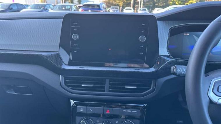 'Lights On' Reminder warning buzzer, 8" Digital cockpit, Advanced driver attention and drowsiness monitor, Bluetooth telephone and audio connection for compatible devices, Car information display, Dynamic road sign display, E-Sim card for online connectivity, eCall emergency call system, Front and rear parking sensors, Front assist, forward collision warning, autonomous emergency braking and speed limiter, Low washer fluid warning light, Multifunction computer with visual gear change recommendation for fuel consumption, Multifunction front facing camera for distance control, Operating permit alteration, Power assisted steering, Predictive adaptive cruise control, Preparation for navigation system with media and internet package, Preparation for We connect and We connect plus, Rear view camera, Semi-automated driving assistance, travel assist including lane keeping system Lane Assist and emergency assisst, Side assist, Speedo, rev counter, electronic odometer, trip, service interval display, exterior temperature and fuel gauge, Warning sound and light for doors and tailgate open, Warning sound and light for front seatbelts unfastened, Wireless Car net app connect with Apple CarPlay, combined functionality of Apple CarPlay/Android Auto and MirrorLink, Wireless charging, Misfuel prevention device, Start-stop system with battery regeneration (recuperation - energy recovery during braking), 2 USB C ports in front, 2 USB charging sockets on the centre console in the rear charging capacity upto 45W, DAB Digital radio receiver, Diversity antenna for FM reception, Multi device interface (MDI) with USB connection, Music playback - MP3, WMA and AAC files, Radio, Automatic dimming interior rear view mirror, Automatic hazard lights activation under emergency braking, Automatic headlight control with LED separate daytime running light and coming home and leaving home feature, Body colour door handles, Body colour door mirrors, Body coloured bumpers, Dynamic headlight range control with self adjusting whilst driving, Electric folding door mirror, adjustable, heated with front passenger exterior mirror lowering function, Exterior mirrors convex on the left and aspherical on the right, Front and rear electric windows, Galvanised body, Heat insulating and laminated safety glass windshield, Heat insulating darkened glass in side and rear windows, High Beam Assist, automatic sensing for switching between dipped and main beam, LED rear combination lights, LED third brake light, Lower door sills and door pillars in black, Rain sensor, Rear fog light on one side, reversing light on both sides, Rear side wing doors, Rear window aerial, Rear window wiper with intermittent control, Reflectors in all doors, Scuff plates, Tailgate with integrated roof spoiler, 12V Accessory socket in centre console, 3 rear head restraints, 3 seat bench in 2nd row, 60/40 split folding rear seat backrest, Ambient lighting and logo projection, Ceramique roof lining, Cloth upholstery, Door and side trim panel, Driver and front passenger sunvisor with vanity mirror, Dust and pollen filter, Front and rear reading lights X 2, Front centre armrest with storage compartment, Front seat back storage pockets, Glove compartment door with light, Heating and fresh air system with 4 stage blower, Height/reach adjust steering wheel, Instrument lighting white adjustable panel illumination, Interior light with switch off delay and dimmer, Isofix anchors for child seats on outer rear seats and front passenger seats, Leather gearshift handle, Leather wrapped multifunction steering wheel, Luggage compartment floor, Luggage compartment lighting, Manual front seats with height adjustment, Padded dashboard, Removable luggage compartment cover, Single front passenger seat, Storage compartment in drivers and front passengers door, Unsplit sliding rear seat bench, Without drawers under front seats, 3 point outer rear seat belts with ECE label, 3 Point seatbelt for centre rear seat, Anti-lock Braking System (ABS) with Hydraulic Brake Assist (HBA), Automatic post collision braking system, Disc brakes in front, Driver and front passenger safety-optimised head restraints, Drivers and Front Passengers airbags with front passengers airbag deactivation switch, Drum brakes in rear, ESC with EDL and ASR (traction control), Extended and predictive pedestrian/cyclist protection, Front and rear passenger curtain airbag system including front side airbags, Height adjustable front 3 point seatbelts + pretensioners, Hill start assist, Pre crash preventive occupant protection, Proactive passenger protection system in combination with front assist, Rear door child safety locks, Rigid safety cell with front and rear crumple zones, Single tone horn, Tyre pressure loss indicator, Volkswagen roadside assistance, Alarm with interior protection, Anti theft alarm system, Electronic engine immobiliser, Remote keyless entry using key fob including Start/Stop button on centre console with SAFELOCK, Remote tailgate unlocking using key fob, Low rolling resistance tyres,