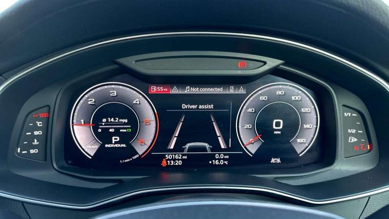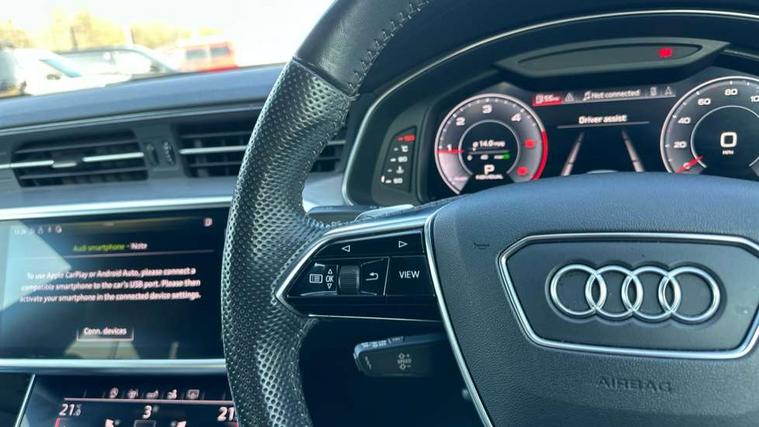 Audi connect safety and service (e-call), Audi drive select, Audi phone box with wireless charging, Audi smartphone interface, Audi virtual cockpit - 12.3" high resolution LCD digital instrument cluster display, Automatic start/stop system with coasting functionality, Colour driver's information system display, Electric boot release, MMI nav plus with MMI touch + 10.1" and 8.6" HD haptic touch screen/3D city models/country information/online map/route info and personal route assist, Natural voice recognition, Operating buttons in black, Power operated tailgate, Progressive steering, Rear view camera, Service indicator, 24 litre AdBlue tank, Diesel particulate filter, Audi music interface - 2 USB ports with charger and data functions, Auxiliary input socket, DAB digital radio module, Frameless auto dimming interior rear view mirror, Front and rear electric windows, Headlight washers, Heat insulating glass in side and rear windows, High gloss black radiator grille with chrome single frame surround, LED rear lights, Rain and light sensors, Retractable rear spoiler, S line air inlet design with inlay in high gloss black, S line badge on front grille, S Line badge on wings, S Line Black rear diffuser with chrome inlays and rear grille, S Line front and rear bumpers, S Line side skirts, Signature LED daytime running lights, Towbar preparation, Windscreen with acoustic glazing, 4-way electric lumbar support, 40/20/40 split folding 3 seater rear seat bench with rear centre armrest, Black cloth headlining, Electrically adjustable front seats - driver seat with memory, Front and rear headrests, Front centre armrest, Height/reach adjust steering wheel, Illuminated sun visors with vanity mirrors, ISOFIX child seat mounting and Top Tether with front passenger airbag deactivation, Leather gear lever, Leatherette upper instrument panel and door shoulders, Luggage compartment, Rear centre armrest, S line front and rear floor mats with contrast stitching, Stainless steel pedals and foot rest, Tool kit and car jack, Non smoking pack - A7, 3 point seatbelts on all seats, Driver and passenger airbags, Electromechanical parking brake, Electronic stabilisation control including ABS, ASR and EDL, Extended pedestrian protection measures, Hill hold assist, Seatbelt warning, Tyre pressure warning, Warning triangle and first aid kit, Anti theft alarm with tow away protection, Anti-theft wheel bolts and wheel loosening detection, Immobiliser, Keyless Go, Preparation for tracking system, Remote central locking,