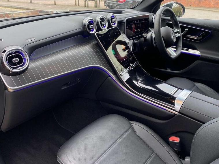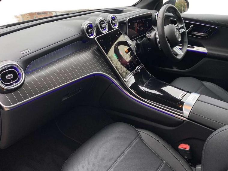 11.9" high resolution multimedia colour display, 12.3" Digital individually configurable instrument display, Acoustic presence indicator, Active lane keeping assist, Active park assist with PARKTRONIC/360 degree camera - Detects spaces/assists with steering, accelerating/braking when reversing into a parking space, Attention assist, Blind spot assist, Bluetooth interface for hands free telephone, Collision prevention assist plus, Direct steer speed sensitive steering, DYNAMIC SELECT with a choice of driving modes (ECO, Comfort, Sport and Individual, Offroad)), eCall emergency call system, Fingerprint scanner, Fluorescent jacket for driver, Hard disc navigation, Head up Display, Instrument display in miles with English lettering, MBUX augmented reality for navigation, MBUX navigation premium, MBUX voice control activated by keywords "Hey Mercedes", Mercedes me connect, Multi function trip computer, Outside temperature display, Remote and charging services plus, Remote boot release, Road sign recognition system, Service indicator (ASSYST), Smartphone integration with Apple CarPlay/Android Auto, Status display for rear seat belts in instrument cluster, Traffic sign assist, Wireless charging system for mobile devices in the front, 49 litre fuel tank, 4MATIC four wheel drive - variable all wheel drive system designed for all weather traction, 7.4 kW monophase on board charger, 9G TRONIC 9 speed automatic transmission with steering column gear selector and DIRECT SELECT steering wheel paddles, Alternating current charging system (AC charging), Charging cable for domestic socket (mode 2) - 5m, DC Charging system, Mode 3 charging cable for wallbox and public charging station with 5 m, straight, Petrol Particulate Filter (PPF), Residual engine heat utilisation, Burmester 3D surround sound system - 13 speakers and a 9 channel amplifier with total output of 590 watts, DAB digital radio tuner, MBUX extended functions, Pre installation for Mercedes Benz Link, Sound personalisation, Adaptive brake lights, Adaptive high beam assist plus, Aluminium look running boards with rubber studs, AMG bodystyling front apron, rear apron and side skirts, AMG Line exterior, Auto headlights, Black roof rails, Body colour bumpers, Body colour door mirrors, Digital light LED headlights, Electric panoramic glass sunroof, Electrically adjustable door mirrors, EQ Hybrid badging on front wings, Front and rear electric windows, Headlight washers, Heat and noise insulating acoustic glass, Heat insulating dark tinted glass, Heated rear window, High level LED brake light, Integrated LED daytime running lights, LED indicator lights, LED rear fog lights, LED tail lamp, MG diffuser look rear apron with insert in chrome, Motor way mode function and locator lighting, Radiator grille with Mercedes Benz pattern and integreated Mercedes star and louvre in dark grey matt with chrome inlay and black frame, Rain sensor windscreen wipers, Range adjustable headlights, Rear side wing doors, Rear wiper, Transparent Bonnet, Two chrome plated tailpipe trim elements, Variable front intermittent wipers, Welcome and follow-me home light functionality, Wheel arch liners in the vehicle colour, 3 seat bench in 2nd row, 40:20:40 split folding rear seats, Ambient lighting premium - Illuminated light lines on the centre console flanks, instrument panel, doors and in the air vents, additional dimming zone, AMG brushed stainless steel sports pedals with black rubber studs, AMG line interior, Artico man-made leather upholstery, Automatic child seat recognition sensor, Black fabric roof lining, Black floor mats with AMG lettering, Climatised front seats - Heated and cooled, Comfort seats, Double cup holder in centre console, Electrically height/reach adjustable steering column, Front centre armrest with stowage compartment, Front head restraints, Heated steering wheel, Illuminated and lockable glove compartment, Illuminated door sill panels with Mercedes Benz lettering, Instrument panel and beltlines in ARTICO manmade leather in nappa look, Interior ambient lighting - 64 colours, 10 colour themes with indirect illumination of the dashboard/door trims, 5 brightness levels/3 dimming zones, Multicontour front seat with massage function, Multifunctional sports steering wheel in nappa leather, galvanised gearshift paddles, audio and onboard setting controls, Partition net, Rear centre headrest, Rear head restraints, Rear top tether child seat ISOFIX attachment, Removable load compartment cover, Single front passenger seat, Sun visors, THERMATIC 2 zone automatic climate control, Boot comfort package - GLC, Easy tailgate pack - GLC, Exterior chrome package - GLC, Interior chrome package - GLC, Interior lighting pack - GLC, Keyless-Go comfort package - GLC, Memory pack - GLC, Mirror pack - GLC, Night package - GLC Urban Edition, Stowage space package - GLC, USB Plus Pack - GLC, 3 rear 3 point seatbelts, Active bonnet, Adaptive brake system with HOLD function and brake drying in the wet, Anti-lock braking system (ABS), ASR traction control, Automatic front passenger airbag deactivation, Black seat belts, Brake calipers with Mercedes-Benz lettering + perforated brake discs, Brake calipers with Mercedes-Benz lettering + perforated front brake discs, Child proof door locks, Dual-stage airbags - driver and front passenger, driver knee bag and window bags for driver, front passenger and rear passengers, Electronic parking brake, Electronic stability programme (ESP) with curve dynamic assist and cross wind assist, Front and rear seatbelt reminder, Front passenger seat occupancy sensor, Front seatbelt pretensioners, Hill start assist, Tyre pressure monitoring system, Warning triangle and first aid kit, Anti theft alarm system with immobiliser and interior protection, Automatic door locking, Guard 360 degree vehicle protection plus, Increased anti-theft protection, Interior protection/immobiliser, Remote central locking, Black open pore aluminium lines wood trim with centr