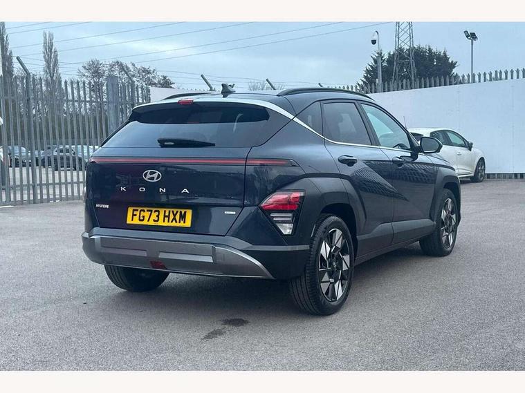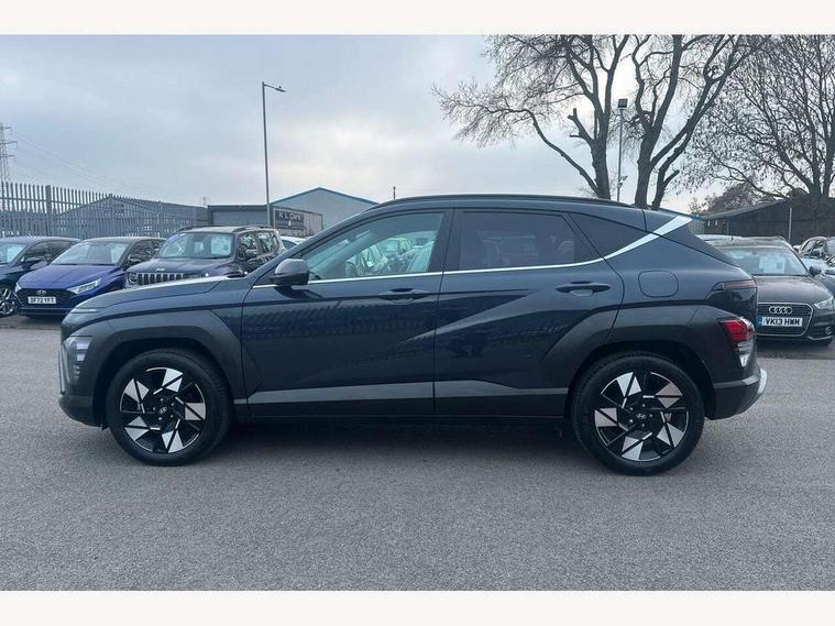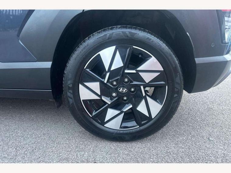 12.3" touchscreen centre console display satellite navigation with bluelink, live services and mapcare, Blind spot collision avoidance assist, Blind spot view monitor, Bluetooth connectivity with voice recognition, Digital clock, Driver status monitor (DSM), Driver supervision instrument cluster with 12.3" LCD display, eCall emergency call system, Feature on demand - Enabled, Forward collision avoidance assist (FCA 1.5) - Car, pededstrian, cycle and junction turning, Front parking sensor, HDA - Highway Drive Assist Level 1.5, Height adjustable power tailgate, Intelligent speed limit assist, Lane follow assist, Lane keep assist, Leading vehicle departure alert (LVDA), Parking Collision Avoidance Assist-Reverse (PCA-R), Parking distance warning - side, Parking system with rear camera and guidance system, PAS, Rear cross traffic collision avoidance (RCCA), Rear parking sensor, Roadside assistance, Safe exit warning (SEW), Smart cruise control with stop and go functionality, Smartphone integration compatible with Apple CarPlay and Android Auto, Surround view monitor, Windscreen washer fluid sensor and warning indicator, Wireless phone charging pad, 2 front USB C and 2 rear USB C charging points, Bose Premium Audio system with 7 premium speakers + subwoofer, DAB Digital radio, Steering wheel audio, phone and cruise controls, Auto dimming rear view mirror, Automatic headlights with dusk sensor, Automatic windscreen wipers with rain sensor, Black painted wheel arch inserts, Body colour bumpers, Body colour exterior door handles, Body coloured door mirrors, Door mirror LED indicator lights, Electric front windows with anti-trap mechanism and one touch control, Electric rear windows, Electric sunroof, Electrically adjustable and heated door mirrors, Horizon centre LED DRL, LED projector headlights, LED upper and lower rear lights, Power folding door mirrors, Privacy glass - Rear windows and tailgate, Rear roof spoiler with integrated LED brake light, Rear side wing doors, Rear skid plate - silver, Rear wiper, Roof rails, Solar glass with front door glass and windscreen, Tinted glass in front and rear doors, Windscreen auto defog function, 12V power outlet in front console, 2 zone climate control, 3 seat bench in 2nd row, 40/20/40 split folding rear seat, Adjustable head restraints, Ambient lighting, Driver and passenger front seat pockets, Driver's seat electric adjustments, Driver's seat lumbar support, Driver/passenger sunvisors and illuminated vanity mirrors, Floor mats, Front passenger's seat electric adjustments, Heated front seats, Heated rear seats, Heated steering wheel, Height/reach adjustable steering column, Isofix rear child seat fastenings, Leather upholstery, Leather wrapped steering wheel, LED centre interior light, LED front interior light, Luggage compartment LED lighting, Luggage net, Luggage shelf, Metal paint effect interior door handles, Parcel shelf, Rear centre armrest, Rear centre console with air vents, Shift by wire SBW, Single front passenger seat, Ventilated front seats, Vertical adjustment rear head restraints, Trailer wiring package - Kona, Airbag - front, front side, curtain and centre front airbag, Anti-lock brake system (ABS), Childproof rear door locks, Downhill brake control, EBD + Brake Assist, Electric parking brake, Electronic stability control, Fasten seatbelt reminder, Fixed 3 point for second row centre passenger seatbelt, Front seatbelt pretensioners, Height adjustable front seatbelts, Hill start assist control (HAC), Passenger airbag deactivate switch, Rear seat alert, Traction control, Tyre pressure monitoring system, Alarm/immobiliser, Deadlocks, Folding key, Locking wheel nuts, Remote central locking, Smart key with keyless entry and engine start/stop button, Five year annual vehicle health checks, 18" Alloy wheels, Temporary mobility kit (TMK),