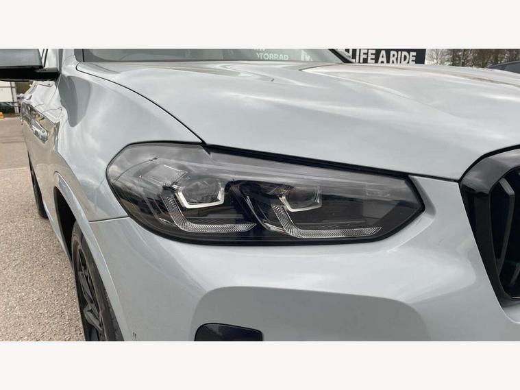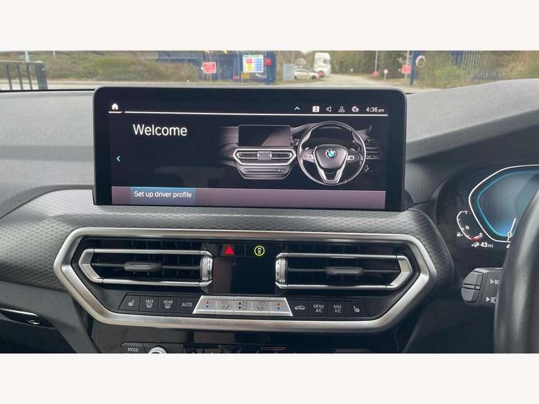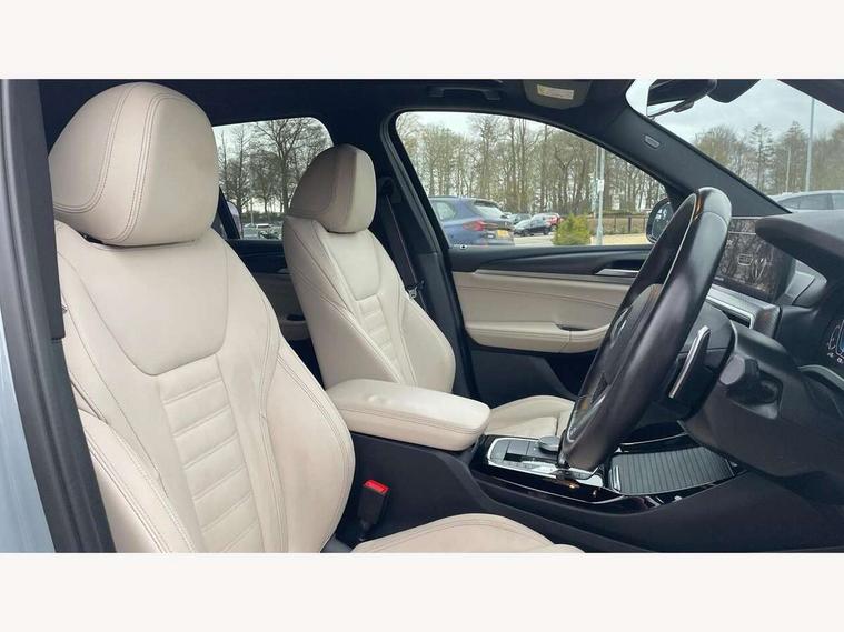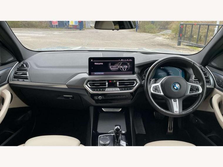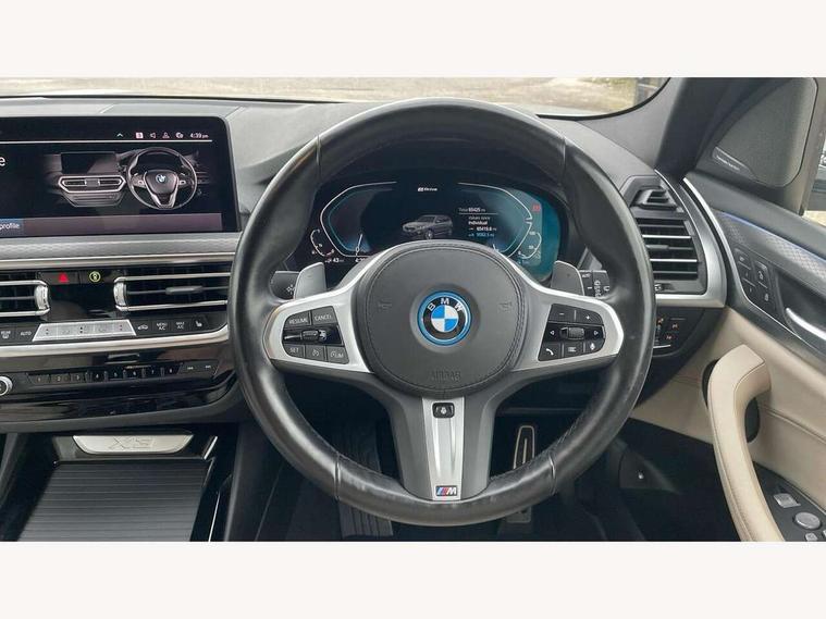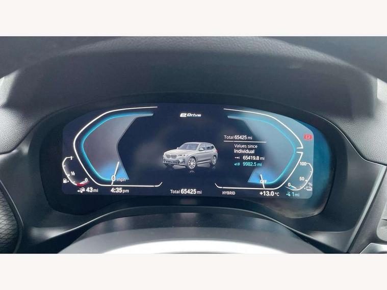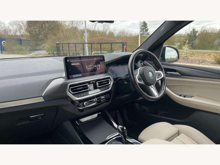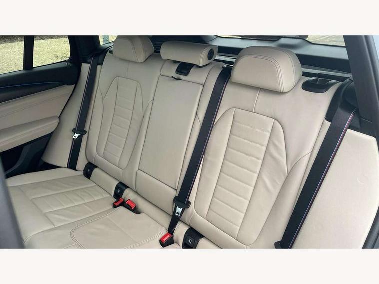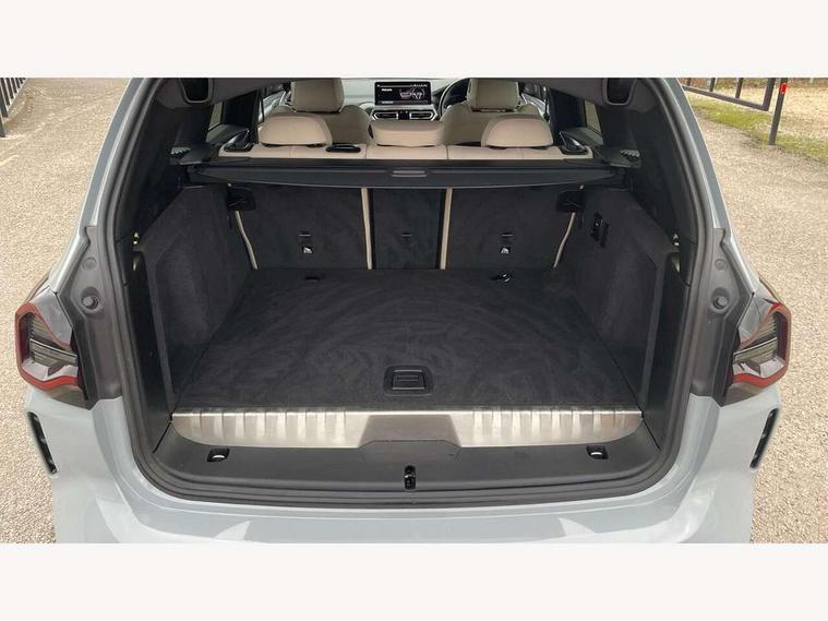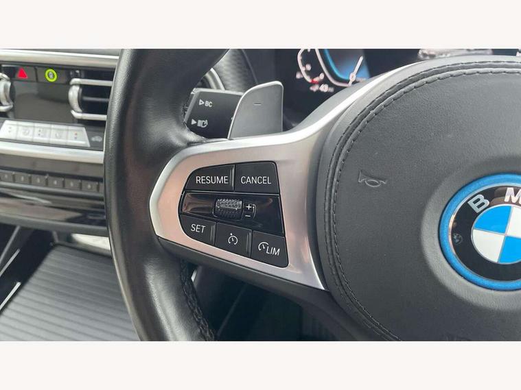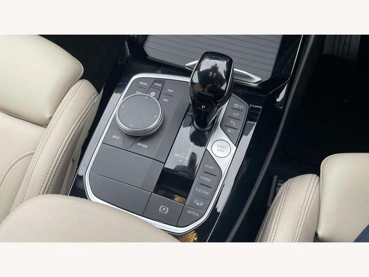 Active Guard, Attentiveness assist, BMW Live Cockpit Professional nav system including 12.3" instrument display + 12.3 high resolution control display, BMW Online services, BMW Teleservices, Brake pad wear indicator in front and rear, Check Control warning system for monitoring of lights and door/luggage compartment open warning, Condition based service - BMW service history, electronic service booklet, integrated owner's handbook, Connected drive services, Cruise control with brake function + speed limiter, Electric boot lid, Front/rear Parking distance control, iDrive touch controller with 8 favourite buttons, Instrument cluster with speedometer with mph readout, tachometer, fuel gauge and oil temperature gauge, Lights on warning by audio warning signal when ignition is switched off, Oil sensor for level and grade, warning by check control system, On board computer - average speed+fuel consumption, service interval, clock/date, odometer/trip meter, outside temperature display and ice warning, Optimum shift indicator, Personal Profile - automatic lock when driving away selectable, Run flat indicator, Stop/start system, Variable sports power steering with drive performance control Sport+ mode, eDrive exterior sound, Fast charging cable professional mode 3 for public charging, Flexible charger (Mode 2), Incorrect fuelling protection, Multi-link rear suspension, Performance Control, Sport automatic transmission with gearshift paddles, BMW professional radio/CD/MP3, DAB tuner, Acoustic glazing, Automatic windscreen wipers and automatic headlight, Black finish on B pillars, Body colour door handles, Body colour electric adjust heated aspherical door mirrors, Body colour roof mouldings, Body coloured bumpers, Direction indicator, side repeaters, integrated in exterior mirrors, Dynamic brake lights, Exhaust tailpipes - dual, round, split left and right with chrome finisher, Fingertip control / anti-trap function on electric window, Folding wing mirrors with auto dimming, Follow me home headlights, Front and rear bumper system with replaceable deformation elements, Front and rear electric windows, Gloss chrome tailpipes finishers, Green tinted heat insulating glass, Heated windscreen washer jets, High beam assistant, High gloss black shadow line roof rails, High gloss shadowline exterior trim in decorative moulding side frame/recess cover/guide rail/B, C pillars/mirror frame and triangle with mirror base, High level 3rd brake light incorporating LED Technology, Interior rear view electrochromatic mirror with automatic anti dazzle function, LED tail lights, Lightweight engineering, M aerodynamic bodystyling, M Sport entry door sill strips, Model designation, Rain sensor, Rear side wing doors, Rear wing door, Rear wiper, Shark fin antenna, Side exterior M designation badges, Visible VIN plate, Welcome lighting, Windscreen wipers with adjustable interval, 12V power point in luggage area, 12V power socket in front centre console, 2 x USB Type C ports for charging and data transmission (front centre console) and 2 x USB Type C ports for charging (rear centre console), 3 rear headrests, 3 seat bench in 2nd row, 3 zone automatic air conditioning, 4 lashing points to secure luggage, 40:20:40 split folding rear seat with loading system, Ambient lighting, Anthracite headlining, Automatic interior light when door is opened/ignition switched off or via remote key, Floor mats in velour, Foldable storage floor with compartment, Four grab handles integrated in roof lining, Front and rear bottle holders integrated into door trim storage compartments, Front and rear side armrests integrated into door trim, Front centre armrest with storage compartment, Front footwell lights, Front head restraints, Front passenger seat, Front sports seats, Front/rear courtesy lights with soft on/off dimming, Front/rear reading lights, Heated front seats, Isofix rear child seat preparation, Leather gear knob, Lockable glove compartment, Luggage area underfloor compartment, Luggage compartment lighting, M sport leather steering wheel, Multifunction steering wheel, Parcel shelf removeable and storable under boot floor, Reach and rake adjustable steering column, Rear centre armrest with 2 cupholders, Removable / retractable luggage cover, Slope adjustable rear seats, Storage compartment in rear centre console and front/rear door trims, Sun visors with vanity mirrors and ticket pocket, Toolkit located in luggage compartment, Two front cupholders with removable oddments tray/lid, Connected pro pack - X3, Driving assistant pack - X3, ADB - Automatic Differential Brake, Anti-lock braking system (ABS) with brake assist, Automatic Stability Control (ASC), Battery safety cut-off, BMW emergency call, Brake drying, Brake energy regeneration, Braking pre-tensioning, Child locks on rear doors, Cornering brake control (CBC), Crash Sensor - activation of central locking release, hazard warning light and interior lighting, Deactivation of fuel pump in the event of a crash, Driver and front passenger front and side airbags with passenger deactivation and ITS front and rear head airbags, Driver and front passenger knee airbag, DSC+, Dynamic brake control, Dynamic Traction Control - DTC, Electromechanical parking brake, Hill descent control, Hill start assist, Seatbelt security check for front seats, Side impact protection, Three point seatbelts to all seats with front and outer rear pyrotechnic belt tensioners and seat belt force limiters, Two tone horn, Tyre pressure sensor, Ventilated front and rear disc brakes, Warning triangle and first aid kit, Central locking switch for all doors, fuel filler cap and luggage compartment, Electronic engine immobiliser, Locking wheel nuts, Remote control including two integrated key - one button for open/close all lockable content, windows and separate button for open luggage compartment, Remote control Thatcham category 1 alarm, Start/stop button with Comfort Go keyless engine start and auto Start/stop deactiv