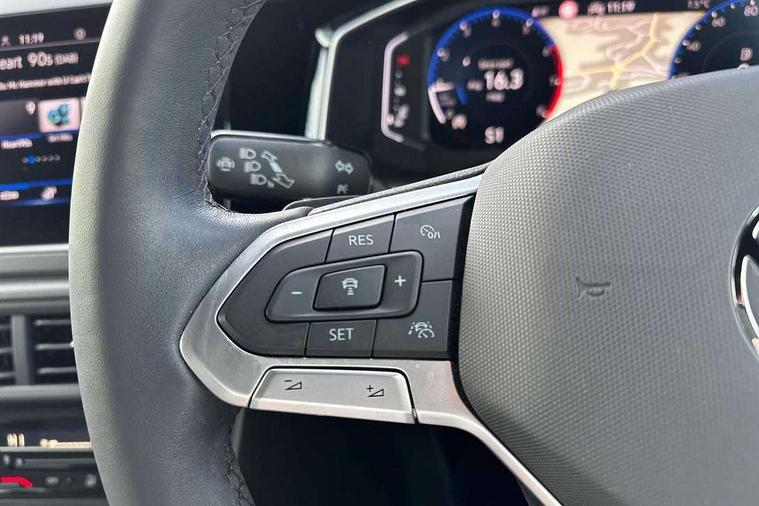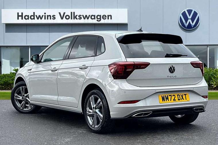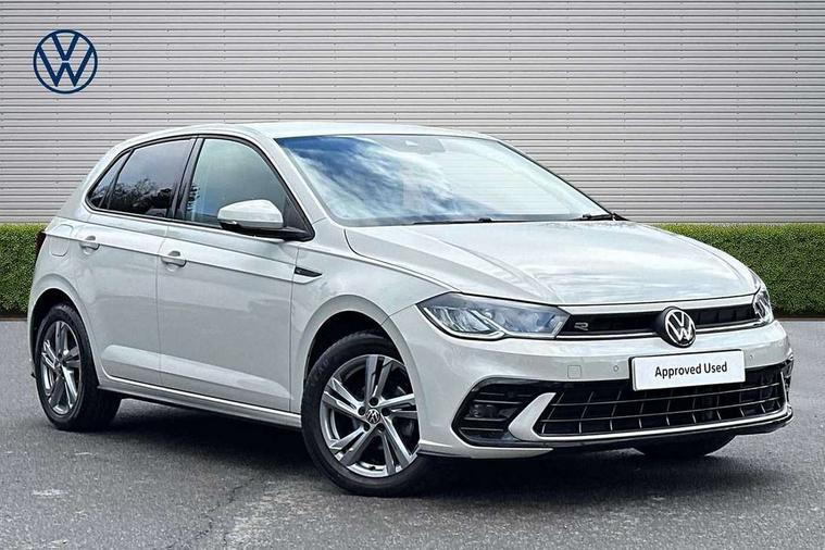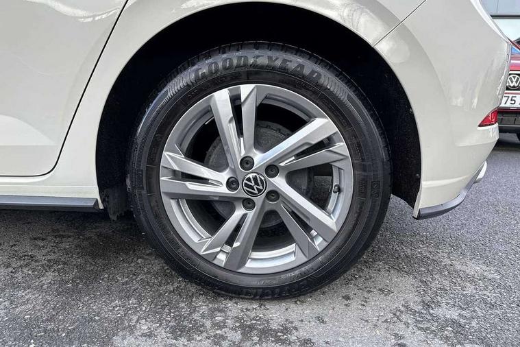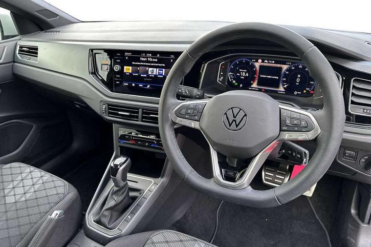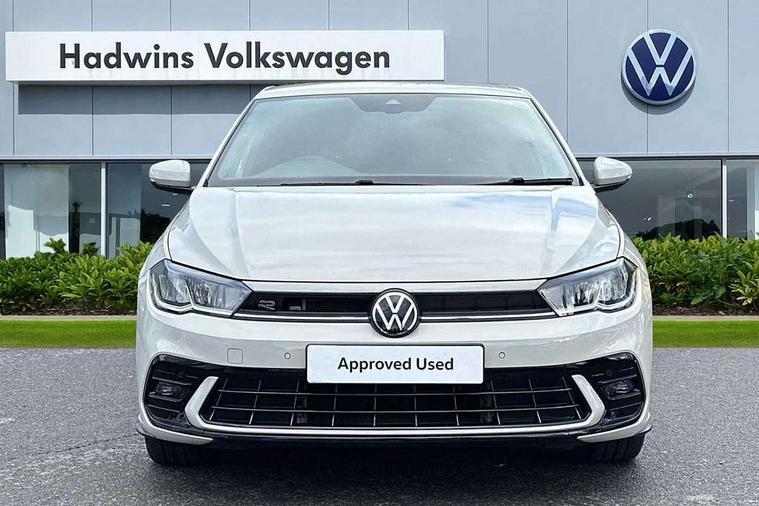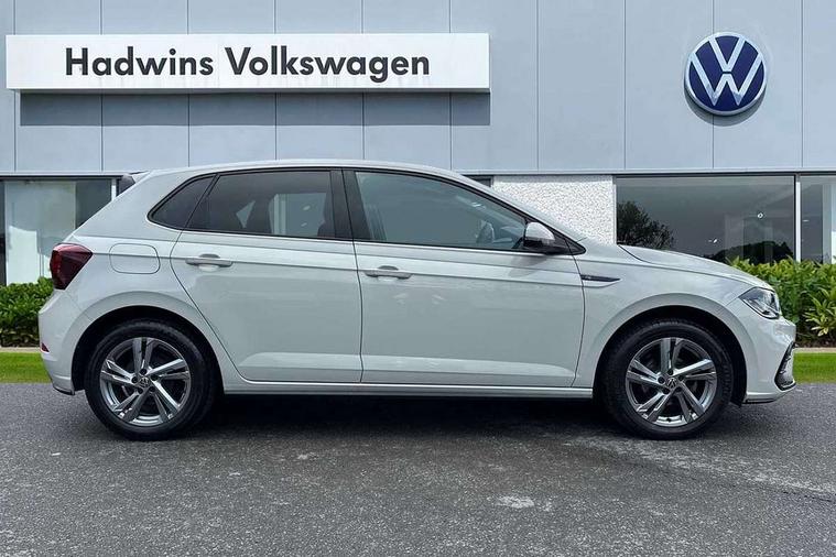 Adaptive cruise control with follow-to-stop and speed limiter, Bluetooth mobile phone interface, Digital Cockpit Pro with 10.25" Display, Driver alert system, Dynamic road sign display, Emergency call service, Power assisted speed sensitive steering, Preparation for We connect and We connect plus, Speedo and rev counter, electronic odometer, trip, service interval display and fuel gauge, Standard rear axle, Travel Assist - Lane keeping system and traffic jam assist, Travel assist including emergency assist, Trip computer, Warning signal and warning light for front and rear seatbelts not fastened, Washer fluid level indicator, Wireless app connect, Front wheel drive, Rear shock absorpion, Start-stop system with battery regeneration (recuperation - energy recovery during braking), DAB Digital radio, Diversity antenna for FM reception, Front and rear 6 speakers, Body colour bumpers, Body colour door handles, Electric front windows, Front scuff plates with R-Line logo, Heat insulating darkened glass in side and rear windows, Heat insulating glass windscreen, Power folding adjustable/heated exterior mirrors and front passenger exterior mirror lowering function, Rear electric windows, Rear fog light, Rear side wing doors, Rear windscreen washer and wiper with interval delay, Third brake light, 12V power socket in centre console, 2 USB-C ports in the front, 2 USB-C charging sockets on the center console in the rear, 3 rear head restraints, 60/40 split folding rear seat and rear seat bench not split, Air care climatronic air conditoning system with active combination filter and 2-zone temperature control, Black roof lining, Chrome plated radiator grille inserts, air vent surrounds and light switch surrounds, Door and side trim panel, Driver and front passenger seat height adjustment, Driver/passenger sunvisors with illuminated vanity mirrors, Front + rear carpet mats in recycled material, Front centre armrest, Front footwell illumination, Front seat backrest storage pockets, Front sports comfort seats, Handbrake lever handle in leather, Headliner in recycled material, Isofix child seat preparation easy-fit (for two outer rear seats, and front passenger seat) compatible with I-size, Karoso artvelours cloth upholstery, Leather trimmed gear knob, LED interior light with switch off delay and dimmer, 2 reading lights front and rear, Luggage compartment cover, Luggage compartment floor, Luggage compartment lighting, Lumbar adjustment for front seats, Single front passenger seat, Stainless steel pedals, Standard pedal cluster, Three spoke leather wrapped multifunction steering wheel with shifting paddles, Light and sight pack - Polo R-Line/Black Edition, 3 point height adj front seatbelts + pretensioners, 3x3 point rear seatbelts, ABS, Driver and front passenger airbag with front passenger airbag deactivation, Drivers and front passengers safety optimised head restraints, ESC (Electronic stability control) + EDL (Electronic Differntial lock) and ASR (Traction control), Extended and predictive pedestrian/ cyclist protection, Front curtain and side airbags with center airbag, Hill hold control, Manual child lock in rear doors, Single tone horn, Tyre pressure loss indicator, Alarm with interior protection, Anti-theft alarm system with interior monitoring, backup horn, and towing protection, Anti-theft wheel bolts, Electronic engine immobiliser, Chrome applications on rotary light, mirror adjustment, window regulator switches, outlet with frame in black, Dark grey anodised matt decorative inserts in dash and front door panels, Low rolling resistance tyres,