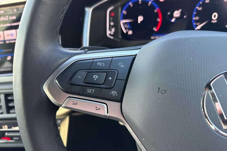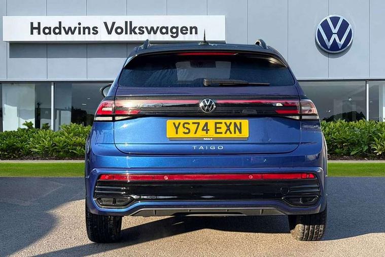 Adaptive cruise control, Advanced driver attention and drowsiness monitor, App-Connect including App-Connect Wireless, Digital cockpit pro - 10.25" high resolution TFT dash display screen with customizable menus and information, Driving profile selection, e-Call (emergency call), Power Steering, Travel assist including emergency assist, Washer fluid level indicator, Wireless Charging including Bluetooth, Start-stop system with battery regeneration (recuperation - energy recovery during braking), XDS electronic differential lock for improved traction and handling, Digital radio reception (DAB+), Diversity antenna for FM reception, WeConnect plus, Ambient lighting with logo projection, Aspherical driver's exterior mirror, Auto headlights, Body coloured bumpers, Body coloured door handles, Cornering headlights, Electric windows, External USB type C socket and charging sockets, LED rear combination lamp, LED third brake light, Left convex exterior mirror, Power folding adjustable/heated exterior mirrors and front passenger exterior mirror lowering function, Rear fog light on one side, reversing light on both sides, Rear side wing doors, Rear wash/wipe with intermittent wipe setting, 12V socket in centre console, 2 front reading lights, 3 rear head restraints, 3 seat bench in 2nd row, Air care climatronic air conditoning system with active combination filter and 2-zone temperature control, Black carpets, Black roof lining, Child seat anchor for child seat system i-Size, 2x top tether and child seat anchor in front on front passenger side, Chrome bezel for instrument cluster, vents, door handles + gear shift, Driver and front passenger seat height adjustment, Front + rear carpet mats, Front centre armrest, Front footwell illumination, Front sports comfort seats, Heated front seats, Height and reach adjustable steering wheel, Interior ambient lighting and surround lighting, Karoso artvelours cloth upholstery, Leather trimmed gear knob, Leather wrapped multifunction steering wheel, Luggage compartment floor, Luggage compartment light, Lumbar support for driver's and front passengers seat, Seat covers in grey + titanium black, Single front passenger seat, Split folding backrest with centre armrest and unsplit rear seat bench, Stainless steel pedals, Storage compartment under front seats, Sun visors with illuminated vanity mirrors, Black design pack - Taigo Black Edition, Black roof pack with mirror housing - Taigo, IQ.LIGHT - LED matrix headlights pack - Taigo, Light and Sight pack including High beam assist - Taigo, 2 x 3-point seatbelts/outer rear seats with ECE label, 3-point seat belts in front with pretensioner and height adjustment, 3-point seatbelt for centre rear seat, Adaptive driver and front passenger airbags with passenger airbag deactivation function, Driver and front passenger safety-optimised head restraints, Electronic stability control, Extended and predictive pedestrian/ cyclist protection, Front and rear disc brakes, Front curtain and side airbags with center airbag, Hill start assist, Manual rear child locks, Single tone horn, Tyre pressure loss indicator, Anti-theft alarm system with interior monitoring, backup horn, and towing protection, Grey anodised matte decorative inserts in dash and front door panels, 18" York black alloy wheels with anti theft wheel bolts, Breakdown kit, Low rolling resistance tyres,