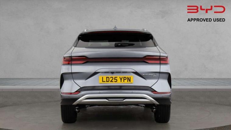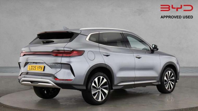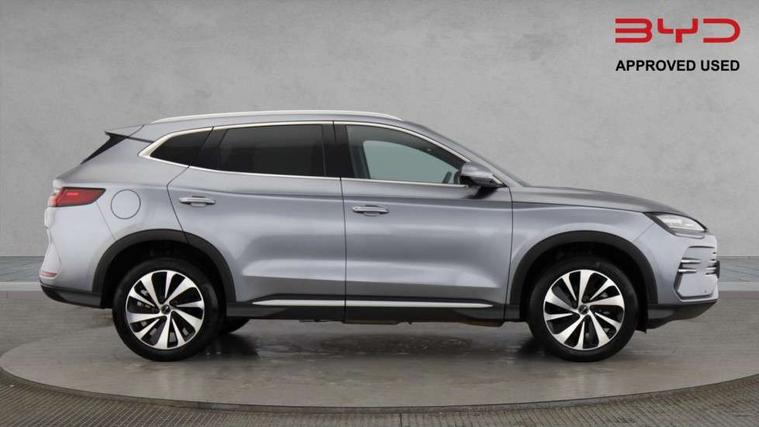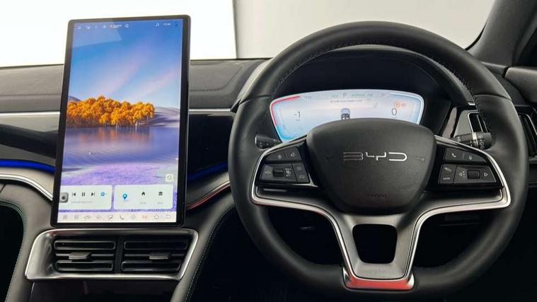 12.3" TFT full LCD instrument panel, 360 camera, Adaptive Cruise Control (ACC) and Intelligent Cruise Control (ICC), Automatic vehicle hold, Blind spot detection, BYD voice control assistant "Hi, BYD", Controller Deceleration Parking (CDP), Drive mode select (Eco, normal, sport, snow), e-Call (emergency call), Electric tailgate release, Emergency Lane Keeping Assist (ELKA), Forward collision warning, Front and rear parking sensors, Front cross traffic alert and front cross traffic brake, Head up Display, Indirect driver fatigue management, Intelligent Speed Limit Control (ISLC), Keyless system entry and start, Lane change assist, Lane Departure Assistant (LDA) and Lane Departure Warning (LDW), Lane departure prevention, PAS, Predictive collision warning, Rear collision warning, Rear cross traffic alert and rear cross traffic brake, Rollover Control System (RMI), Smartphone wireless charging, 2 x 15W, Traffic sign recognition (TSR), Vehicle-to-Load (V2L) function, 11kW on board charger, Mode 3 Type 2 charging cable (3 phase), V2L (Vehicle to load) power strip - Type F, 15.6" Electrically rotatable touchscreen, FM/DAB+ radio, Front USB ports, 1 x 18W Type C, 1 x 60W Type C, Infinity sound system with 10 speakers, Rear USB ports, 2 x 18W Type C, Aluminium roof rails, Auto dimming interior rear view mirror, Auto headlamps (on/off), Dynamic welcome lights, Electric folding and heated door mirrors, Emergency tow hook, Exterior mirror footlights, Follow me home headlights (The headlights turned on in advance and delayed off function), Front windscreen, UV protection, thermal insulation and sound proofing, High beam assist, LED 3rd brake light, LED daytime running lights, LED Headlights, LED taillights, One touch electric front/rear windows with pinch protection, Panoramic sunroof with anti-pinch sensor and electrically adjustable sunshade, Rain sensor windscreen wipers, Rear fog lights, Rear side wing doors, Rear window and rear windscreen with tinted glass, Rear wiper, 12V power outlet, 3 seat bench in 2nd row, 8 way electrically adjustable drivers seat, Adjustable rear headrests, Boot parcel shelf, Driver and passenger sunvisors with illuminated vanity mirrors, Driver seat memory function, Front centre armrest with 2 cupholders, Front LED reading lights, Front passenger seat with 4-way electric adjustment, Front seat footlights, Heat pump, Heated front seats, Heated steering wheel, Integrated headrest in front seats, ISOFIX and i-Size for front passenger and outer rear seats, LED front door lights, Nylon floor mats, PM2.5 air filter, PM2.5 air purification system, Rear air vents, Rear armrest with 2 cupholders, Rear side LED reading lights, Rhythm-reactive multi-colour ambient lighting, Single front passenger seat, Split folding rear seats - 40/60, Vegan leather multifunction steering wheel, Vegan leather upholstery, Ventilated front seats, 3x3 point rear seatbelts, ABS/EBD, Automatic emergency braking system, Brake override system (BOS), Child presence detection, Comfort stop, Door open warning, Driver airbag, Electric parking brake, Force limiting pre-tensioned front seat belts, Front centre airbag, Front passenger airbag, Front passenger airbag deactivation, Front side airbags, Hill descent control, Hill hold control, Hydraulic Brake Assist (HBA), Hydraulic brake boost, Mechanical child safety lock, Rear middle seat force limiting seat belt, Rear seat belt pretensioners, Reflective vest, Side curtain airbags, Traction control system (TCS), Tyre pressure monitoring system (TPMS), Vehicle Dynamics Control System (VDC), Warning triangle, 2 x Smart keys, Anti theft alarm system, Automatic door locking, 19" Bi-colour alloy wheels, Tyre nut covers remover, Tyre repair kit,