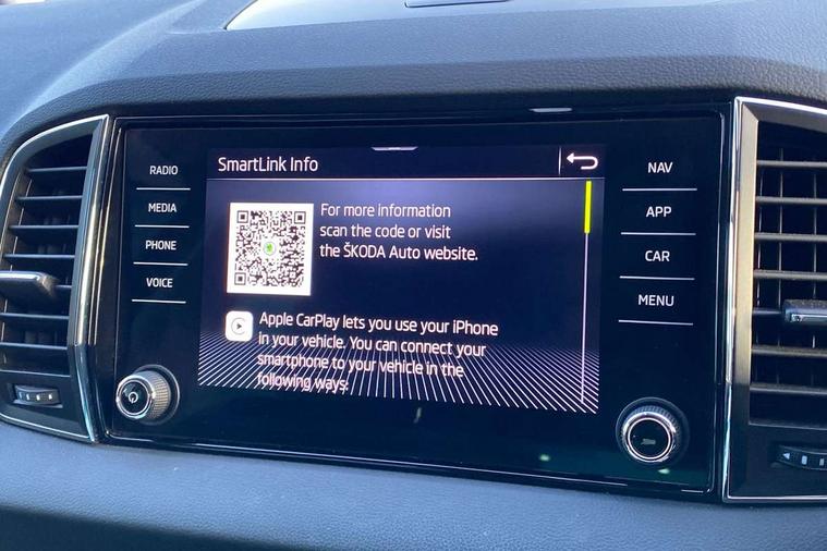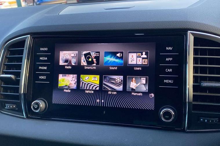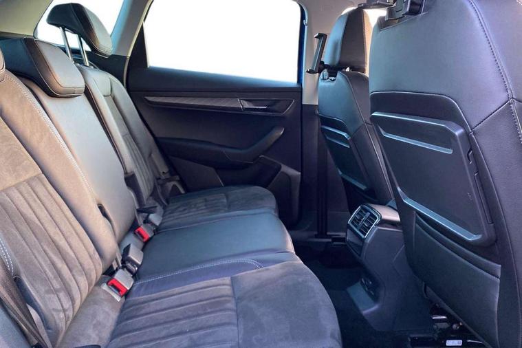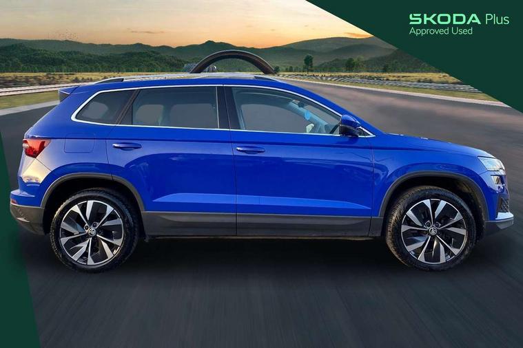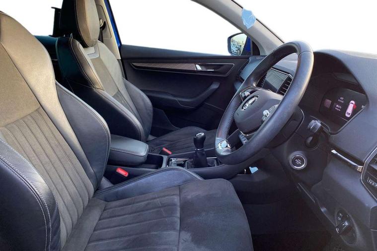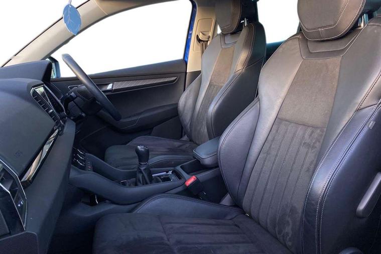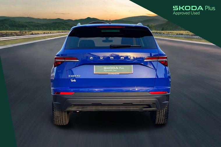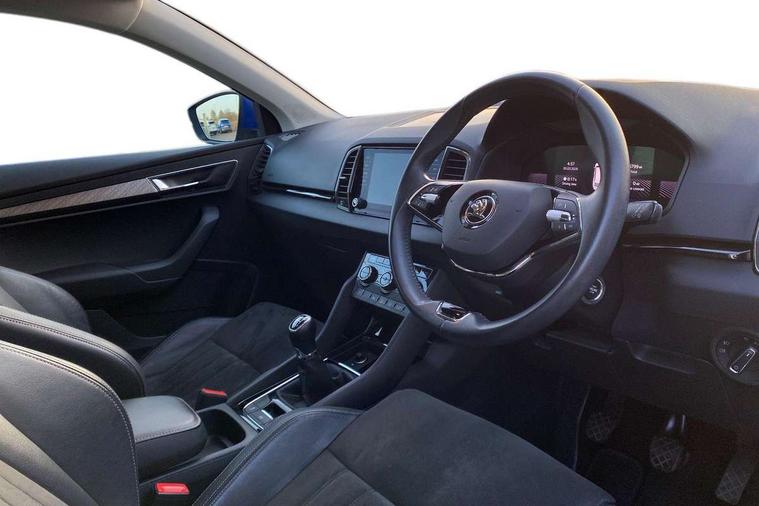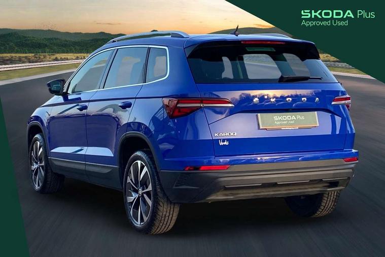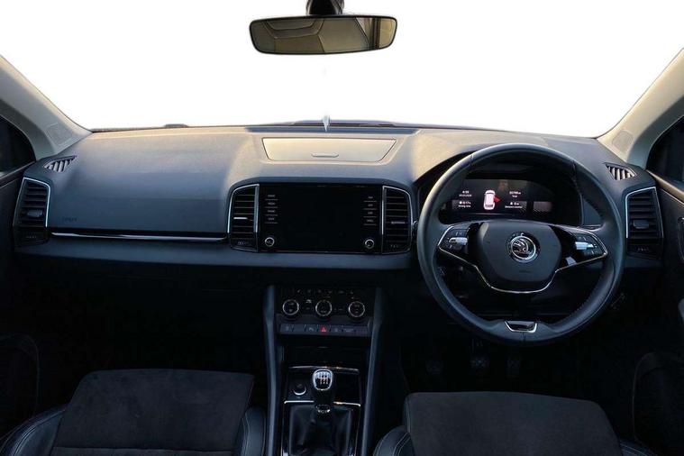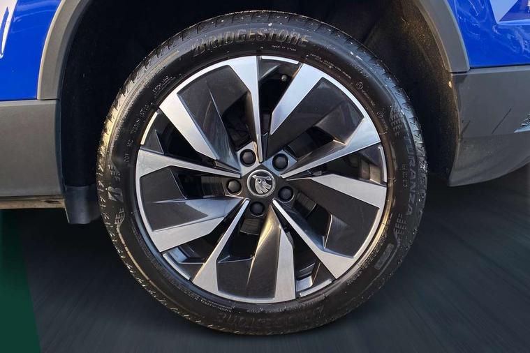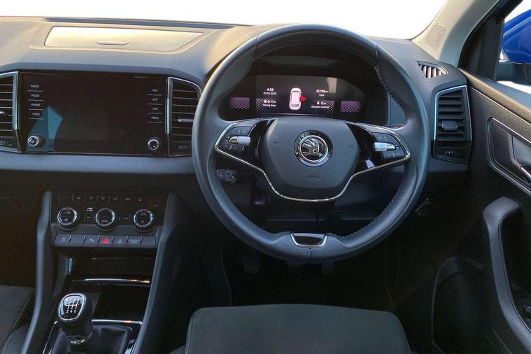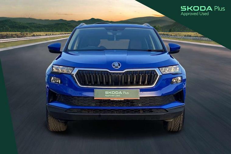 8" Digital display, Care connect, Driver fatigue sensor, Emergency services call system, Outside temperature gauge, Service interval indicator, SmartLink wireless for Apple and wired for Android, Start/stop system with regenerative braking, USB C Port x 2 in front centre console, Diesel particulate filter, 8 Speakers, DAB radio with Bluetooth, USB connection, Acoustic glass, Aero front windscreen wipers with intermittent function, Auto dimming rear view mirror with light and rain sensors, Black electric window control buttons, Body colour door mirrors and handles, Dynamic headlight range control with cornering light function, Electric front and rear windows with child proof lock, Heated rear windscreen, LED daytime running lights, LED rear lights with high functionality welcome effect and dynamic indicators, Light assistant (coming/leaving home/tunnel light), Plastic scuff plates, Privacy glass, Rear side wing doors, Rear spoiler, Rear window wiper with washer system and intermittent control, Safety reflectors on front doors, Third brake light, 1.5 litre bottle holders in driver and front passenger door panels, 12V socket in boot, 12v socket in front centre armrest with storage compartment and rear air vents, 2 Folding hooks and nets in boot, 2 spoke leather heated multifunction steering wheel, 2 x Tablet holder, 3 rear height adjustable headrests, 3 seat bench in 2nd row, 4 foldable roof handles with rear coat hooks, Black floor carpet, Chrome inner door handles, Decorative door sills with KAROQ badging, Double sided boot floor, Foldable hooks in the boot, Front head restraints, Height adjustable front three point seats belts with tensioners, Height/reach adjust steering wheel, Ice scraper, Illuminated glovebox, Illuminated luggage compartment, Interior noise suppression, Isofix child seat preparation for front passenger seat, Isofix child seat preparation outer rear, Manual lumbar support for front seats, Pen holder, Pollen filter, Rear boot cover, Rear reading lights, Rubbish bin door, Safety vest holder, Single front passenger seat, Storage box in upper central dashboard closed, Sunvisors with illuminated vanity mirrors, Textile floor mats, Ticket holder, VarioFlex seats with standard rear seat release, Chrome roof rails + chrome pack - Karoq, Parking pack - Karoq, Automatic door unlocking in case of crash, Automatic fuel cut off in case of crash, Child locks on rear doors, Driver airbag, Electronic parking brake with auto hold function, Emergency rear braking signal, ESC including ABS, MSR, ASR, EDS, HBA, DSR, RBS, MKB and traction control, Front side airbags, Hill hold control, Knee airbags, Passenger airbag with switch-off function, Pedestrian monitor, Seatbelt reminder signalisation and pretensioner for all seats, Three point seatbelts rear, Two tone horn, Tyre pressure display, Tyre pressure monitor, Alarm with interior monitoring, back up horn and tilt sensor with safe function, Electronic engine immobiliser, Keyless entry and start/stop, Remote central locking with 2 remote folding keys, Chrome framed air vents, 18" Procyon silver alloy wheels with anthracite aero inserts, Anti-theft wheel bolts protection, Storage on wheel cover, Tool kit,