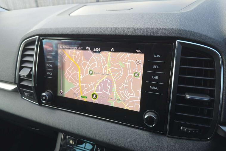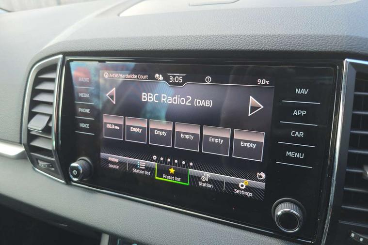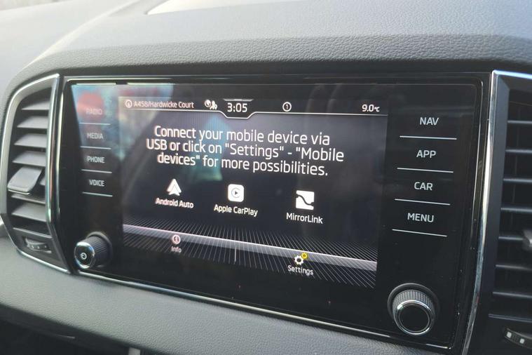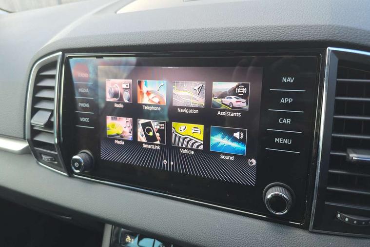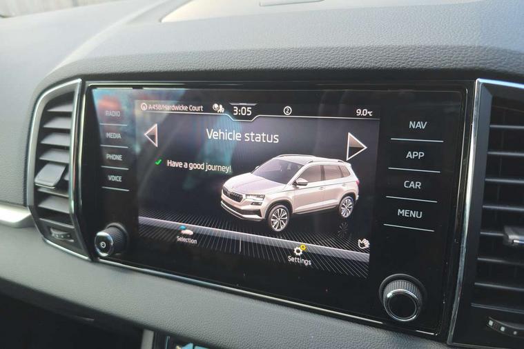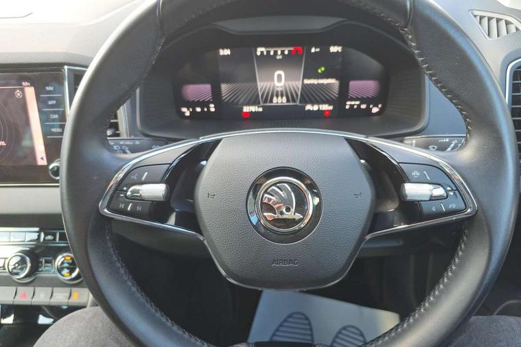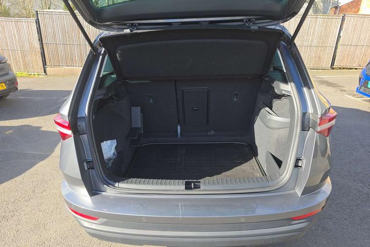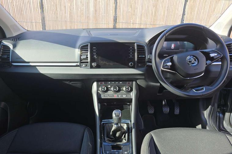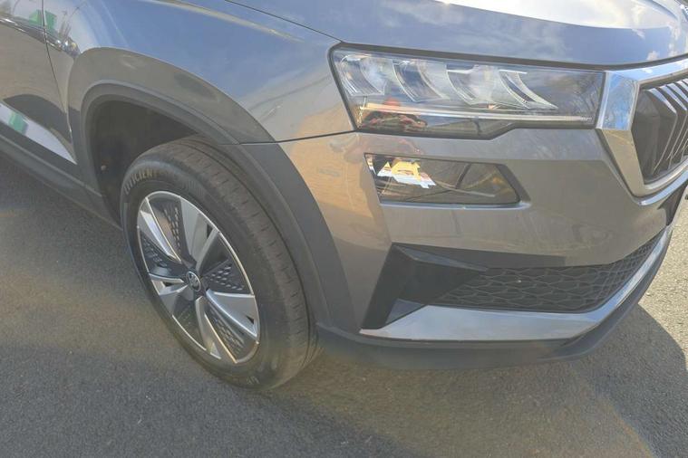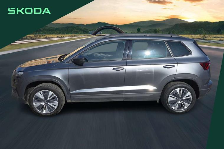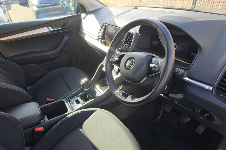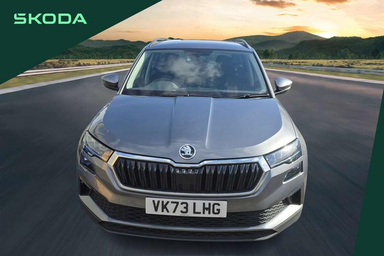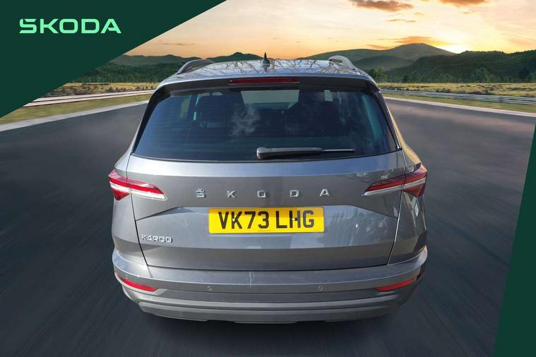 8" Digital display, Amundsen satellite navigation with 8" touchscreen display with maps Europe, WLAN and web radio, Care connect, Driver fatigue sensor, Electro-mechanical PAS, Emergency services call system, Outside temperature gauge, Service interval indicator, SmartLink wireless for Apple and wired for Android, Start/stop system with regenerative braking, USB C Port x 2 in front centre console, 8 Speakers, DAB radio with Bluetooth, USB connection, Acoustic glass, Aero front windscreen wipers with intermittent function, Auto dimming rear view mirror with light and rain sensors, Black electric window control buttons, Body colour door mirrors and handles, Dynamic headlight range control with cornering light function, Electric front and rear windows with child proof lock, Electrically adjustable heated folding and auto dimming door mirrors, Front fog lights, Heated rear windscreen, LED daytime running lights, LED Headlights, LED rear lights with high functionality welcome effect and dynamic indicators, Light assistant (coming/leaving home/tunnel light), Plastic scuff plates, Privacy glass, Rear side wing doors, Rear window wiper with washer system and intermittent control, Safety reflectors on front doors, Third brake light, 1.5 litre bottle holders in driver and front passenger door panels, 12V socket in boot, 12v socket in front centre armrest with storage compartment and rear air vents, 2 x Tablet holder, 3 rear height adjustable headrests, 3 seat bench in 2nd row, 4 foldable roof handles with rear coat hooks, Black floor carpet, Chrome inner door handles, Double sided boot floor, Driver/front passenger reading lights, Foldable hooks in the boot, Folding tables on the front seat backrests, Front head restraints, Height adjustable driver and passenger seat, Height adjustable front three point seats belts with tensioners, Height/reach adjust steering wheel, Ice scraper, Illuminated glovebox, Illuminated luggage compartment, Isofix child seat preparation for front passenger seat, Isofix child seat preparation outer rear, Manual lumbar support for front seats, Pearl grey interior ceiling, Pen holder, Pollen filter, Rear boot cover, Rear reading lights, Rubbish bin door, Safety vest holder, Single front passenger seat, Storage box in upper central dashboard closed, Sunvisors with illuminated vanity mirrors, Textile floor mats, Ticket holder, Umbrella under passenger seat, Boot pack - Karoq, Automatic door unlocking in case of crash, Automatic fuel cut off in case of crash, Child locks on rear doors, Driver airbag, Electronic parking brake with auto hold function, Emergency rear braking signal, ESC including ABS, MSR, ASR, EDS, HBA, DSR, RBS, MKB and traction control, Front side airbags, Hill hold control, Knee airbags, Passenger airbag with switch-off function, Pedestrian monitor, Seatbelt reminder signalisation and pretensioner for all seats, Three point seatbelts rear, Two tone horn, Tyre pressure display, Tyre pressure monitor, Alarm with interior monitoring, back up horn and tilt sensor with safe function, Electronic engine immobiliser, Remote central locking with 2 remote folding keys, Black centre console, Chrome framed air vents, Satin black dashboard, Satin black door trim, Anti-theft wheel bolts protection, Tool kit,