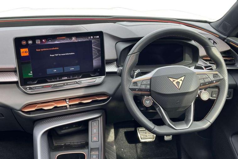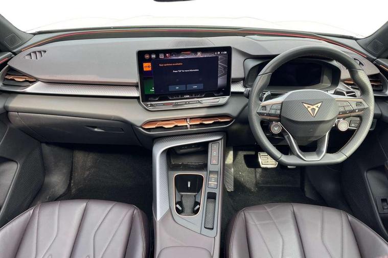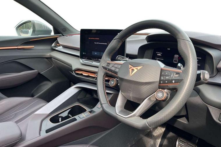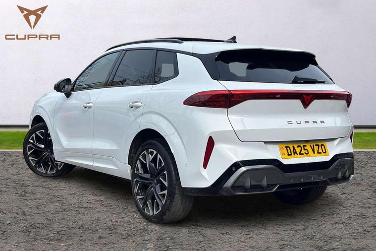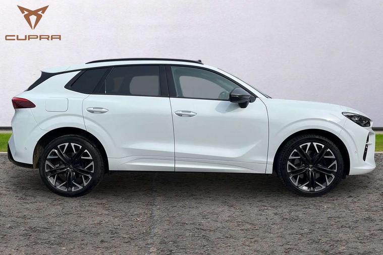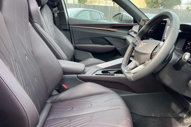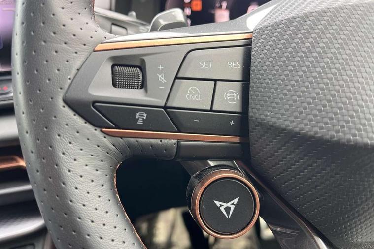 10.25" digital cockpit and configurable dashboard, Adaptive cruise control with follow-to-stop and speed limiter, Advanced driver alert system, Advanced lane assist with semi-automatic vehicle control in a medical emergency and traffic jam assist, Driving profile selection (DCC- Comfort, performance, CUPRA, Individual, Dynamic road sign display, E-call, Electric tailgate with virtual pedal, Emergency steering support with turn assist, Front and rear parking sensors, Front assist (Forward collision warning with automatic braking) with multifunction camera and front cross traffic assist, Head up Display, Intelligent park assist, Media system with Nav - 12.9" touch display, voice control, full link phone (wired/wireless), DAB and Steering wheel mounted controls, Rear traffic assist, Side and exit assist, Speed sensitive power steering, Start/stop system with regenerative braking, Top view camera (front camera, rear camera, 2 side cameras), Wireless phone charger, Adaptive chassis control with a 2-valve shock absorber, Auto dimming rear view mirror, Black roof rails, CUPRA 3D rear lights with ceremony & swiping indicator and illuminated logo, Dark tinted rear windows, Daytime running lights with automatic headlight control and Coming and Leaving home function, Door mirrors with memory function and lowing function on passenger mirror, Electric front/rear windows, Electrically adjustable, heated and folding door mirrors, Front fog lamps with cornering function, Heat reflecting windscreen, High beam assist, Rain sensing wipers, Rear fog light on one side, back up light on both sides, Rear side wing doors, Rear wash/wipe, Third brake light, Welcome lights (within exterior mirror housing), 3 seat bench in 2nd row, Black roof lining, Cupra sports pedals, Driver seat memory function, Electrically adjustable front seats including lumbar support, Four x USB Type C ports (2 in front and 2 in rear), Front and rear head restraints, Front and rear reading lights X 4, Front centre armrest, Heated front seats, Heated leather wrapped multi function sports steering wheel with tiptronic, Illuminated interior front door sills, Isofix, Leather upholstery, Operating voltage 12V, Single front passenger seat, Smart wraparound interior lighting, Sunvisors with illuminated mirror, Three zone climate control with control panel in rear, Unsplit rear seat bench, split folding backrest, with centre armrest, Variable luggage/load compartment floor, Pure performance pack - Terramar, 3 point seatbelts in front with pretensioner and electric height adjustment, 3 point seatbelts on all rear seats, Brake control system - ESC and brake booster, Child proof door locks, Driver and front passenger airbags, Electronic parking brake, Front and rear disc brakes, Front interaction airbag, Front passenger airbag deactivation switch, Front side airbags with curtain airbags, Pre-crash front and rear seat belt tensioner, window closure and hazard lights, Tyre pressure monitoring system, Visual and acoustic seat belt reminder, electric contact in front and rear, Anti theft alarm, Keyless locking and starting system with keyless access, Locking wheel bolts, Black decorative trims, Chrome interior detailing, Performance tyres in polmer coating, Tool kit,